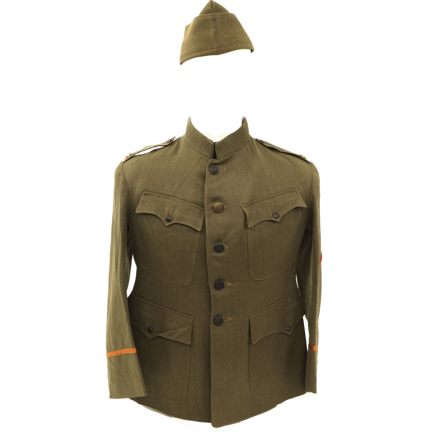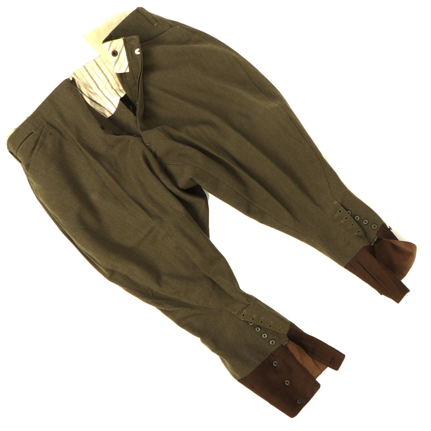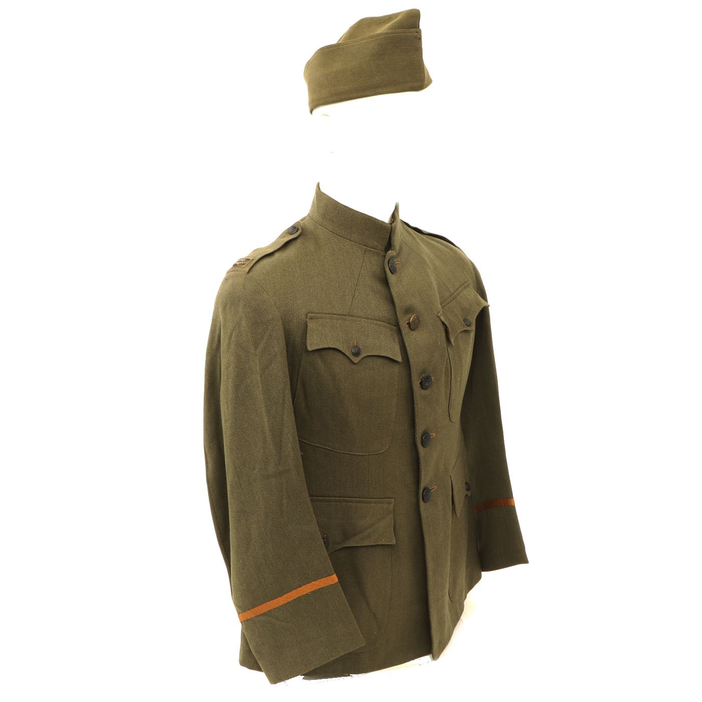 Original Item: One-of-a-kind. This is a rare French Parisian custom tailor made United States Army Officer's uniform from the First World War. The service coat is constructed of fine wool with bullion embroidered Lieutenant insignia on each epaulet as well as insignia on the sleeves for overseas service. The Interior has an original tailor label from BARCLAY / 18-20 AVNUE DE'OPERA / PARIS. Offered in excellent condition. Also included are matching WWI wool army Knickers style pants and overseas Garrison side Cap (Size US 7) with leather sweatband offered in very good condition.