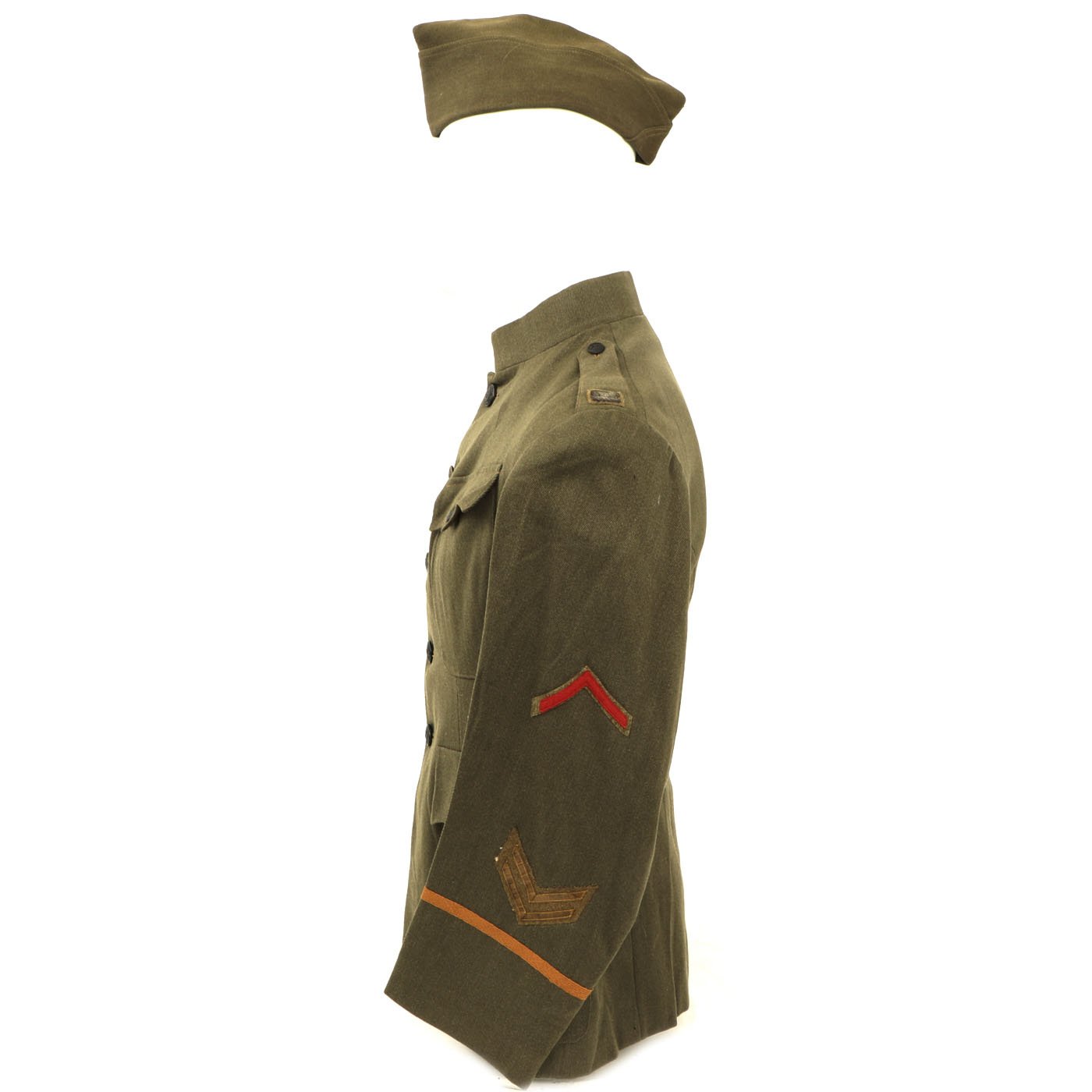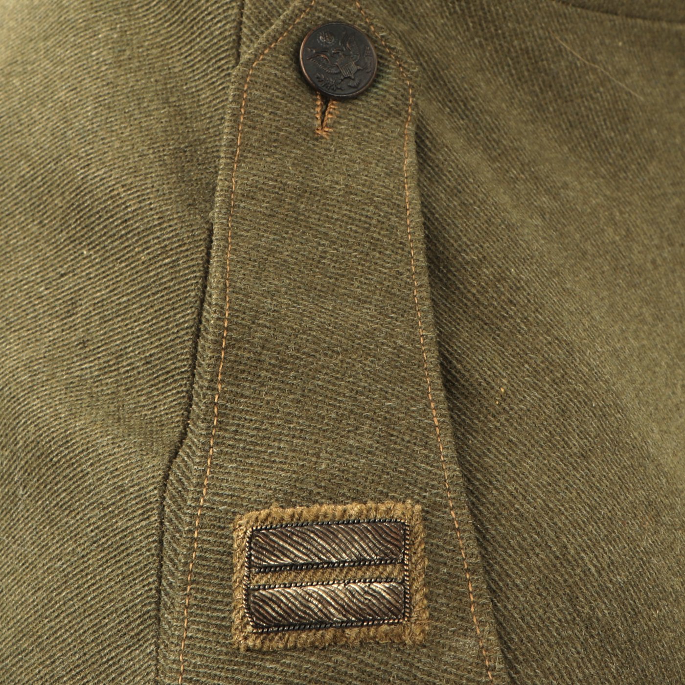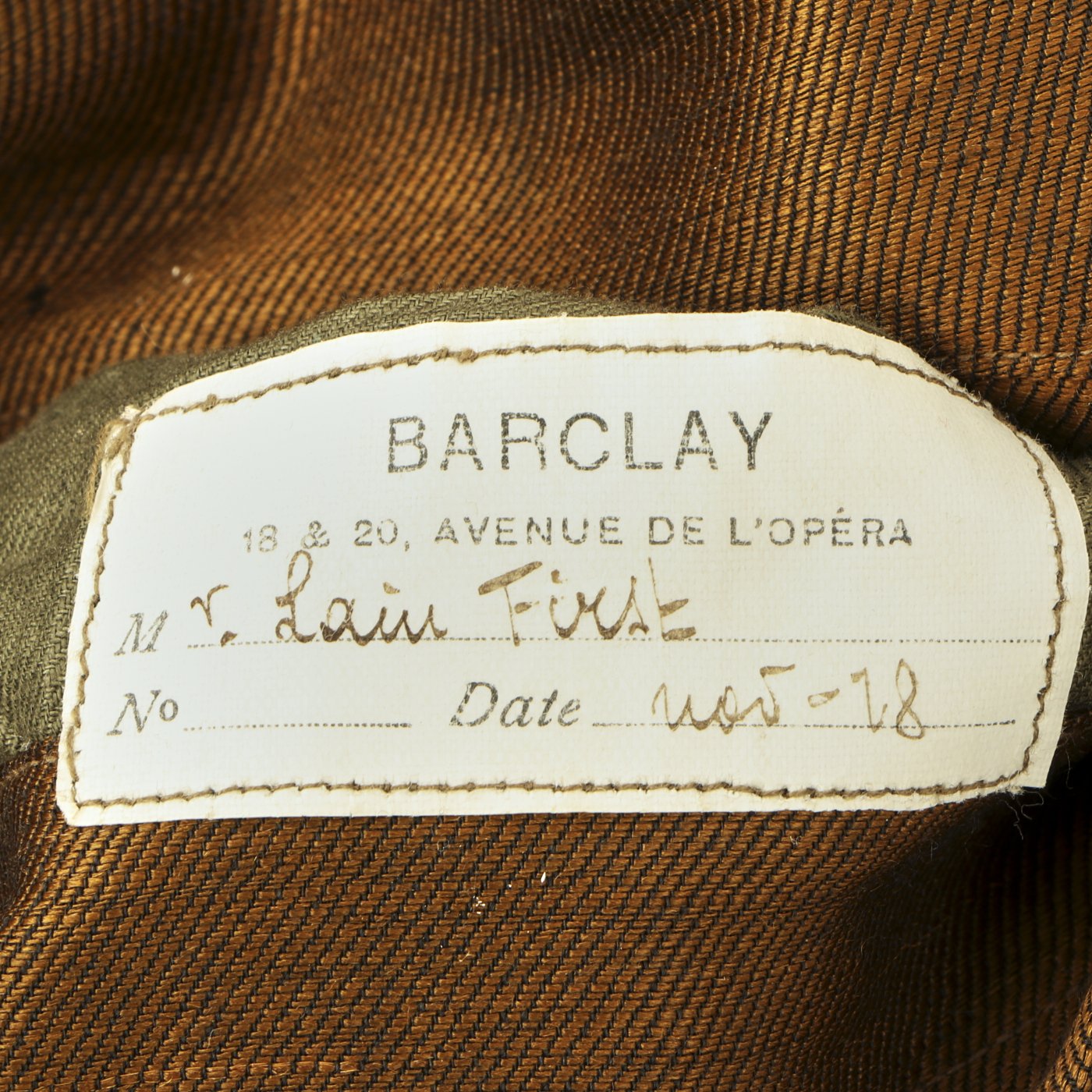 Original Item: One-of-a-kind. This is a rare French Parisian custom tailor made United States Army Officer's uniform from the First World War. The service coat is constructed of fine wool with bullion embroidered Lieutenant insignia on each epaulet as well as insignia on the sleeves for overseas service. The Interior has an original tailor label from BARCLAY / 18-20 AVNUE DE'OPERA / PARIS. Offered in excellent condition. Also included are matching WWI wool army Knickers style pants and overseas Garrison side Cap (Size US 7) with leather sweatband offered in very good condition.