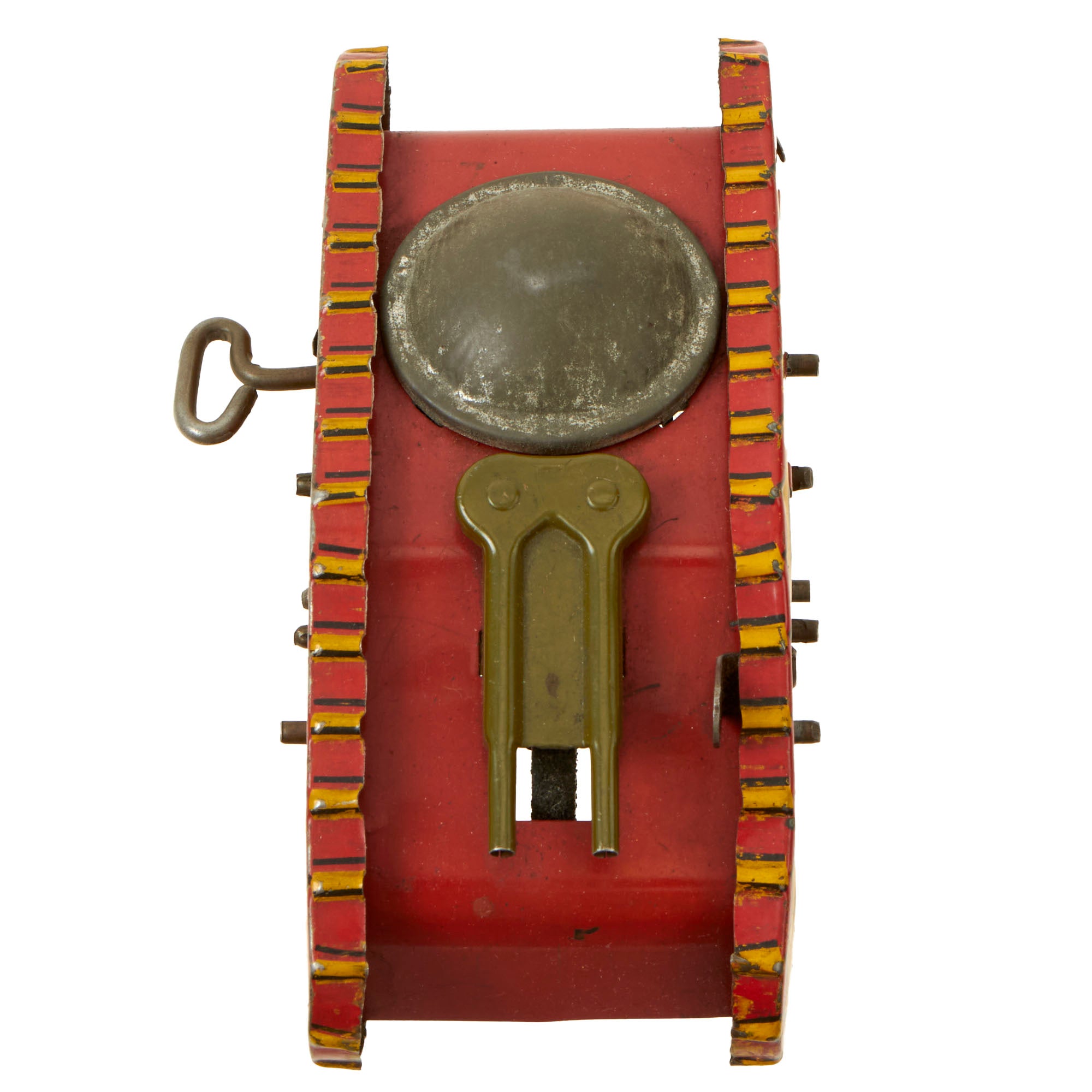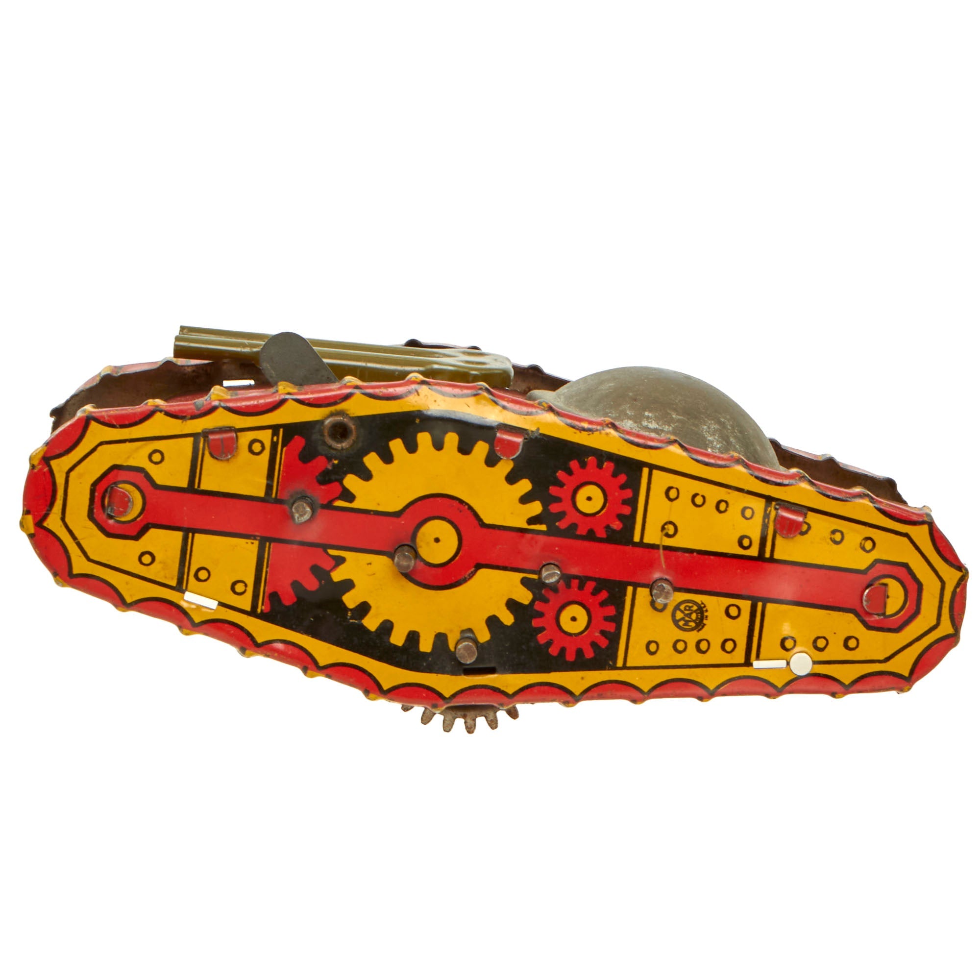 The tank itself was manufactured by Louis Marx and Company some time in the early 1930s. Louis Marx and Company was an American toy manufacturer in business from 1919 to 1980. They made many types of toys including tin toys, toy soldiers, toy guns, action figures, dolls, toy cars and model trains. Some of their notable toys are Rock'em Sock'em Robots, Big Wheel tricycles, Disney branded dollhouses and playsets based on TV shows like Gunsmoke. Its products were often imprinted with the slogan "One of the many Marx toys, have you all of them?"