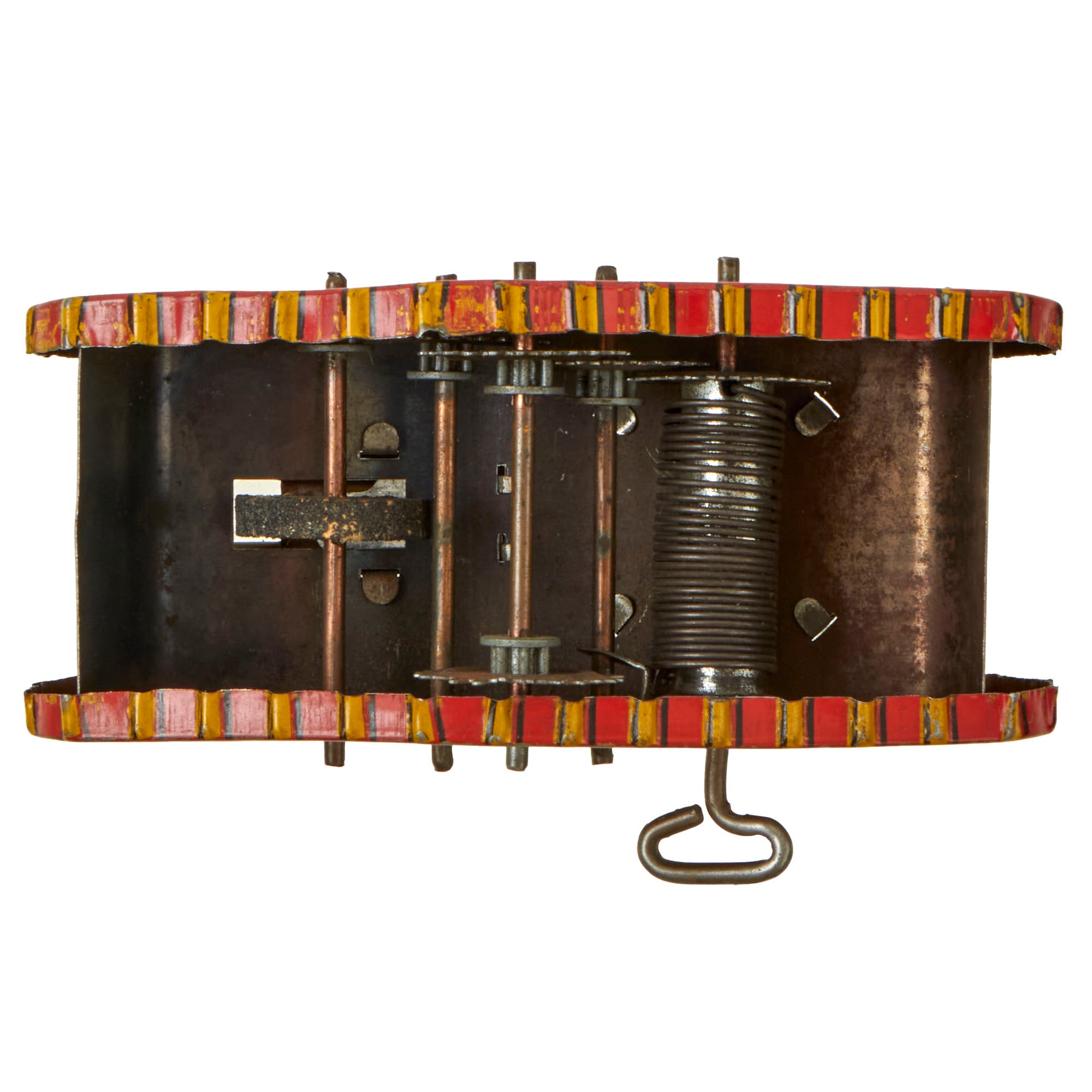Original Item: Only One Available. This is an exceptional example of a meticulously crafted tank model windup of a Mark IV style tank. The attention to detail is impressive, as the tank is constructed using a combination of various types of tin steel mechanical components such as a crank handle and springs, which adds a unique touch to the model. The overall design of the tank is mostly accurate and true to the original appearance wise, with all components still fully functional. The craftsmanship is remarkable, and it is evident that the creator took great care in every detail of the model, making it a true work of art. The body of the tank measures 5 ½” x 2 ¼” and sits at 2” tall.