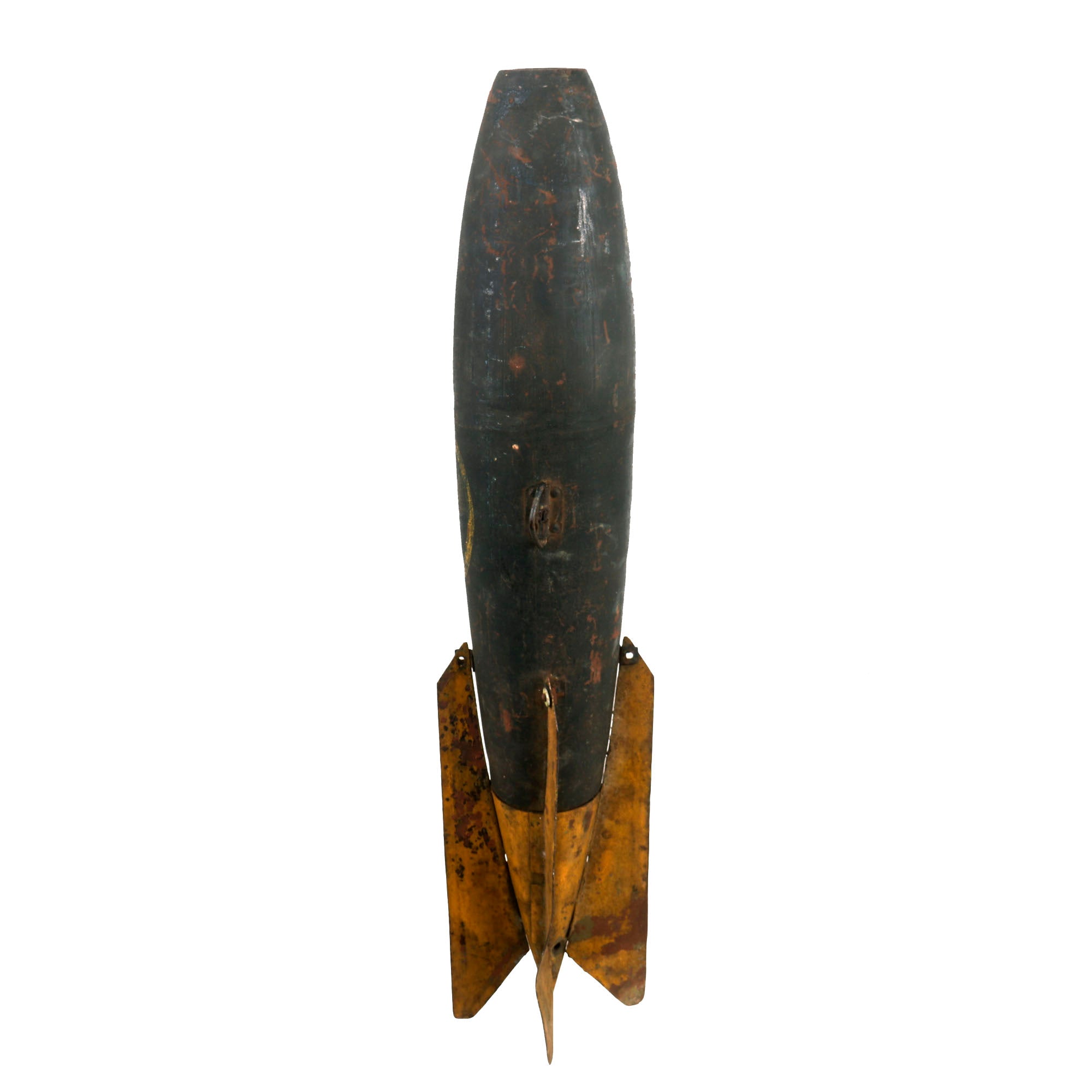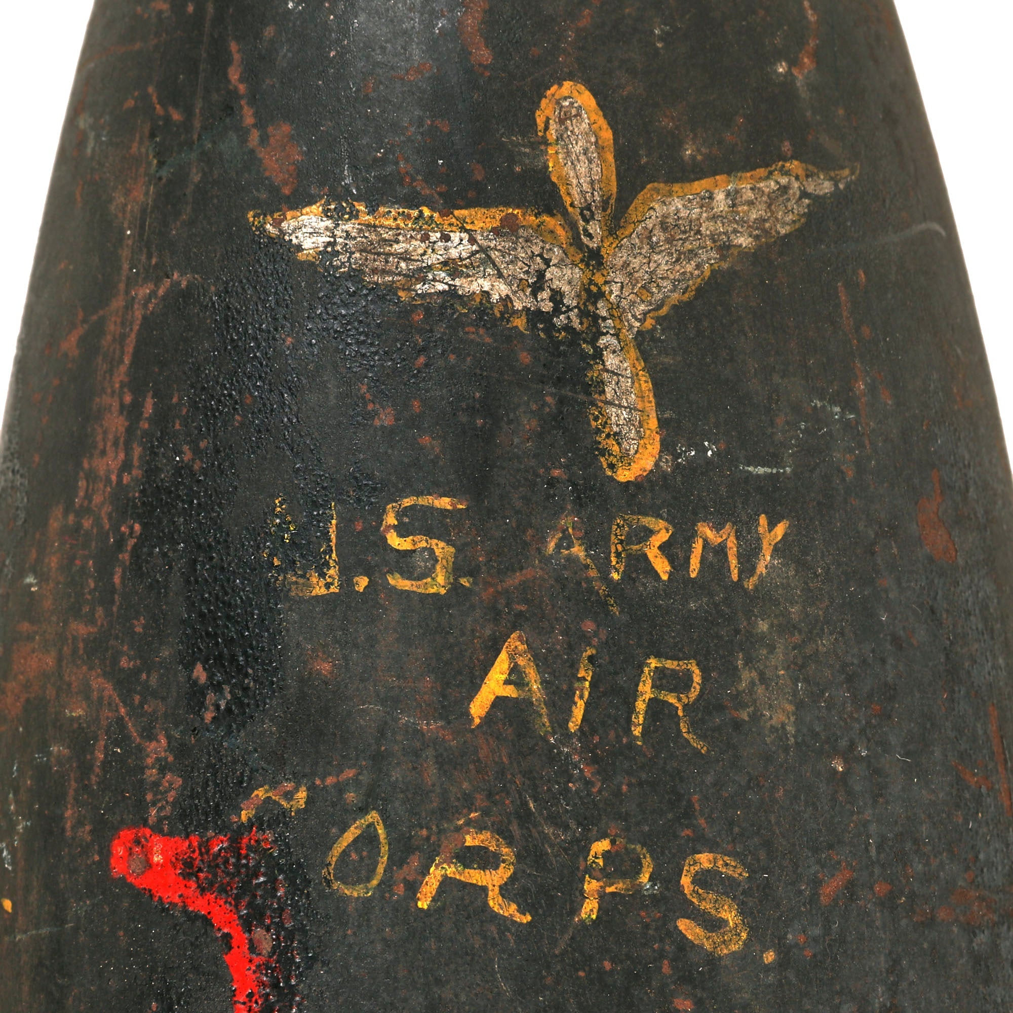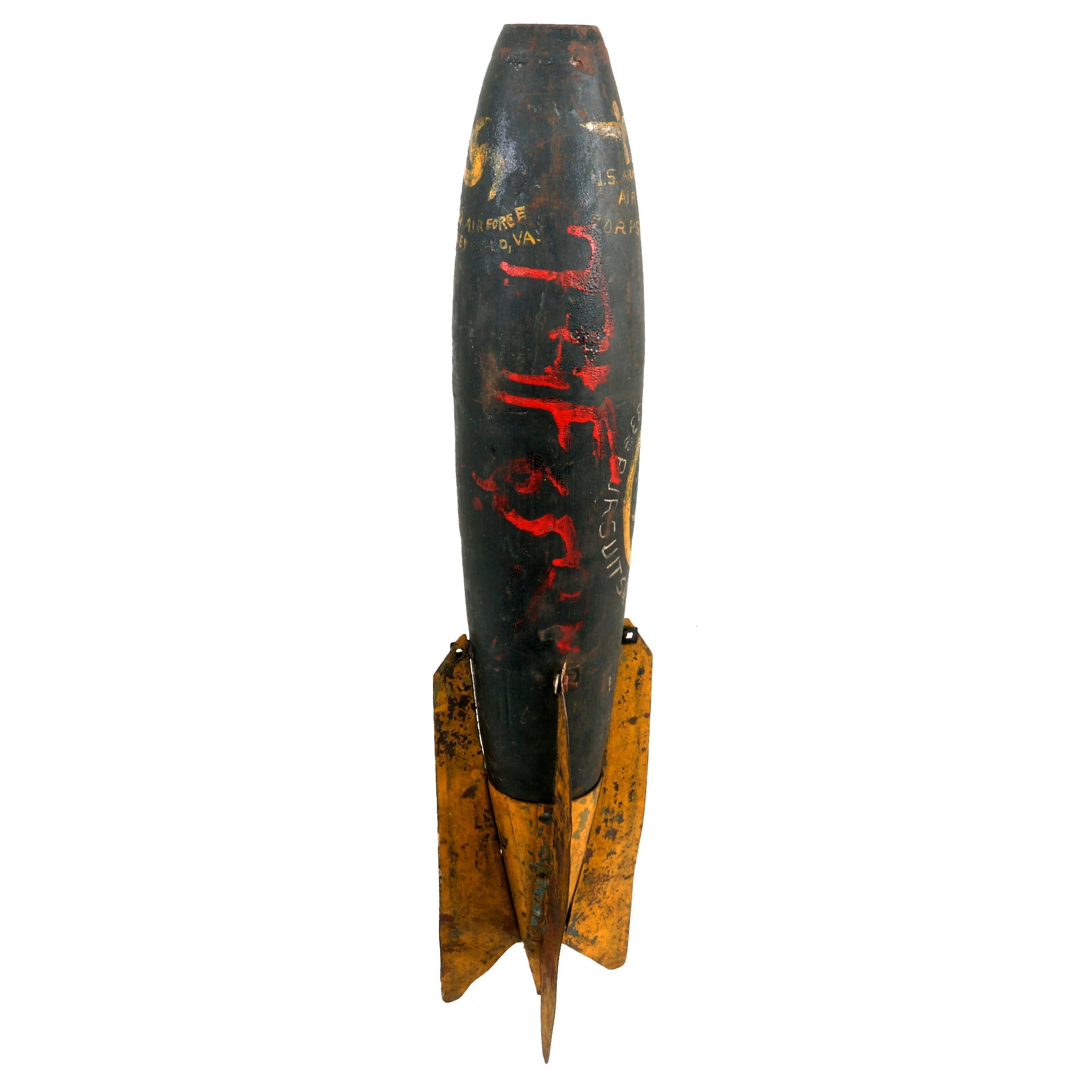 Original Item. One-of-a-Kind. This is a really tremendous piece of early U.S. Aviation history. A WWI-era Mk. I drop bomb which has been painted during the 1930’s for the 33rd Pursuit Squadron and the General Headquarters Air Force. The 33rd Pursuit Squadron emblem was approved on September 22nd, 1933, so this was painted sometime following this date. As deactivated ordnance it is NOT AVAILABLE FOR EXPORT.