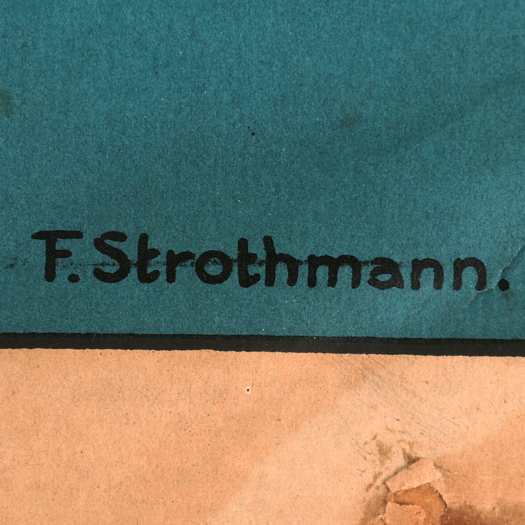 By 1900, Strothmann was established as an illustrator, working for The Saturday Evening Post, Collier's, Life, Harper's Magazine, and Good Housekeeping. He also illustrated many books. Strothmann created a well-known poster for the Liberty Bond drive of 1918, "Beat back the Hun with Liberty Bonds", showing a German soldier with blood on his hands, holding a bayonet and coming over the Atlantic Ocean towards burning ruins, which became an iconic image of the First World War.