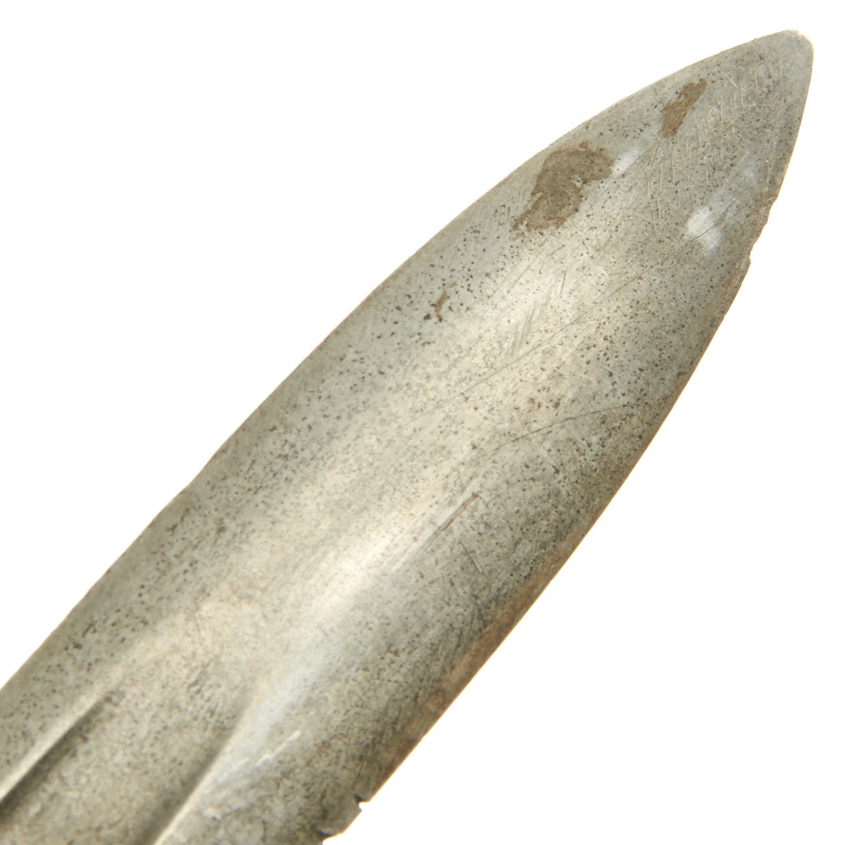 In 1943, the specification for bayonets was changed to have a 10 inch blade, and many M1905 bayonets were shortened to this length. This bayonet however is still in the original configuration, which is rare to find on the market today. It also still has the original "bright" finish on the blade, and was not blued in 1917 when the specification was changed or parkerized when reissued.