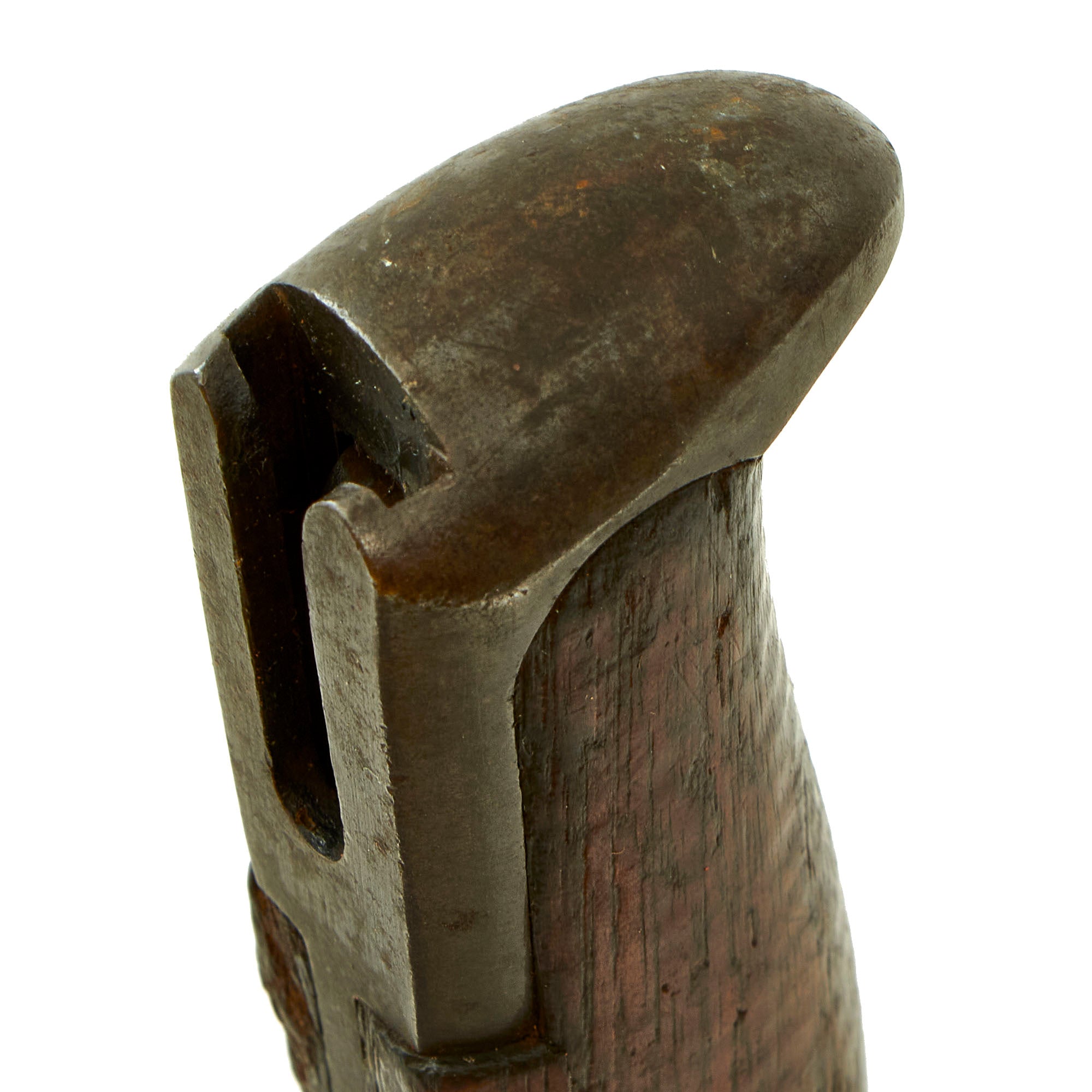 In 1943, the specification for bayonets was changed to have a 10 inch blade, and many M1905 bayonets were shortened to this length. This bayonet however is still in the original configuration, which is rare to find on the market today. It still has the original Post-1909 blued finish on the blade.