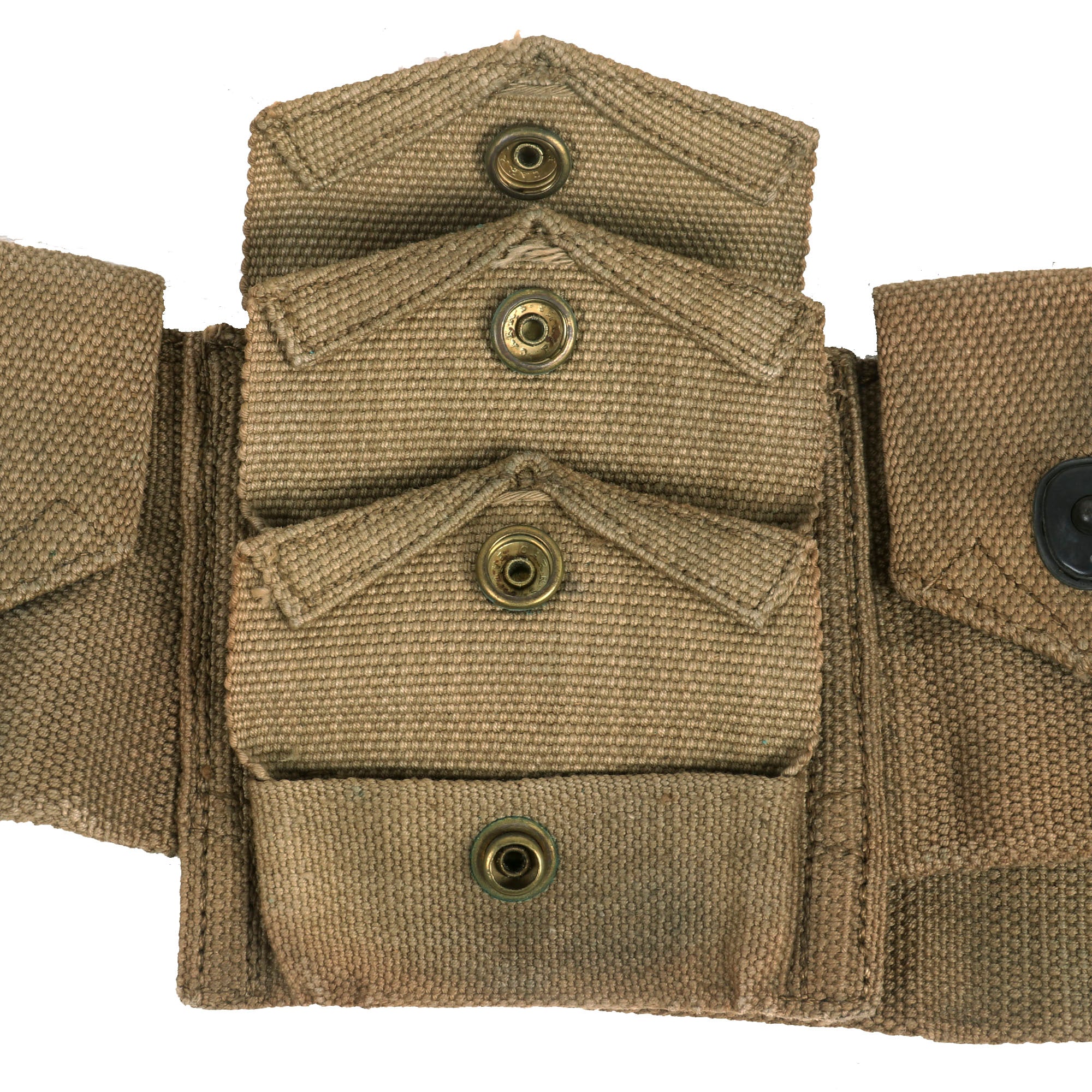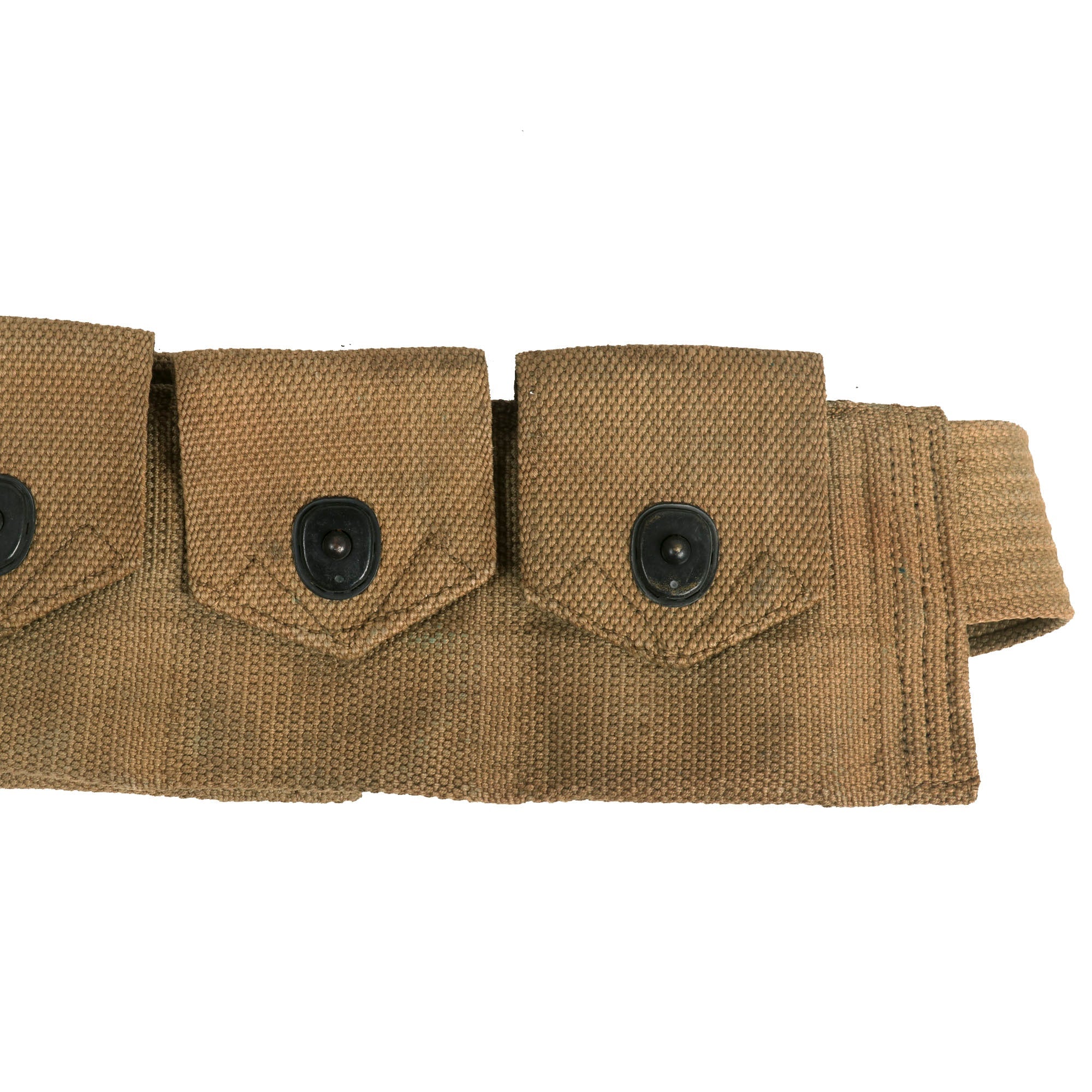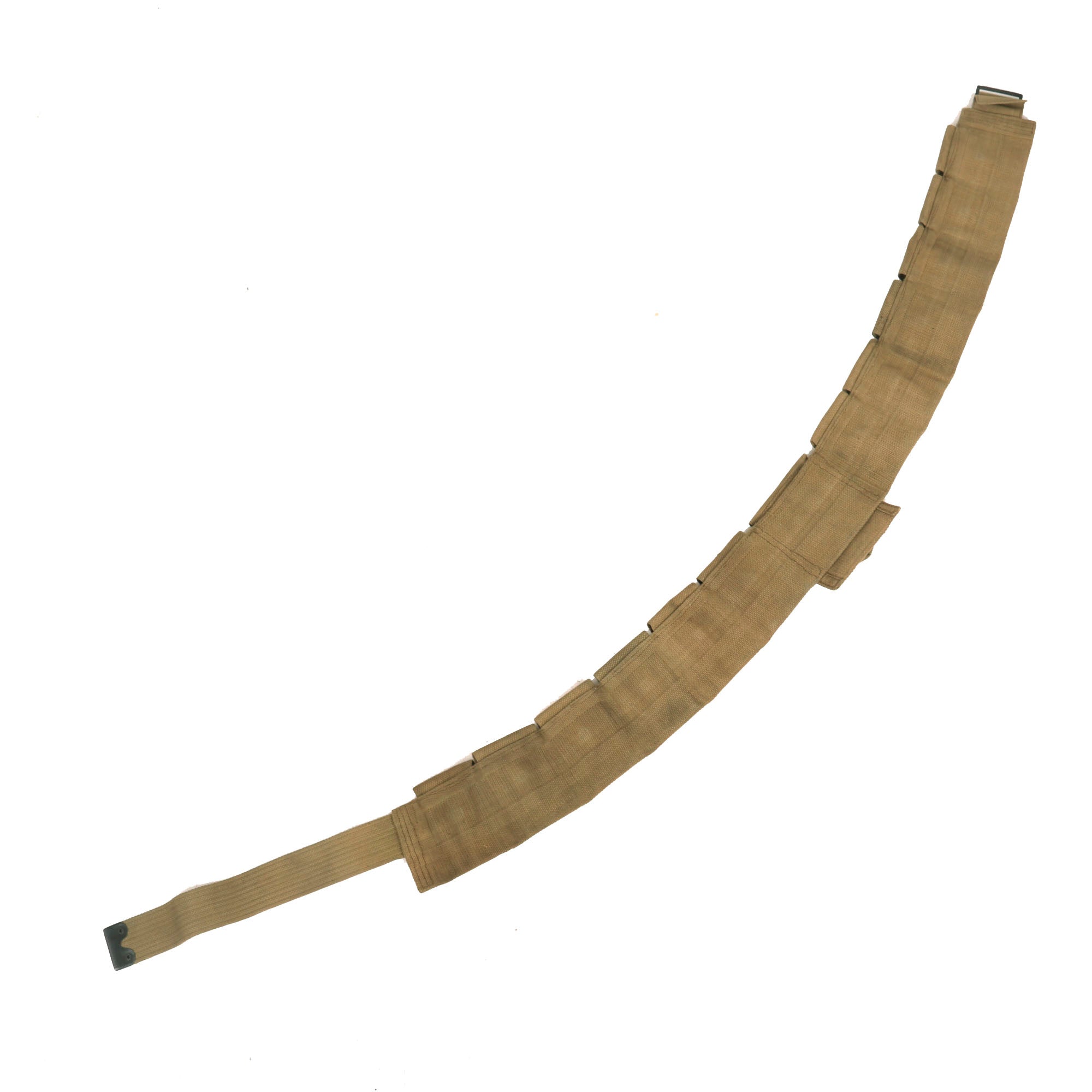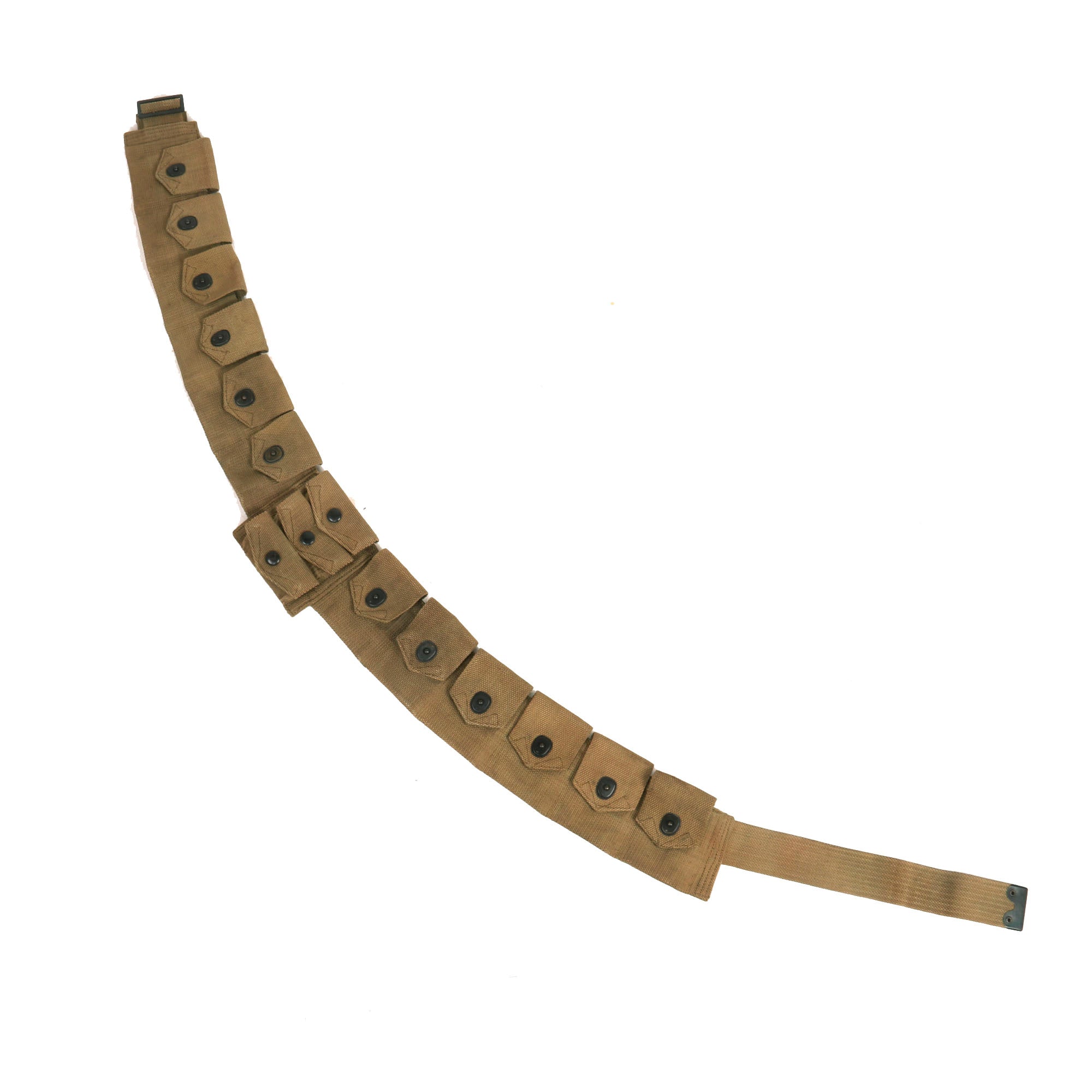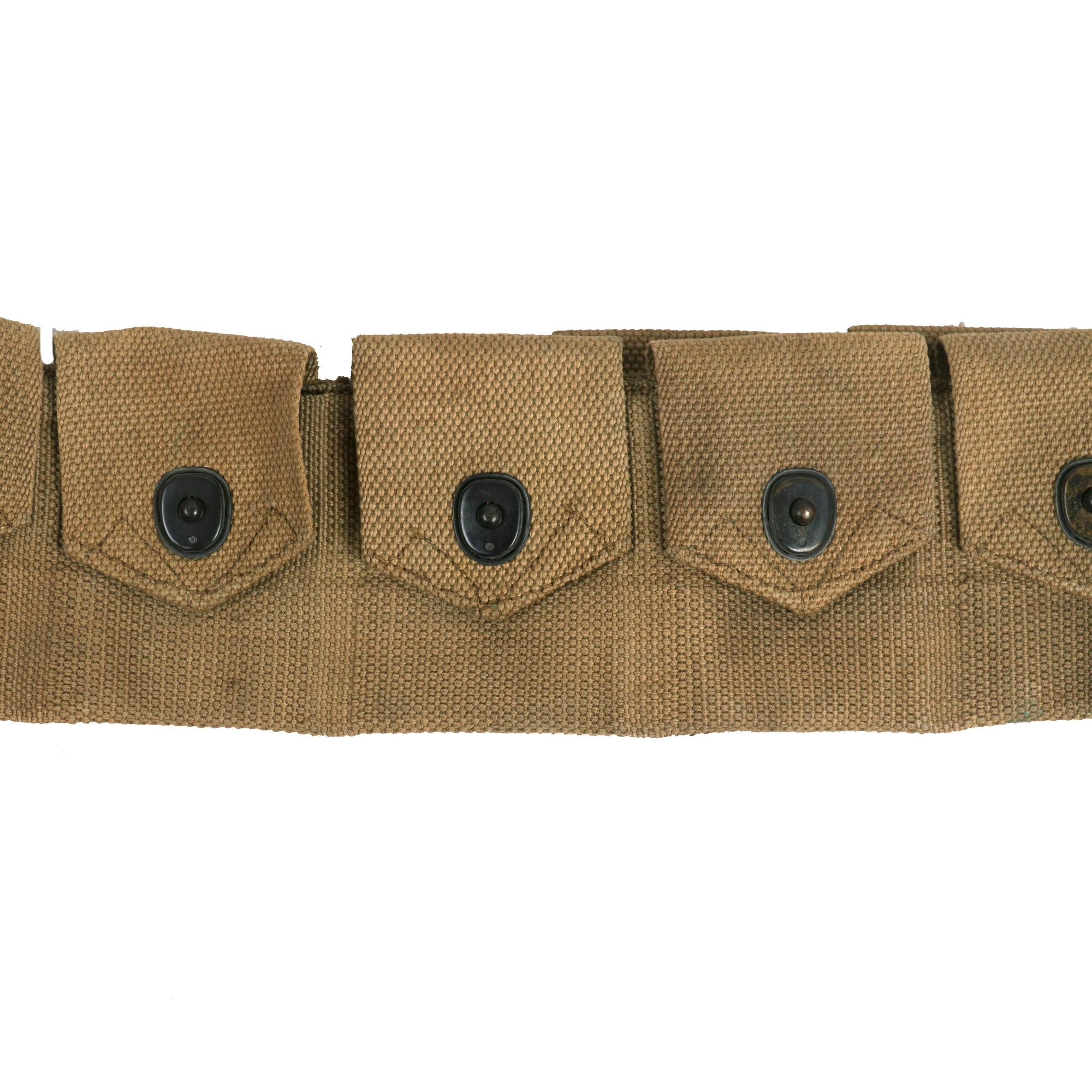 Original Item: Only One Available. Introduced in the early years of the 20th Century, these Model 1912 Cavalry Bandoliers saw extensive service in the field to include the Punitive Expedition into Mexico and World War One. These bandoliers are known to have been modified by removing the three pocket pistol ammunition carriers to allow the soldier to attach the Model 1911 Magazine Pouch.