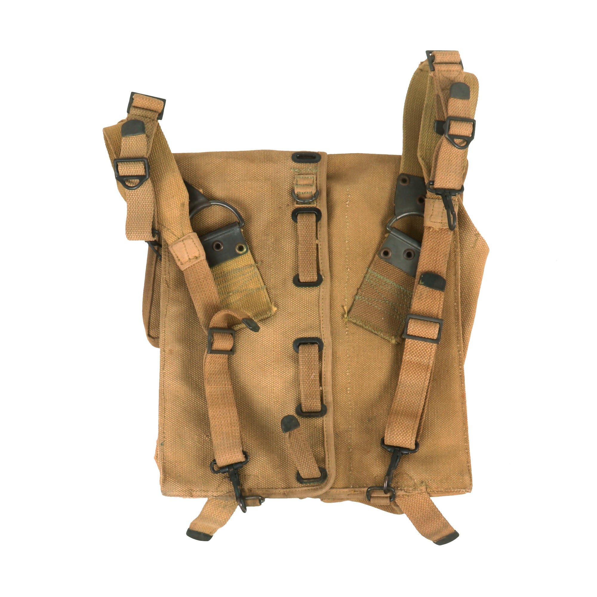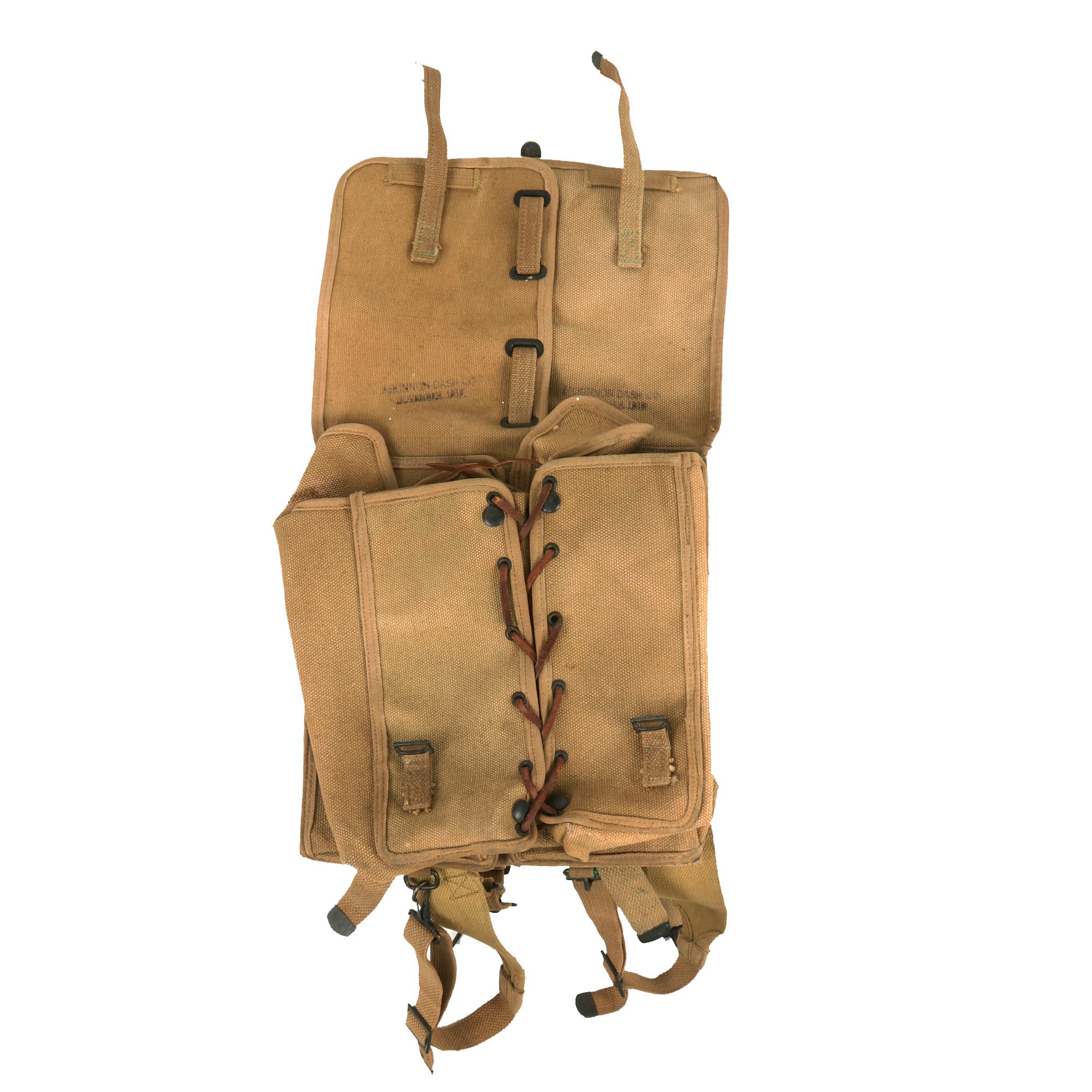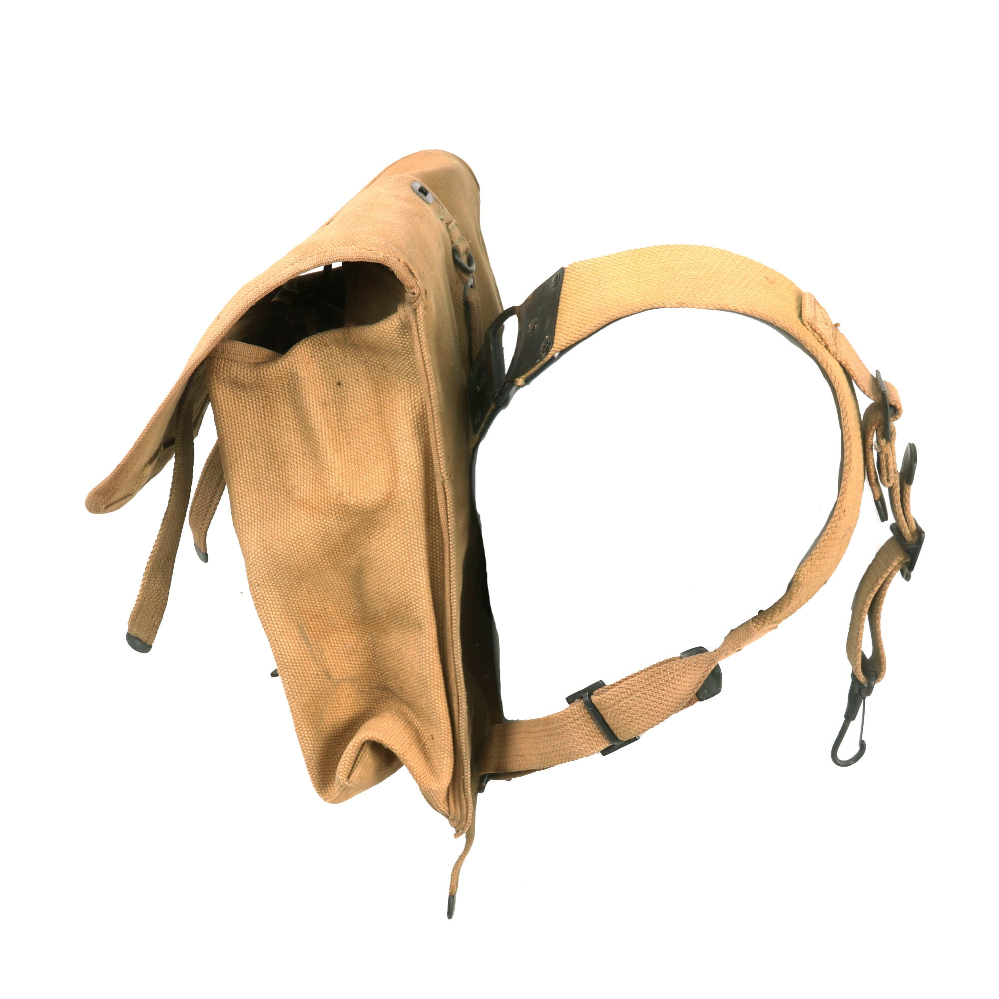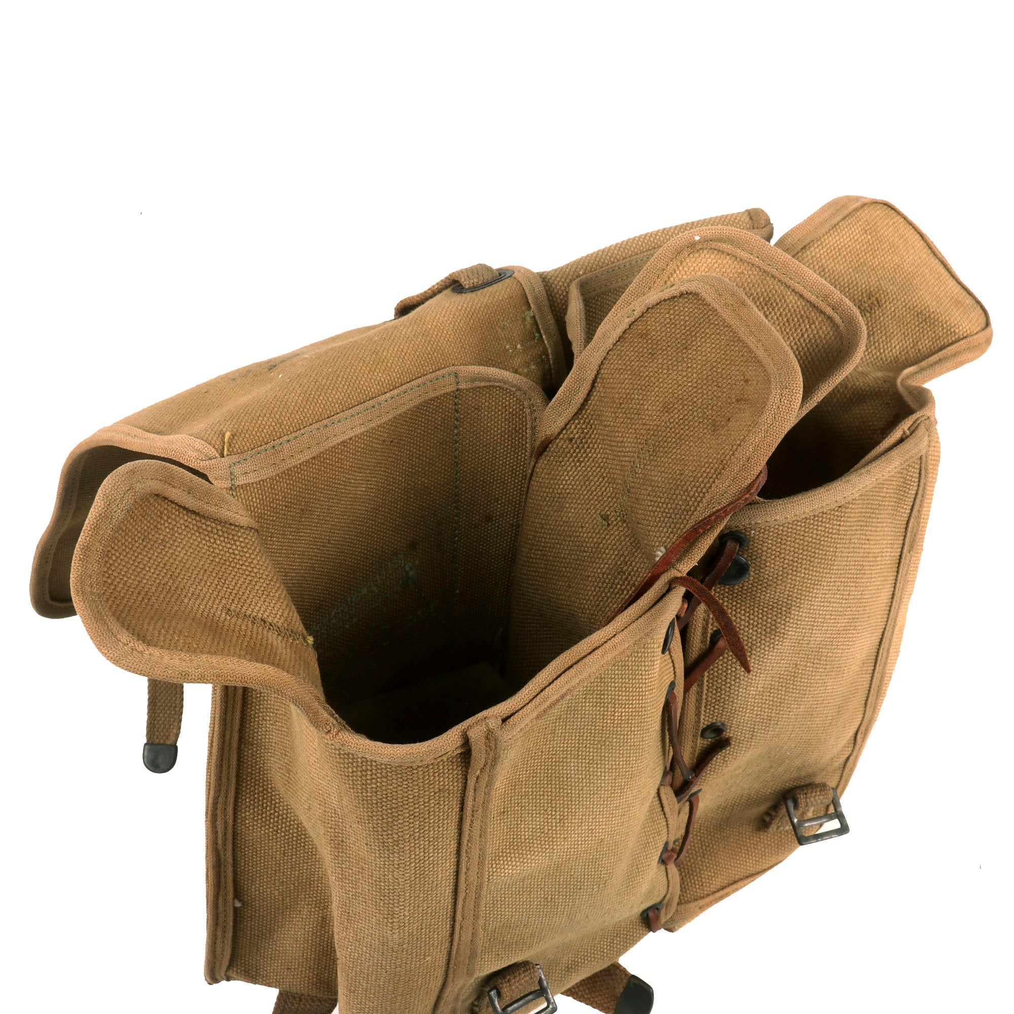 These bags were recycled into use among the Corpsmen and Medics to be used for carrying extra medical supplies. The M1910 haversack was deemed unsuitable by the medics and they needed something that they could access quickly, these were the best option at the time, more than likely saving more lives due to the easier access. The bag itself is in great condition with staining and signs of field use.