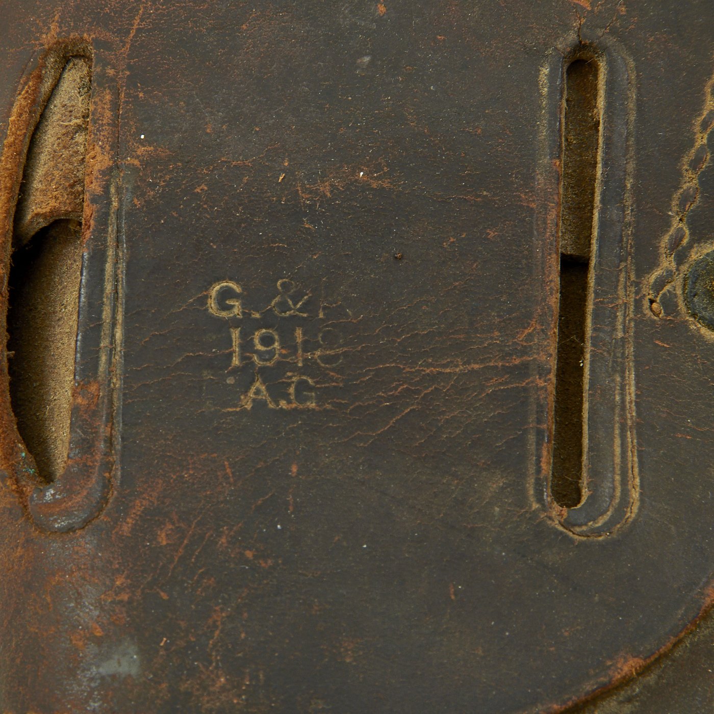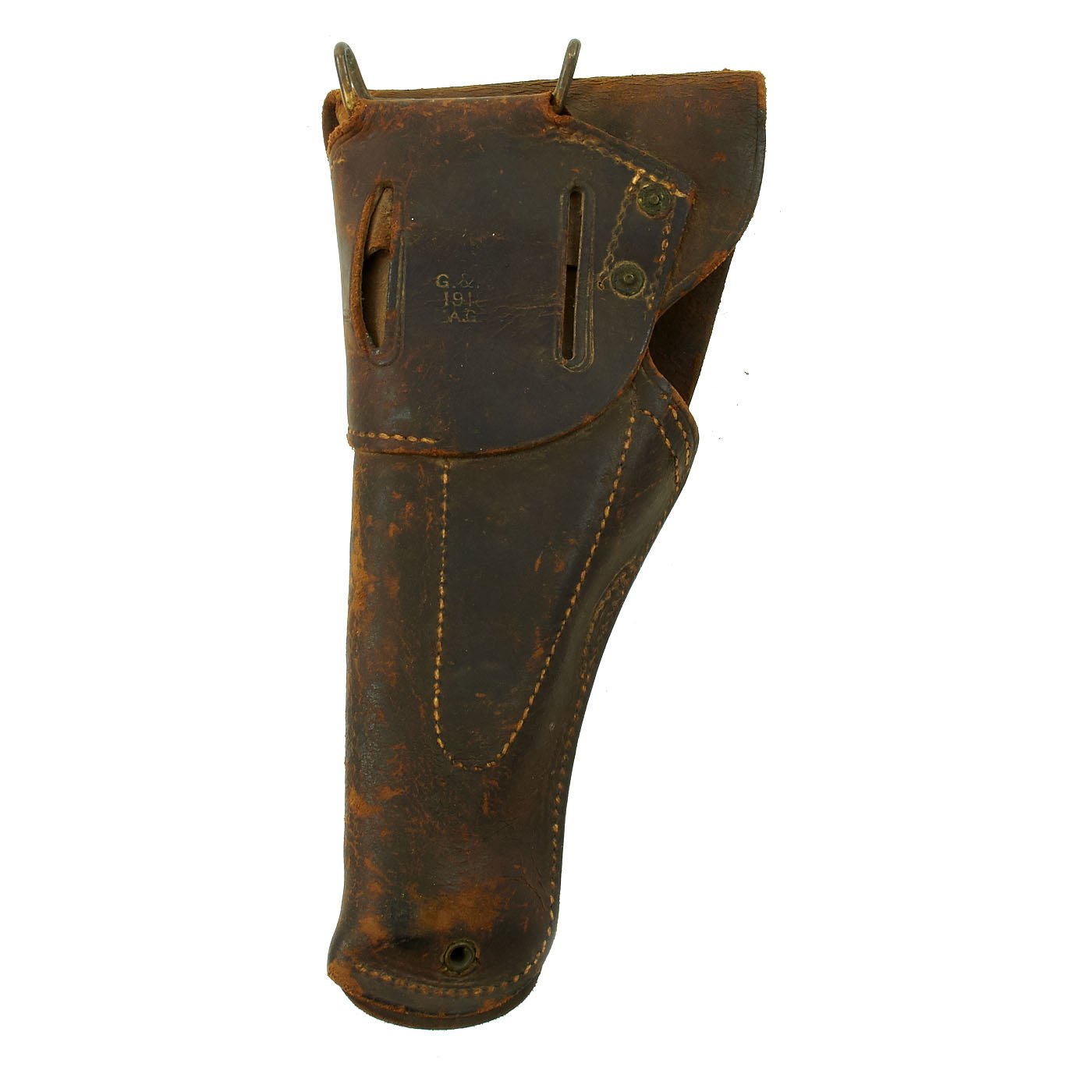 Original Item: Only One Available. This is a very rare totally original WWI Model 1916 holster for the .45 auto. This holster is maker marked G. & K. for Graton & Knight Manufacturing Co., Worcester, Mass. This holster was made in 1918 and inspected by C.A.C.. Graton & Knight made many of these holsters for WWI and WWII, however the date along with the brass belt clip indicates this is definitely a WW1 holster close to 100 years in age. Research also indicates that C.A.C. may stand for "Coastal Artillery Corps", but this is not confirmed.