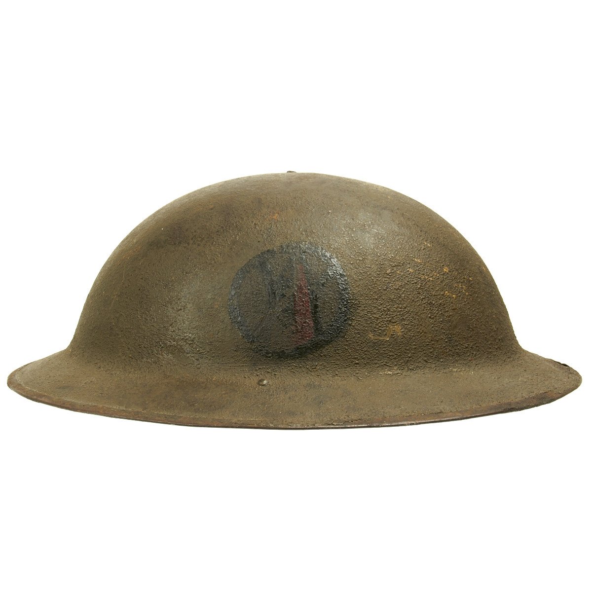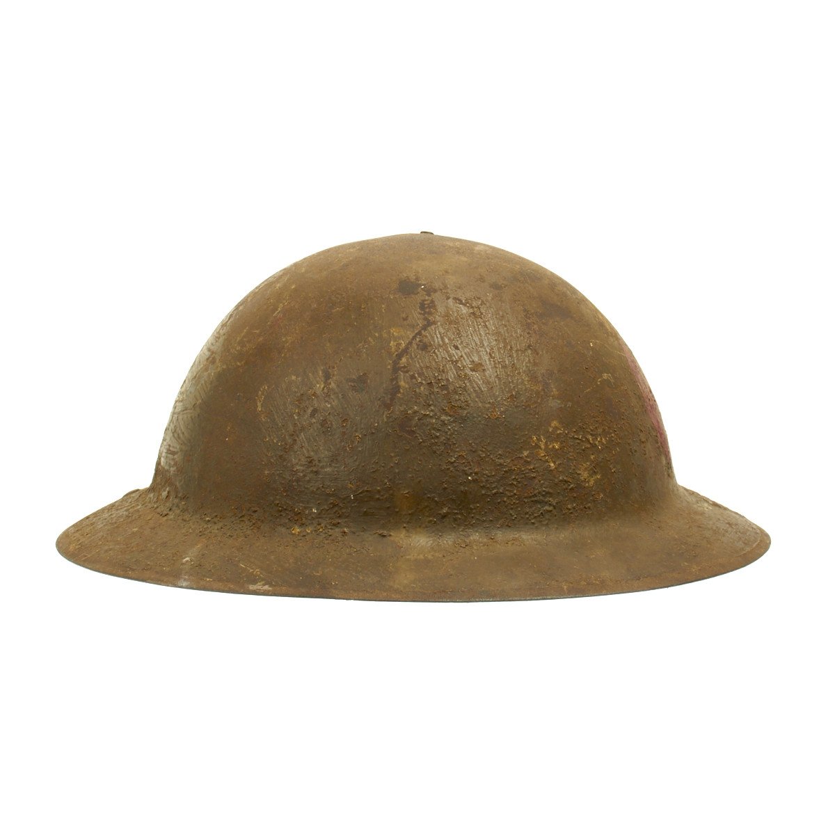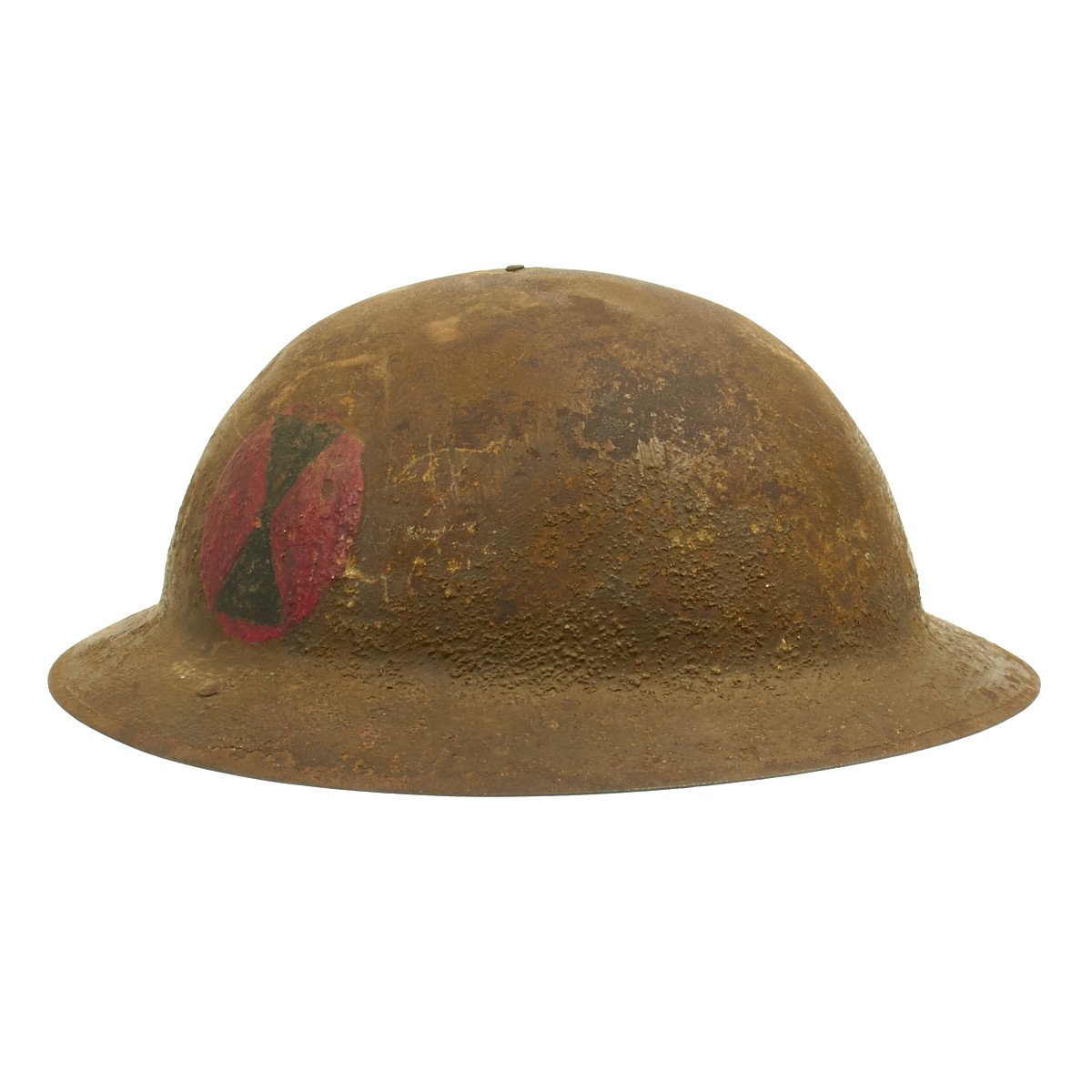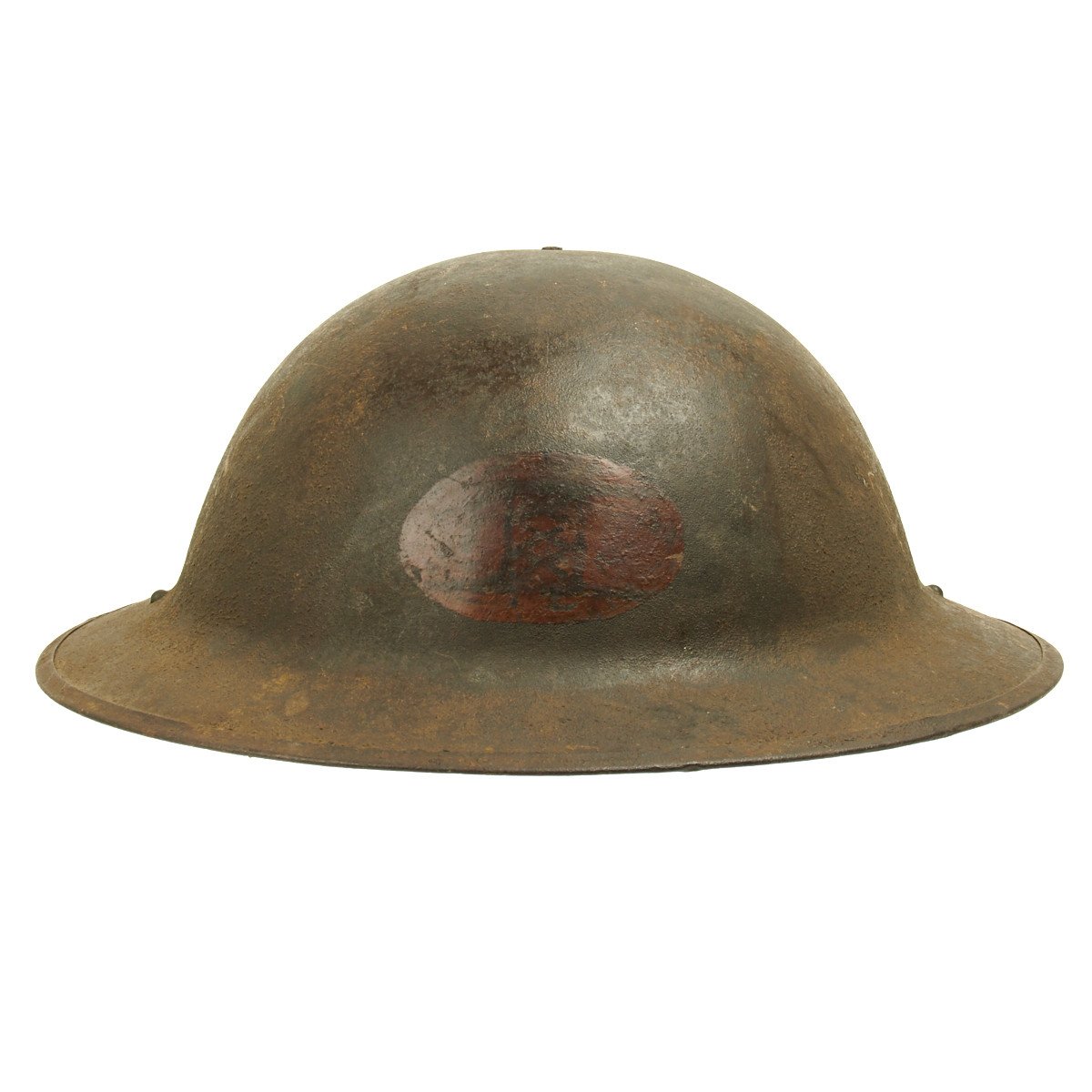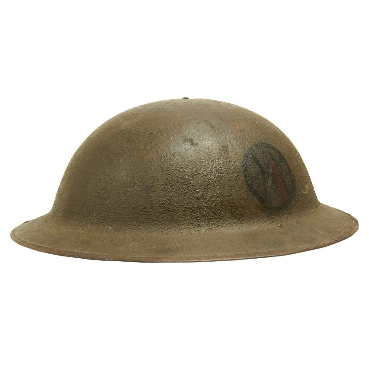 Original Items: Only One Set Available. These wonderful examples all have original period textured paint. Every shell is maker marked with a stamping on the underside of the rim. These are wonderful examples of a genuine USGI Great War helmets from well known divisions of the US army.