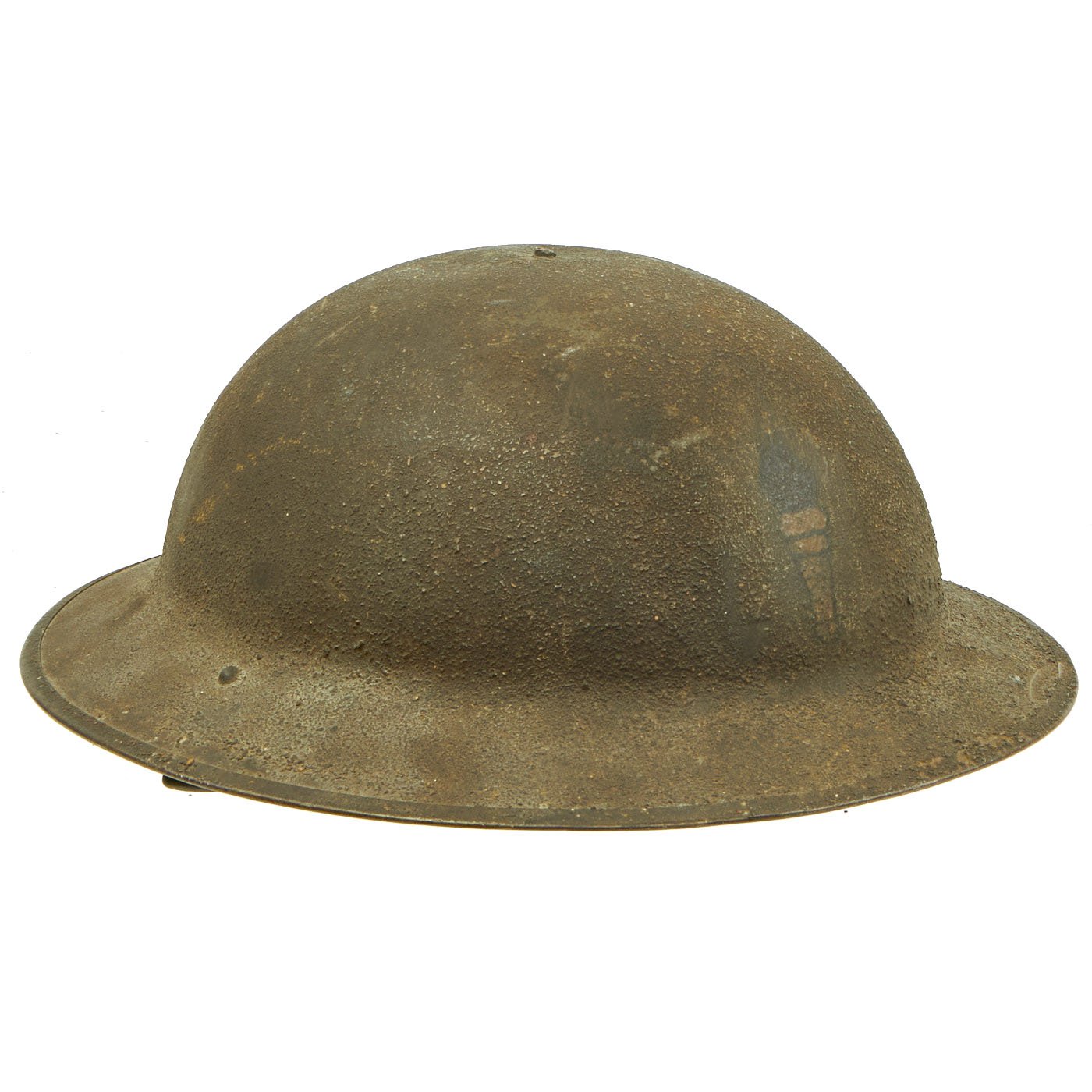 The M1917 is a near identical version of the British Mk.I steel helmet, and it is important to note that when the US joined the Great War in 1917 they were initially issued with a supply of around 400,000 British made Mk.Is, before production began state side. The M1917 differed slightly in its lining detail, and exhibited US manufacture markings.