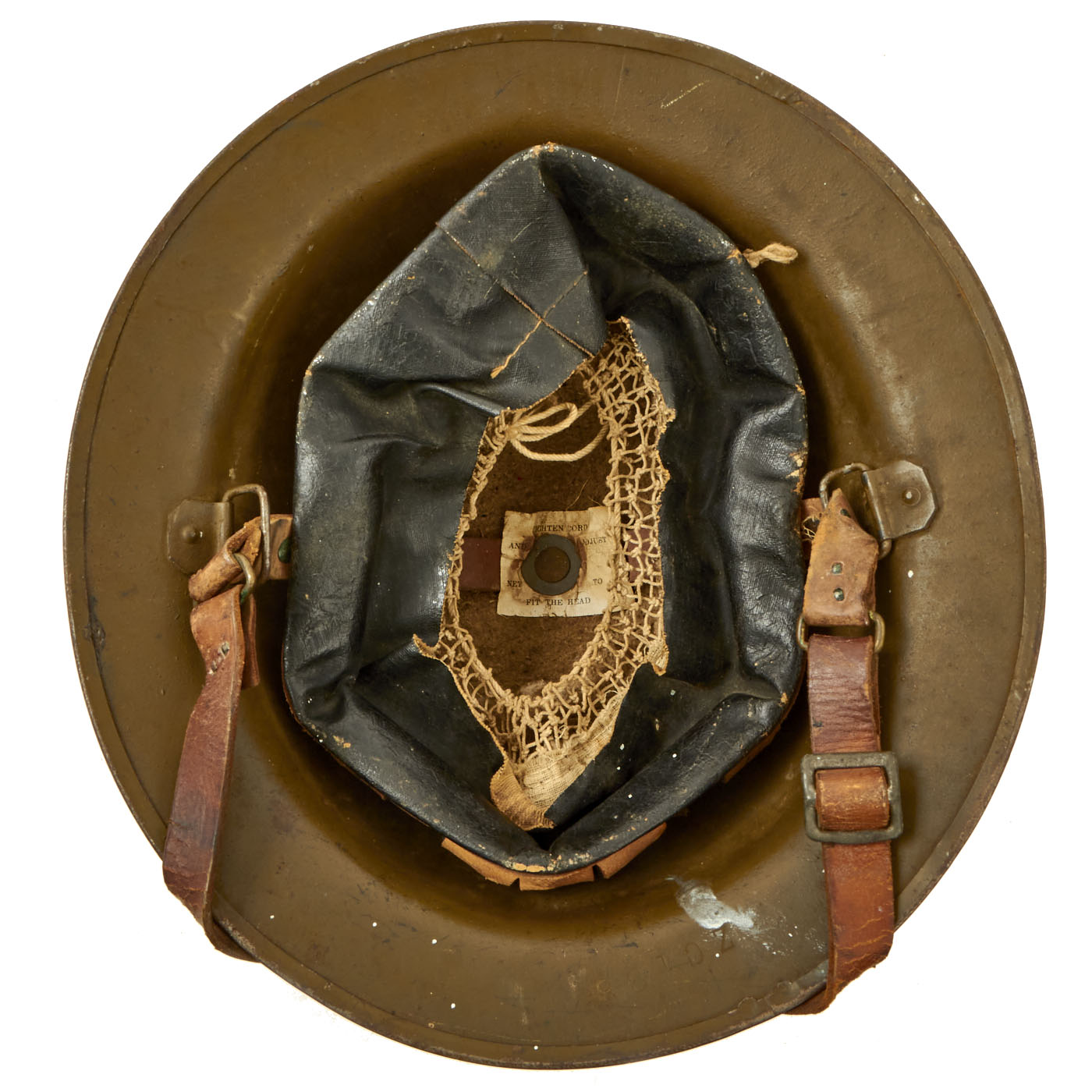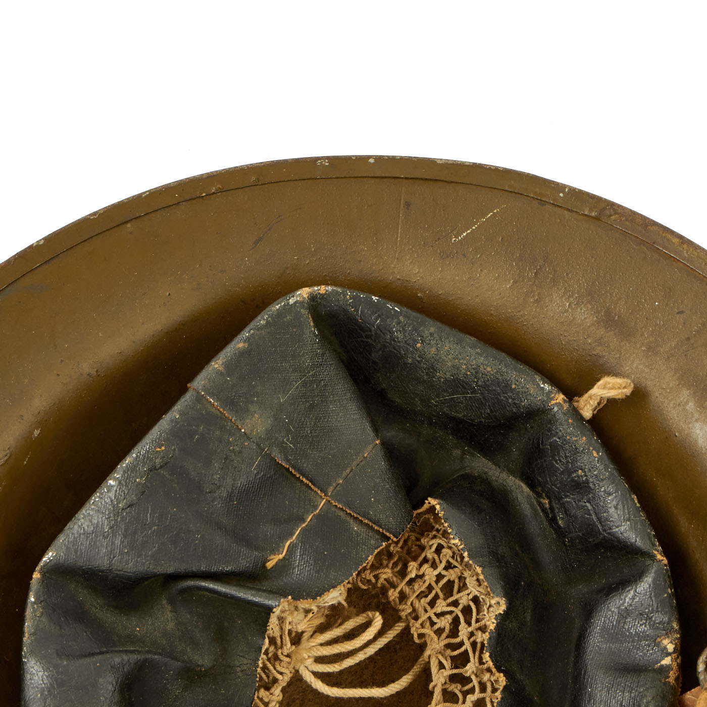 Original Item: Only One Available. This is a very nice example of a U.S. M1917 "Doughboy" helmet, which features original period OD Green paint and retains much of the original textured paint.