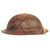The M-1917 helmet was very similar to the British Mk. I helmet. The helmet was basically an inverted bowl stamped out of a single piece of manganese alloy, which was made up of 13 percent manganese and was .036" thick. This differed from the British helmet, as the Mk. I helmet was made up of 12 percent manganese. Thus ballistically, the M-1917 helmet increased protection for the wearer by 10 percent over the British Mk. I helmet, and could withstand a .45 caliber pistol bullet traveling at 600 feet per second fired at a distance of 10 feet. A rim was spot welded to the edge of the steel bowl, with the ends butted, as opposed to lapped, which was done on the British Mk. I helmet. Riveted to the steel bowl were two flexible guiding loops for the chin strap. Here again, the U.S. M-1917 helmet differed from the British Mk. I helmet. On the U.S. helmet the loops were secured by solid machined rivets, whereas the British Mk. I helmet used split rivets. An adjustable leather chin strap was riveted to the steel bowl and consisted of two halves, each joined together by metal loops which were secured to the ends of the leather halves by steel split rivets. Also riveted to the steel bowl was the helmet lining. The lining was also similar to that of the British Mk. I helmet and consisted of a number of items described below: