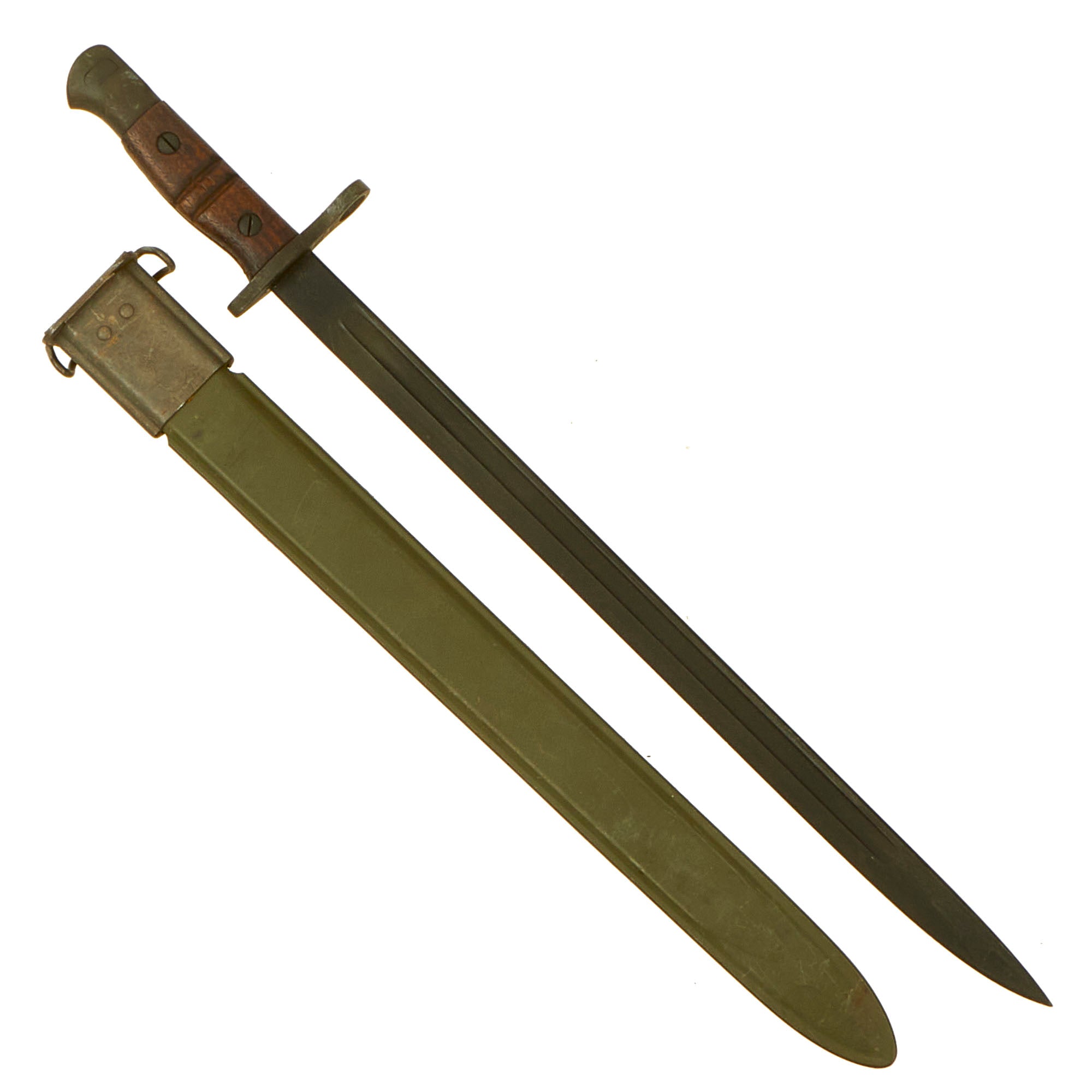 Original Item: Only One Available. At the start of WWI the British adopted the P-1914 Enfield rifle, which was made in the United States in .303 caliber, together with its sword bayonet designated by the British as the P-1913. Once the Americans joined the war in 1917 it was found that there was a great shortage of bayonets for their .30-06 Enfield rifle, known as the M1917. The rifle was identical to the P1914, except chambered for the U.S. .30-06 cartridge.