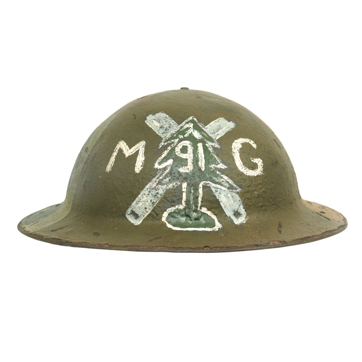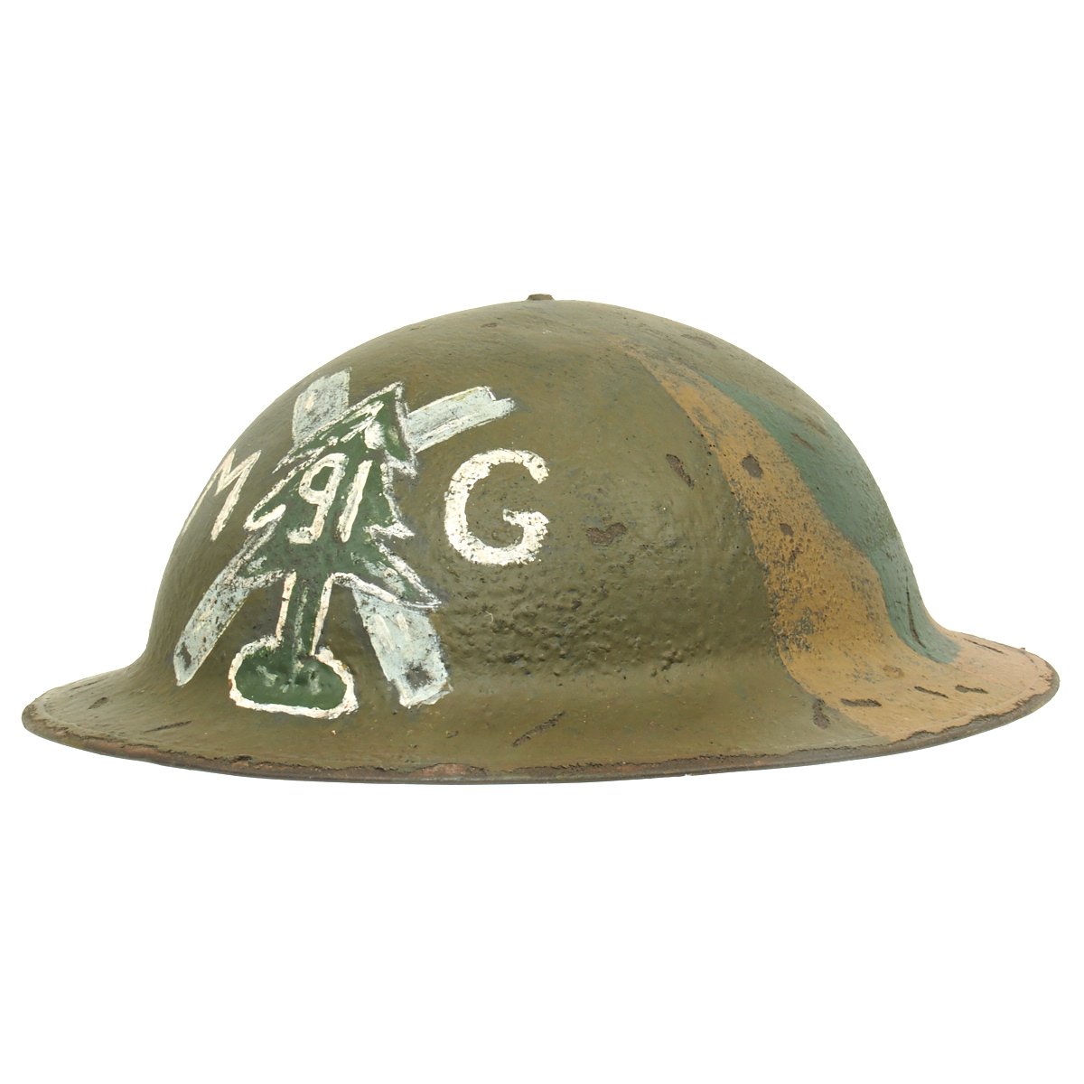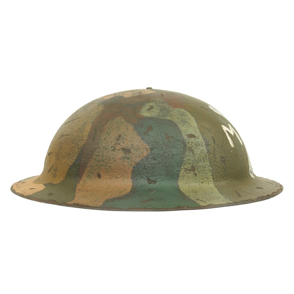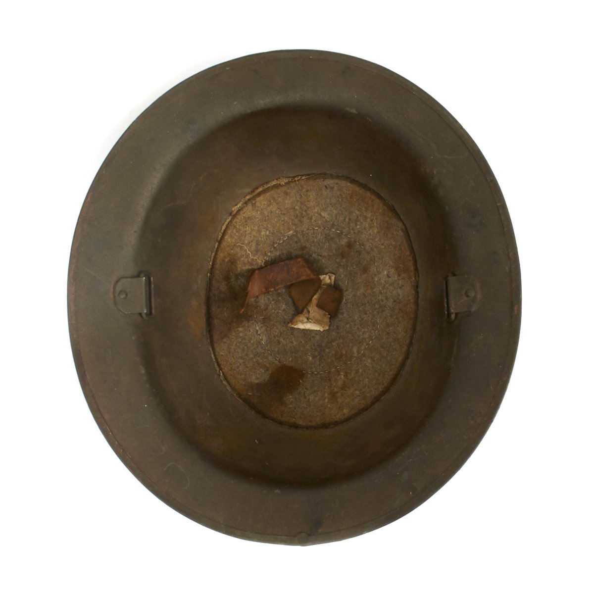 The M1917 is a near identical version of the British Mk.I steel helmet, and it is important to note that when the US joined the Great War in 1917 they were initially issued with a supply of around 400,000 British made Mk.Is, before production began state side, and this is such an example. The US-Made M1917s differed slightly in its lining detail, and exhibited US manufacture markings.