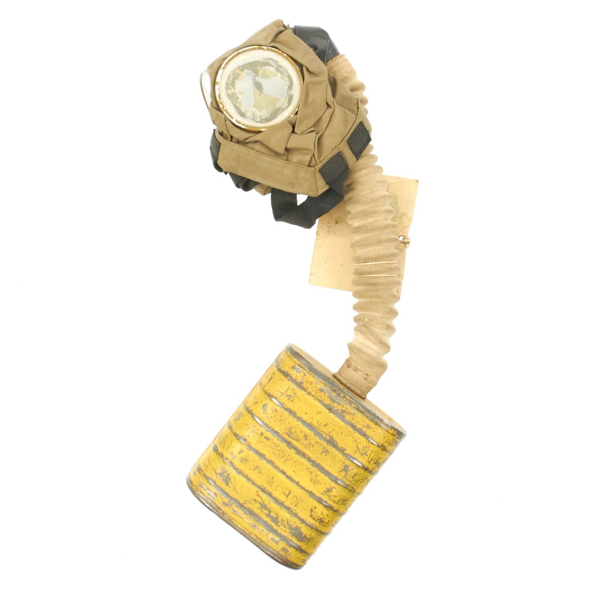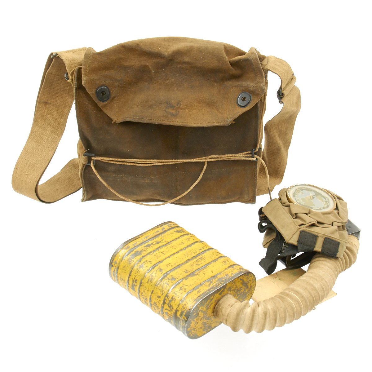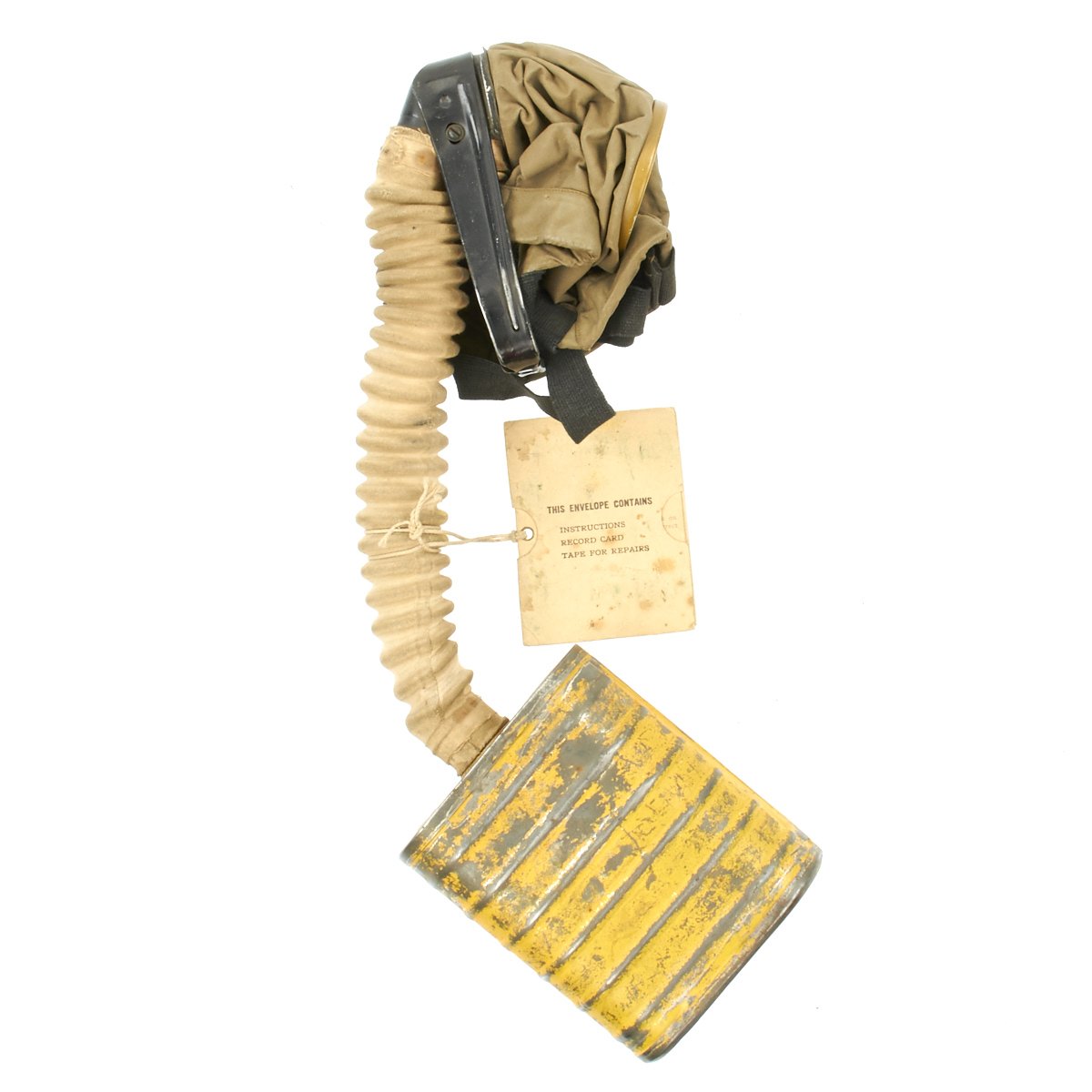 Original Item: Only One Available. Of the 5,250,000 gas masks of all types produced by the U.S. during the war, 1.6 million of them were the improved version of the British SBR. This mask was officially known as the U.S. Corrected English Small Box Respirator or the U.S. Corrected English Model (CEM). Produced in six sizes (1 through 6) from January to March 1918, the CEM was one of the two most commonly worn American made gas masks used by the AEF.Despite complaints from France regarding the British SBRs uncomfortable mouthpiece and its despised hated nose-clip, American gas experts determined that this type of respirator provided the best protection. Ever since the failure of the ASBR, American gasmask designers toiled to modify, improve, and ultimately make the American version of the SBR more comfortable, more reliable and stronger than the English mask that it mirrored. After numerous revisions, by October of 1917, the design had been perfected. Upon passing a comprehensive battery of field tests, the CEM respirator went into full scale production in January of 1918. It would be the very first U.S. made gasmask to see service in the gas soaked trenches of the Western Front.This is an excellent example complete with mask, filter, carry satchel and is complete with the original instruction manual. The mask is in great condition but has hardened a bit over time. Genuine examples in this overall very good condition are always hard to find.