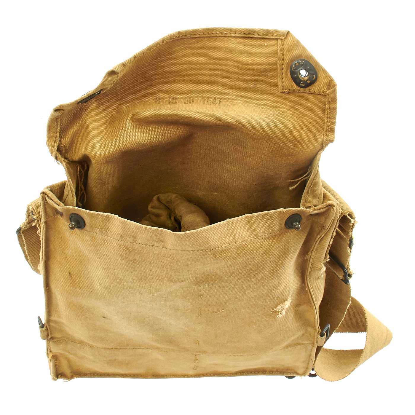 This is very nice example complete with mask, filter, carry satchel and is complete with the original instruction manual. The mask is in good soft supple condition with some wear. Typically these gas masks get hard and brittle, this one has not! Genuine examples in this overall very good condition are always hard to find.