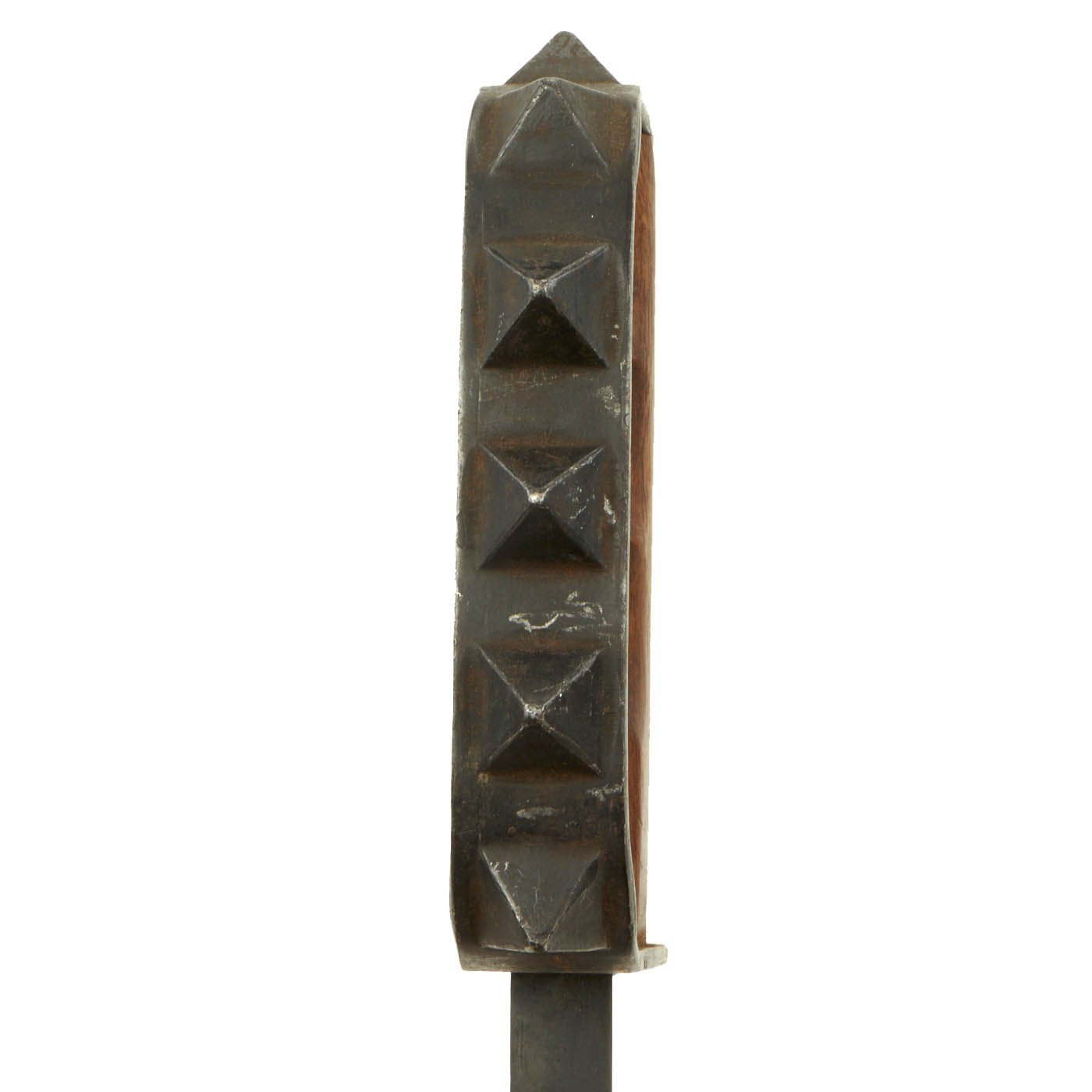 • Very condition spiked steel hand guard, with no major dents or bends. The original finish is very well retained, probably at about 90%, withy just a few areas of oxidation.