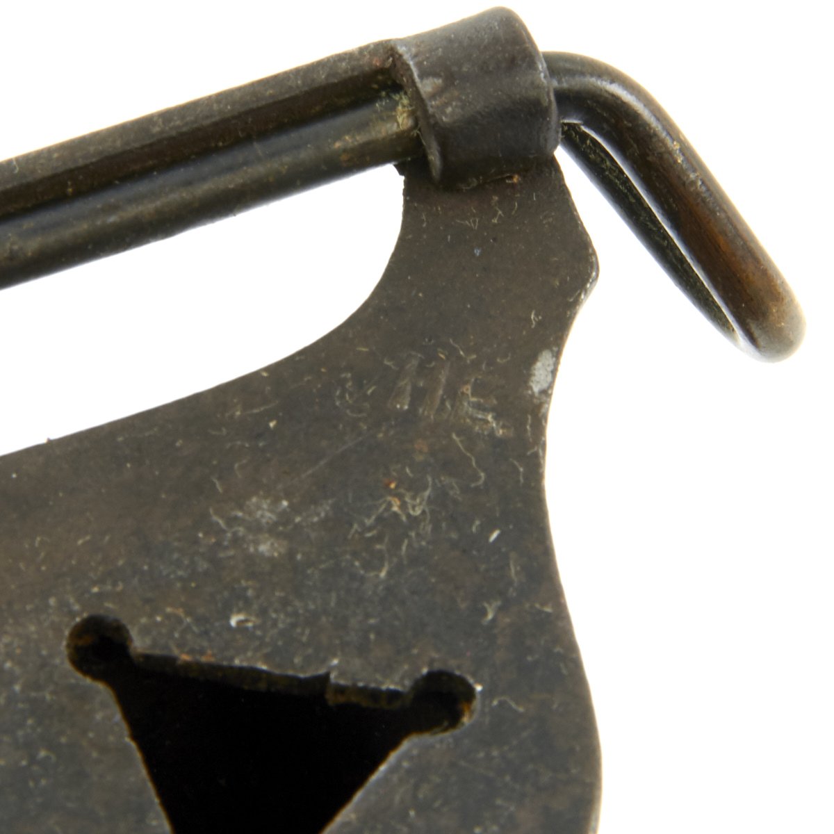 • Standard pistol belt brass attachment hook, with some original "blacked" finish in places.