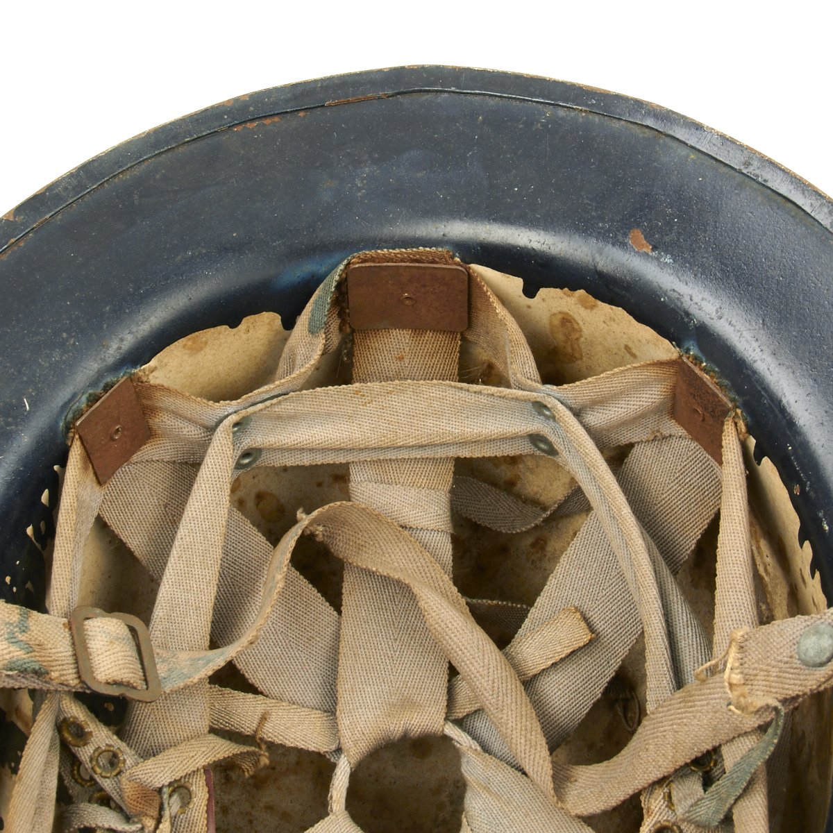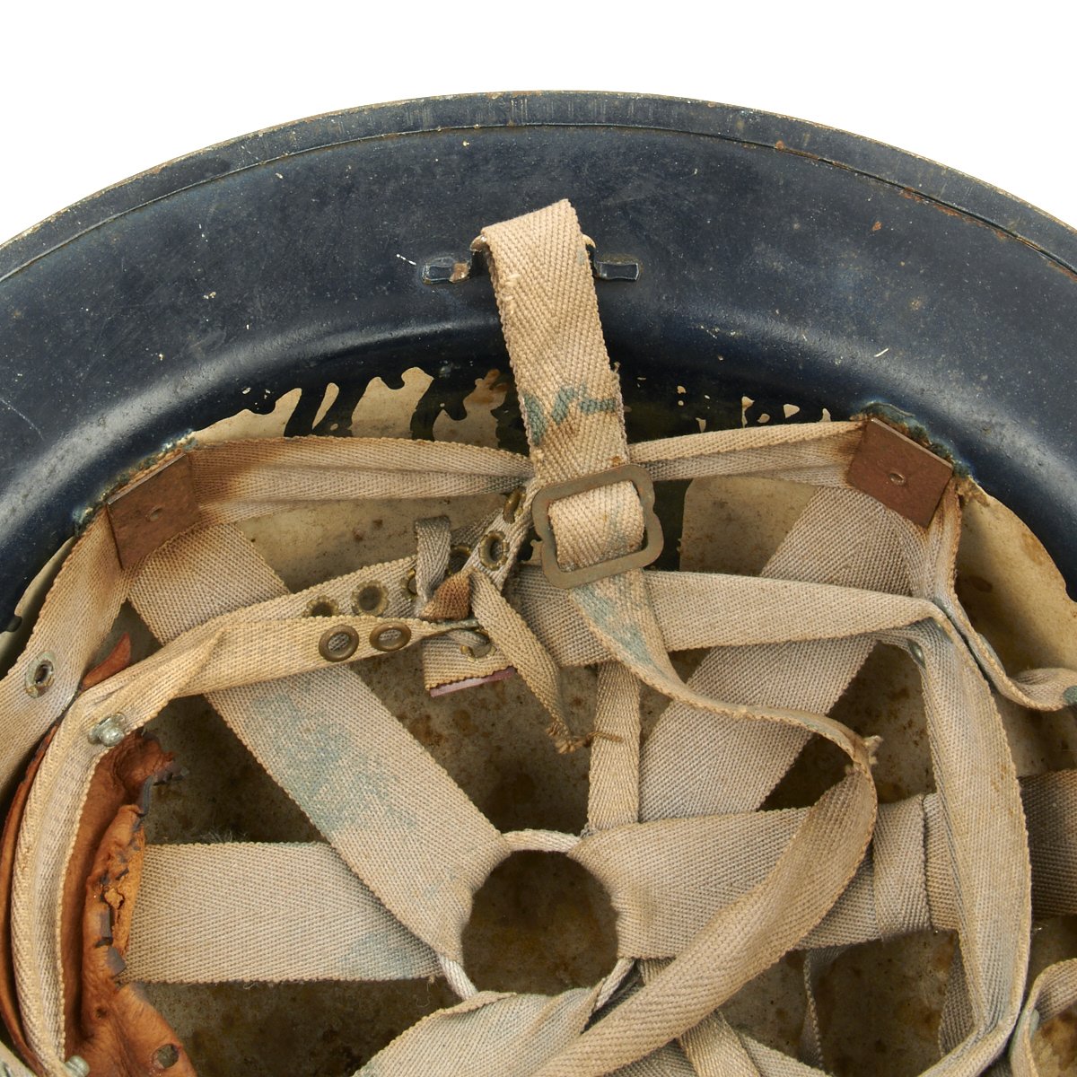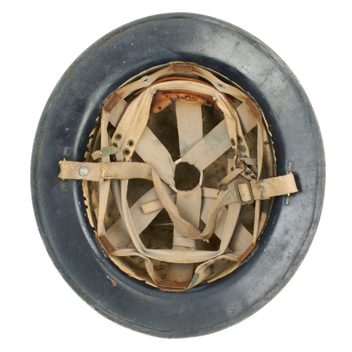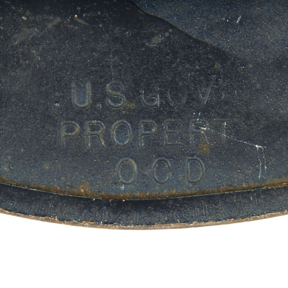 Original Item: Only One Available. This is a helmet original made for WWI that was reissued and repainted at the outbreak of WW2 for use in the Civil Defense program specifically the United States Citizens Defense Corps Auxiliary Police. It was then repainted and reissued for the City of Detroit Police Department. Overall condition is very good with original paint remaining, a WWII issue canvas chin strap and updated WW2 issue web liner.