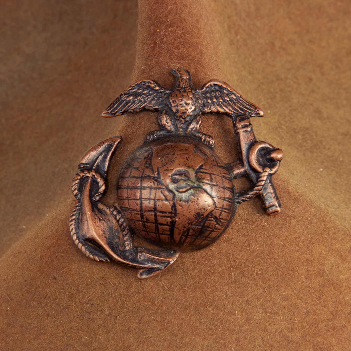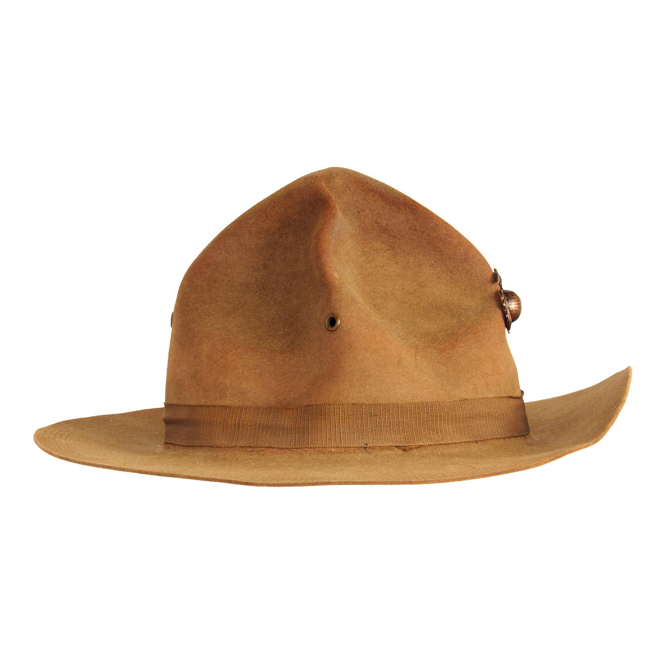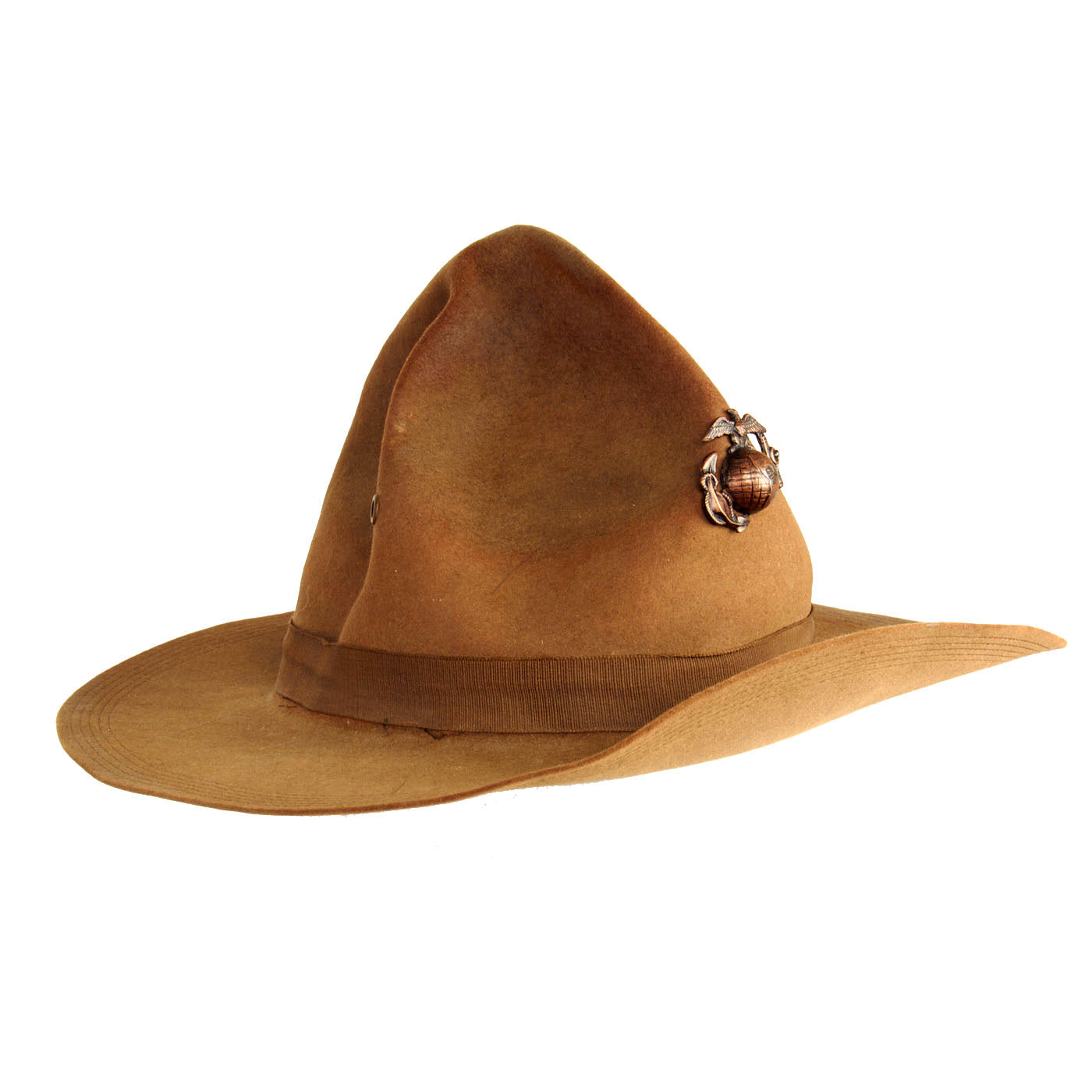 Original Item: Only One Available. This is a very nice example of a Pre-WWI/ WWI Era M-1912 Campaign Hat with the early “Montana Peak” high crown. This is arguably the most iconic piece of Marine Corps Headgear! Included is an early USMC Eagle, Globe, Anchor (EGA) Device which is contemporary, and correct, for the age of this hat. The EGA was on the hat and we received it, and we feel it has always been on the hat as it is pictured here.