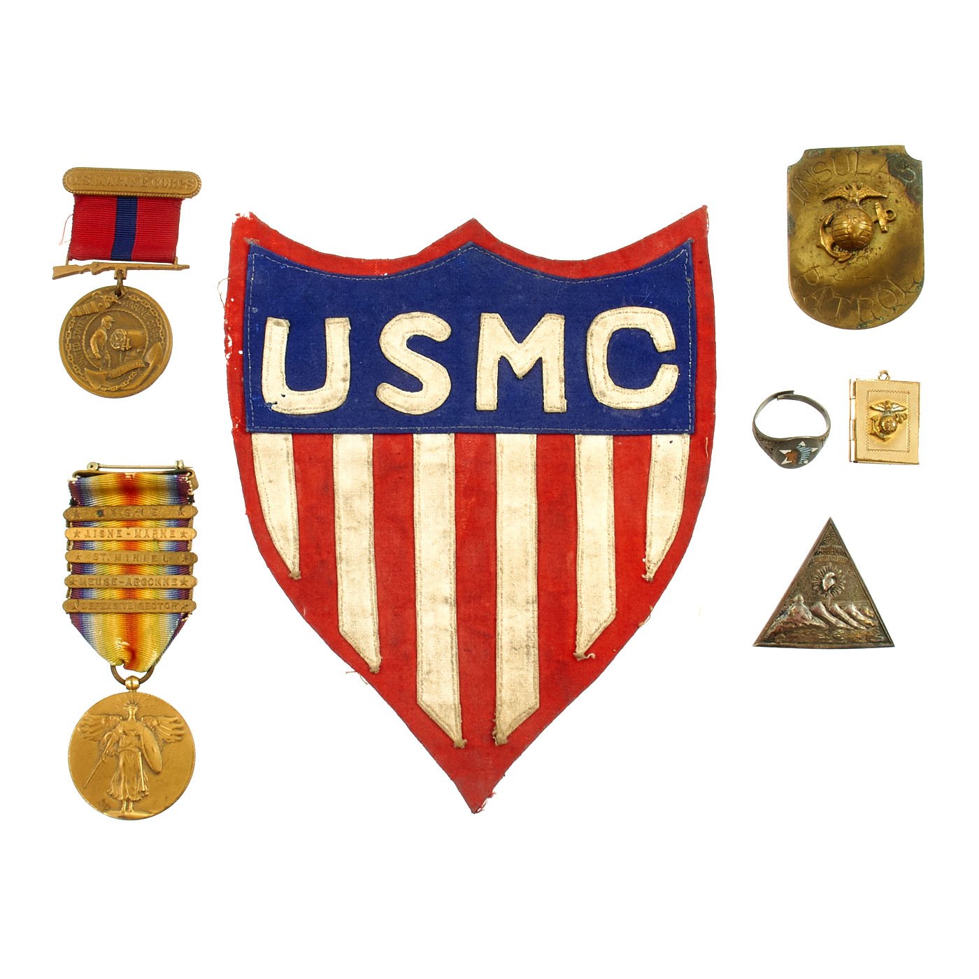 Original Items: One-of-a-kind set. This is a collection of medals, badges and miscellaneous items that belonged to a member of the United States Marine Corps that fought in World War One. The set includes the following items: