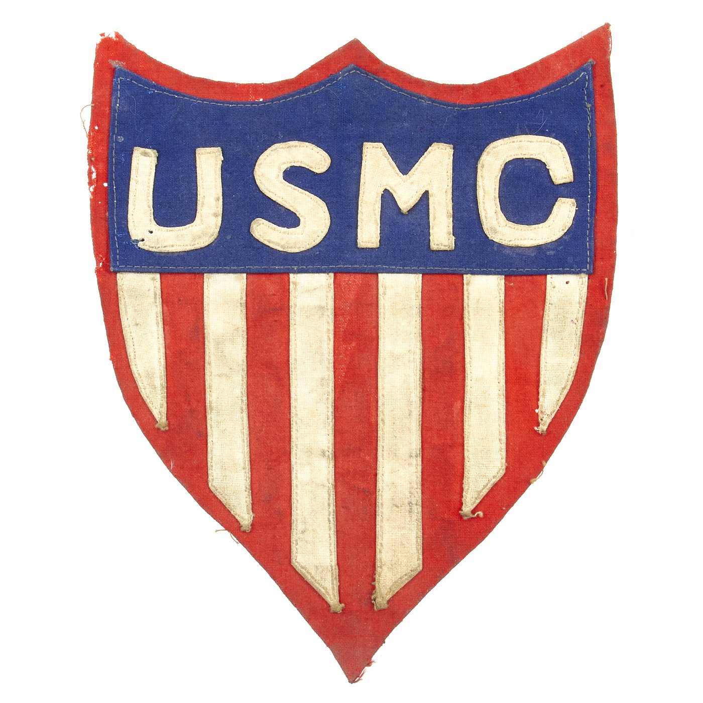 - USMC American Shield multi-piece leather shield patch. Measures 7" x 5.5".