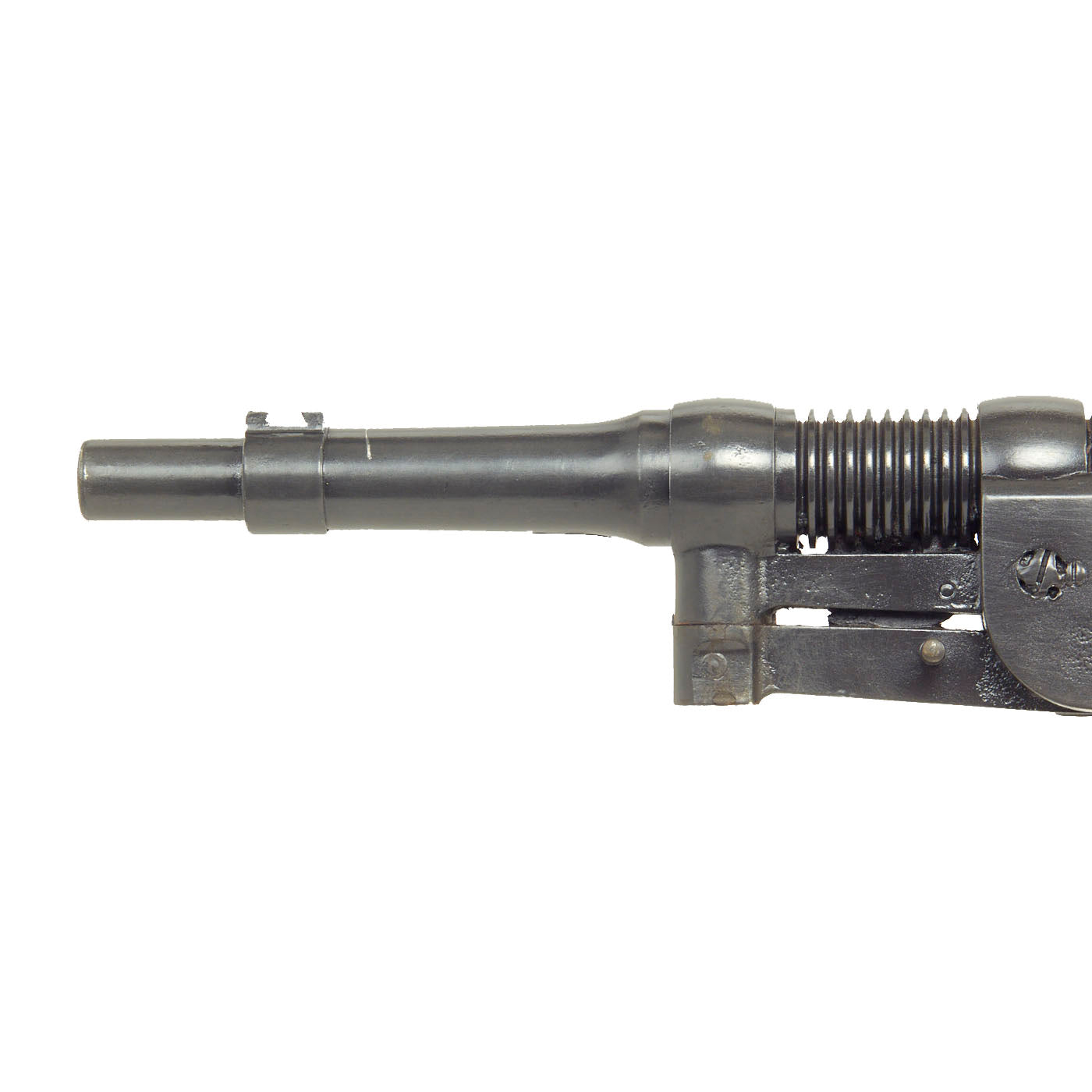 Overall condition is very good, though it definitely does show that it was displayed for a long time, which caused the exterior to exhibit light peppering overall. The rear sight and slider are still present, however the sight spring is broken, and the slider moves freely on the ladder.