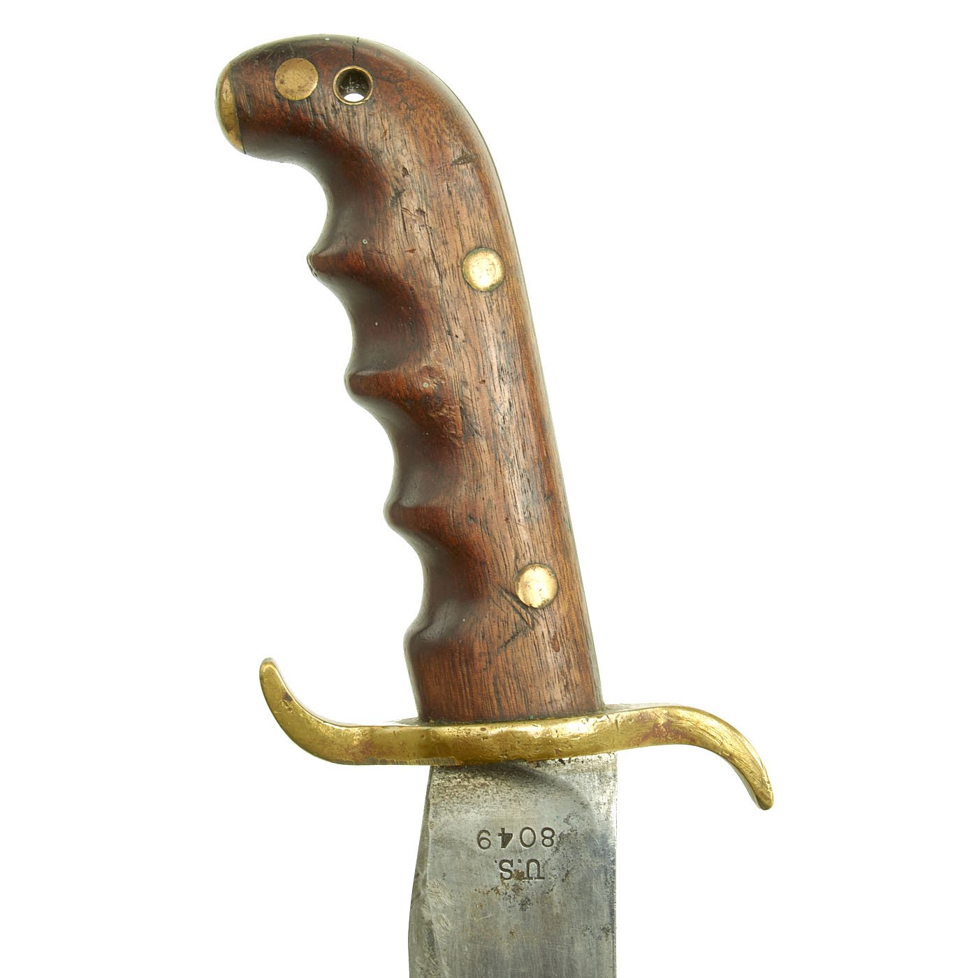 Original Item: Only One Available: This is a fantastic find, and we have only ever had a few of these in the past! The M-1904 Hospital Corps Knife was the first of the modern Springfield Armory made edged weapon to carry a serial number. Designed for use by the U. S. Army Medical Corps, over 40,000 Hospital Corps Knives were made at the Springfield Armory, Springfield, MA between 1904 and 1914. Like all of the "bolo" knives, these were heavy knives intended for use both as brush clearing devices, as well as weapons. It was designed to aid US soldiers with jungle foliage that they found themselves in with incursions into Cuba and the Philippines, where natives used similar sized machetes.