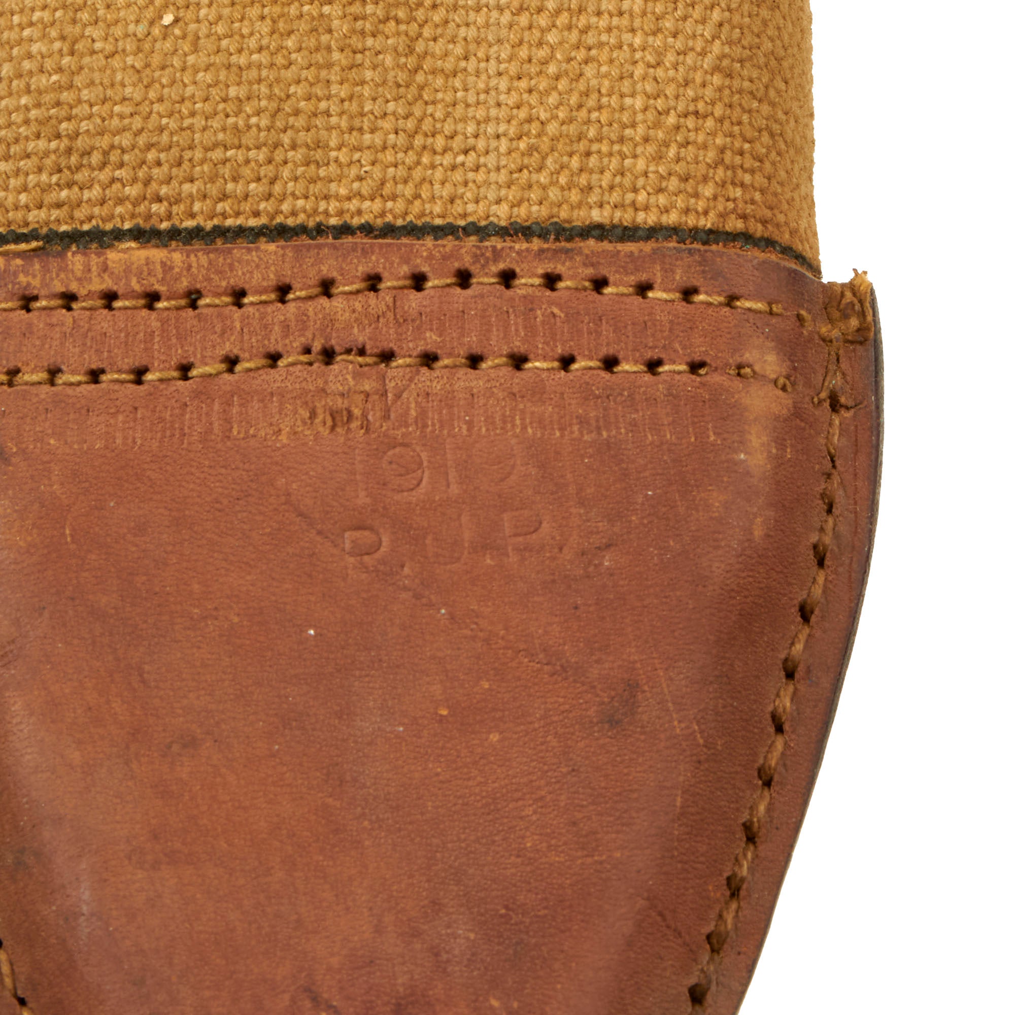 The leather tip of the canvas scabbard sleeve is clearly marked: