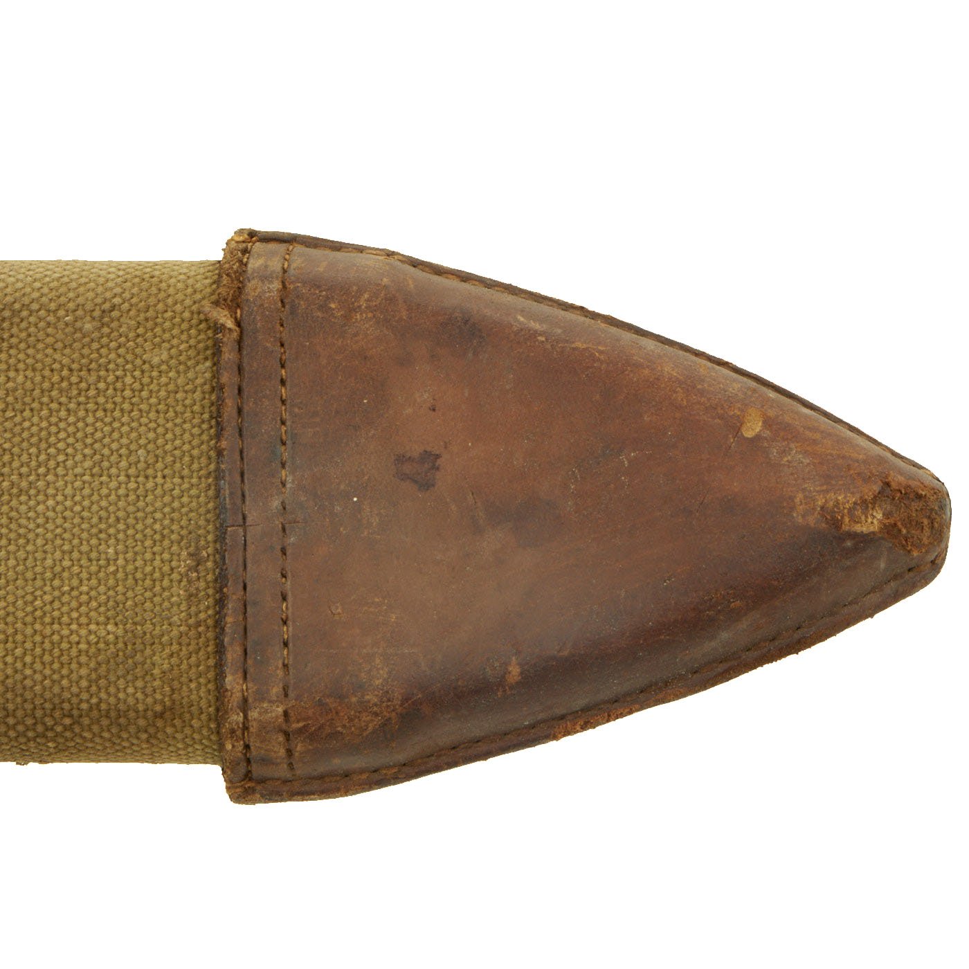 The leather tip of the canvas scabbard sleeve is faintly marked: