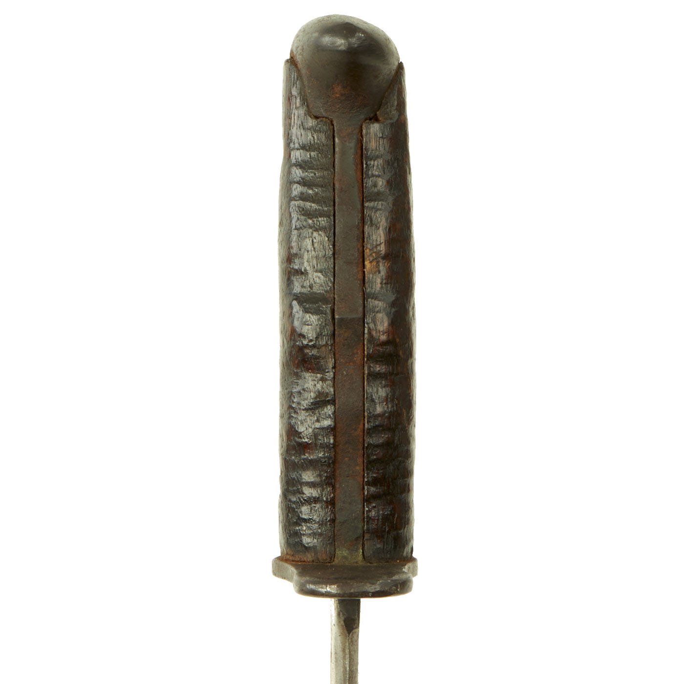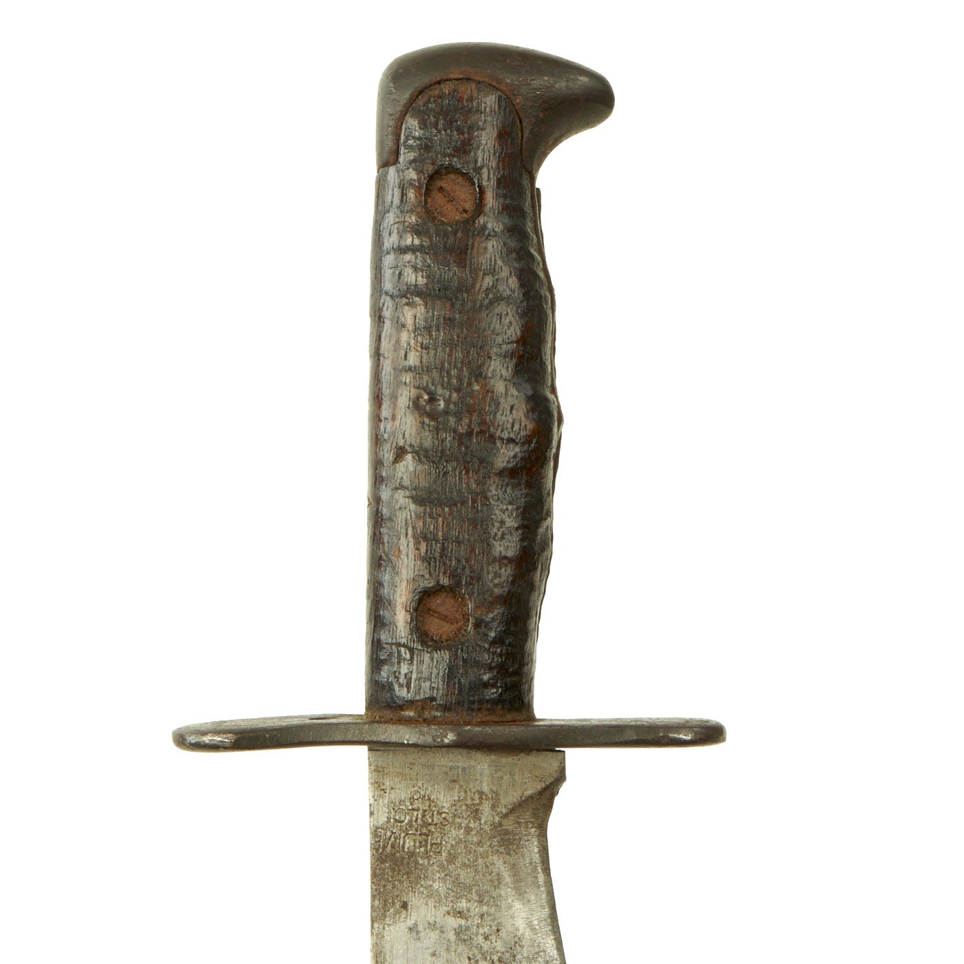 This model was a moderate simplification of the earlier 1910 Bolo made by Springfield Armory. The main difference is the lack of the catch mechanism on the scabbard and grip. It was manufactured by contractors such as Plumb and A.C. Co. The blade ricasso is faintly marked: