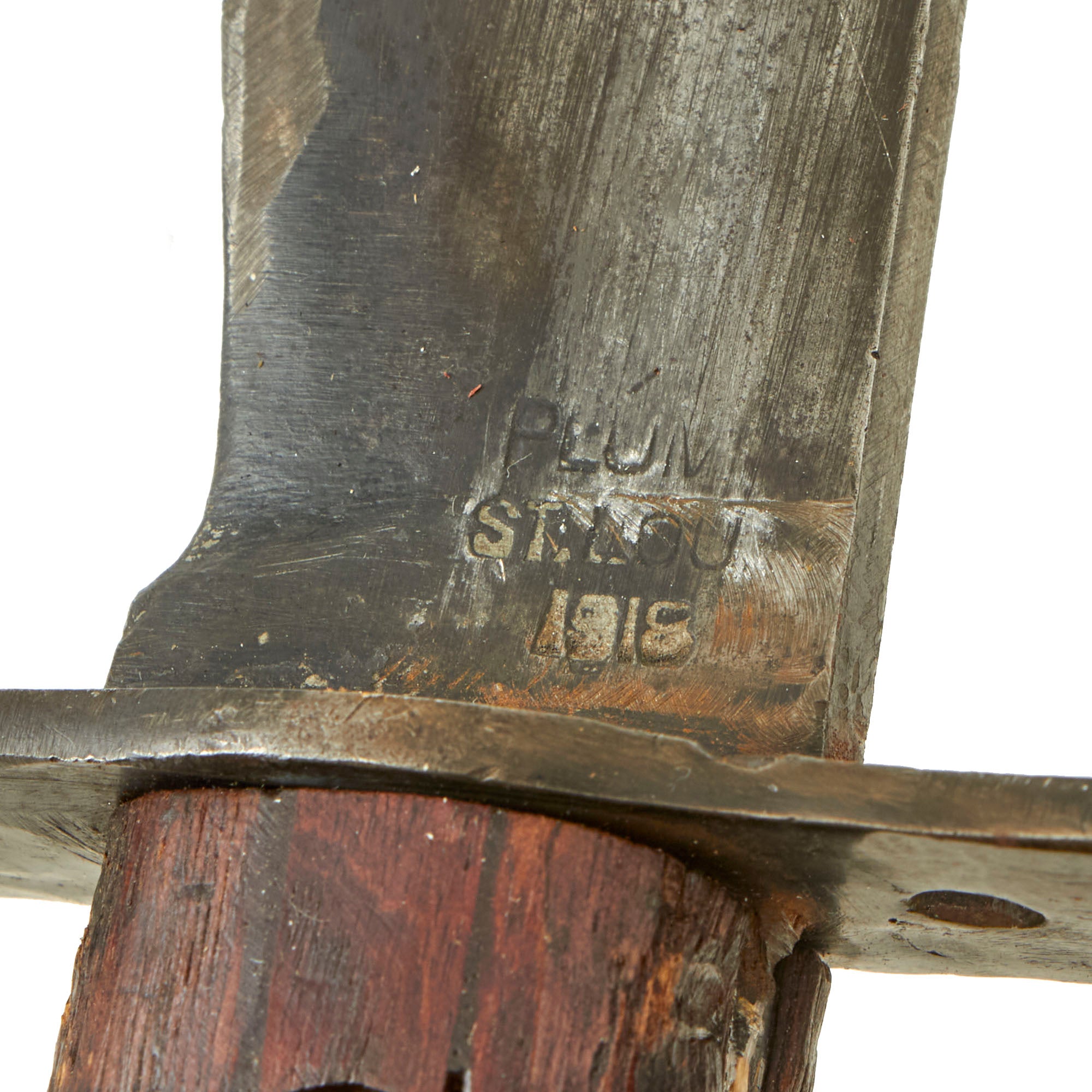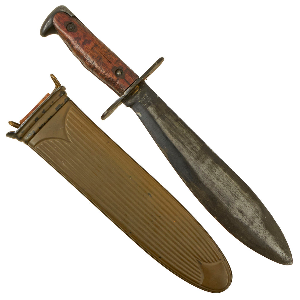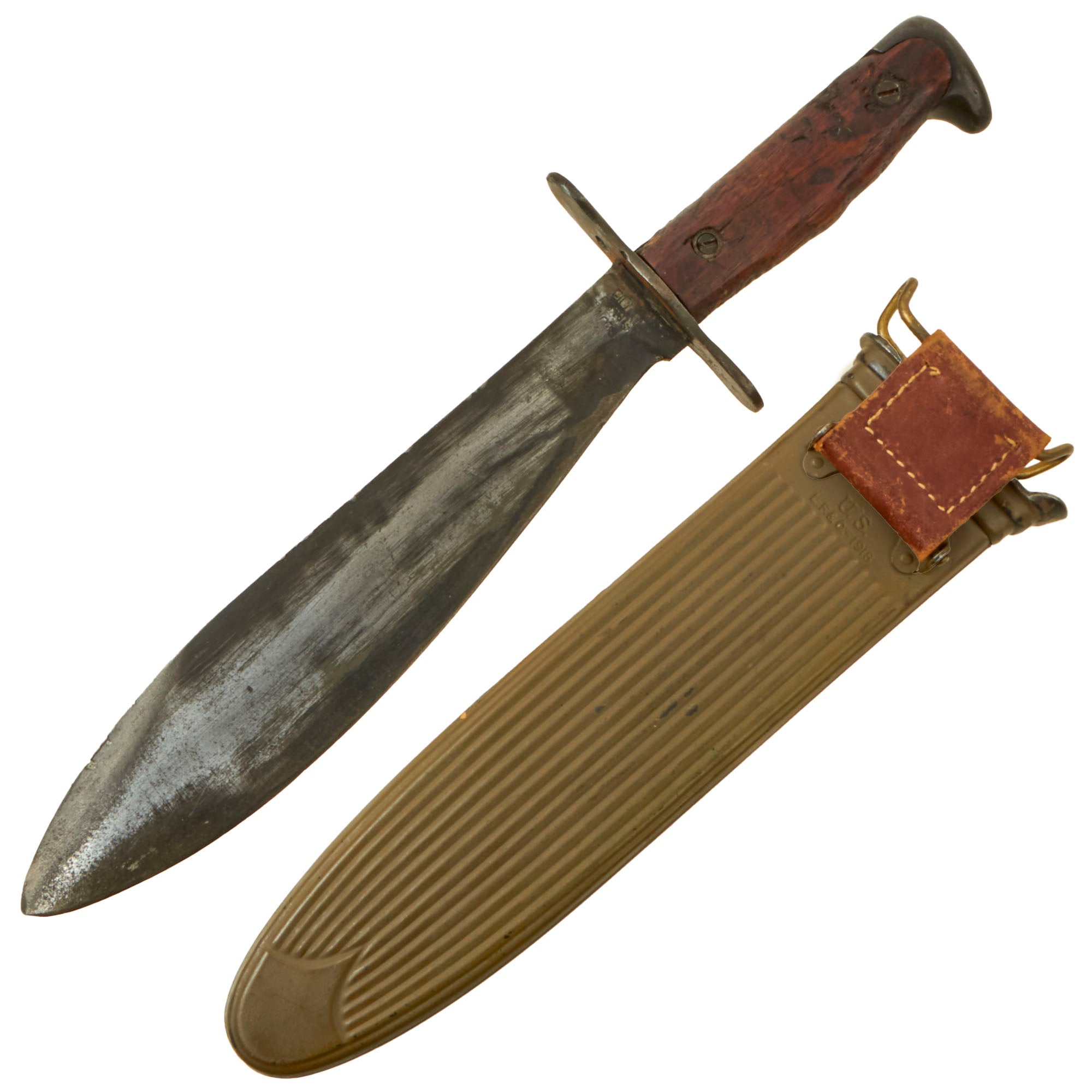 Original Item: Only One Available. This is a very nice Model 1917 C.T. Bolo knife, manufactured by Fayette R. Plumb Inc, whose main factory was in the Bridesburg region of Philadelphia, PA. They had another factory, just constructed, in St. Louis as well, and 1917 bolos were produced at both.