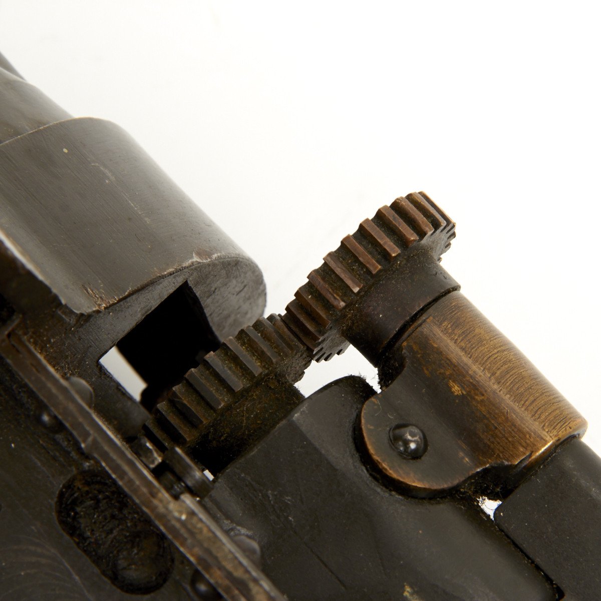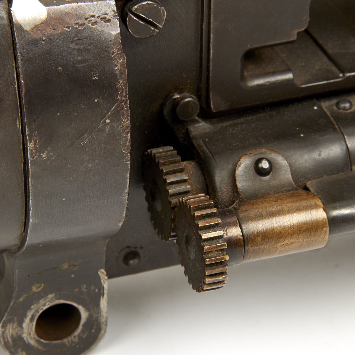 Obsoleted in 1931 most were officially destroyed during the scrap metal drives of WW2. Our example is, as all others, electrically fired and still retains much (all?) of the synchronization assembly which prevented rounds from striking the plane's propeller.