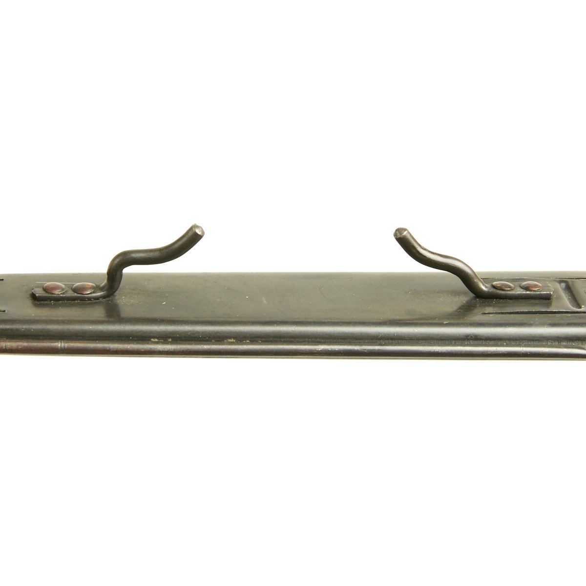 The steel scabbard is also in excellent condition and comes complete with both belt prongs fully intact (typically broken off). The scabbard is clearly marked on the rear, near the throat: