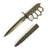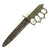 As originally issued, the knives were entirely blackened; both the blades and the brass knuckle hilts. These knives remained in use with the US military, classified as limited standard (secondary issue) through January of 1945, when the knives were officially classified as obsolete. As originally issued, the knives were carried in a blued sheet steel scabbard that was typically maker marked, and was equipped with a pair of wire tabs that were intended to engage the US pistol web belt in use at that time. Many of the knives issued during World War II ended up in substitute leather scabbards of various designs and styles, many of which were "theater made".