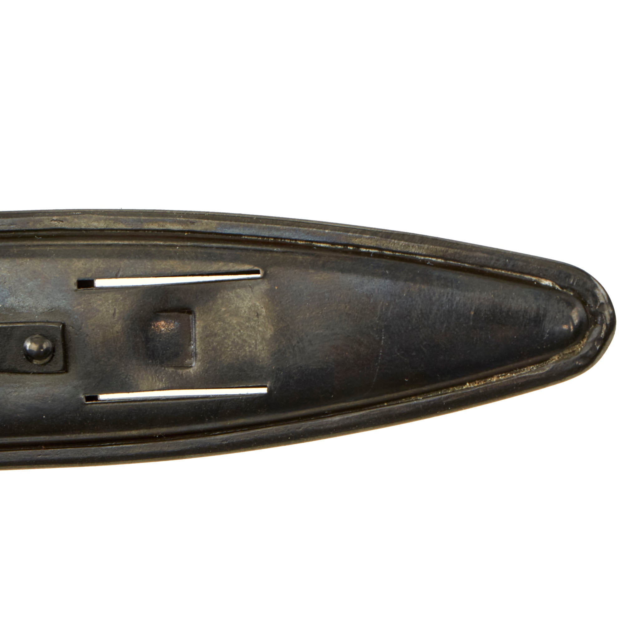 Overall this is a very nice example of the very popular and collectible World War I era US trench knife. These brass D guard knuckle knives always make a great centerpiece to any military knife display and certainly draw attention due to their size and fierce appearance. The reproduction steel scabbard is in good condition and makes for a good display with this original knife. Ready for further research and display.