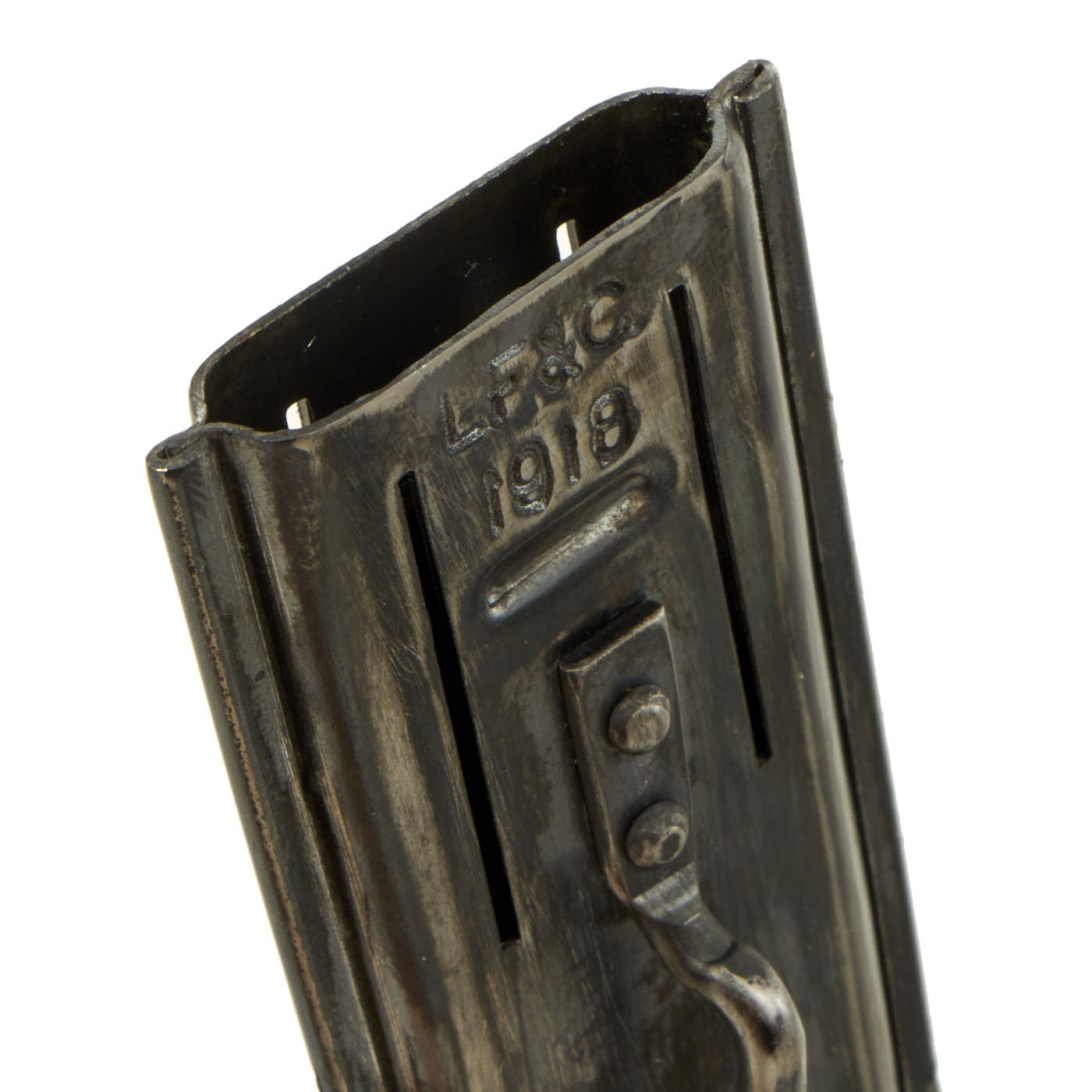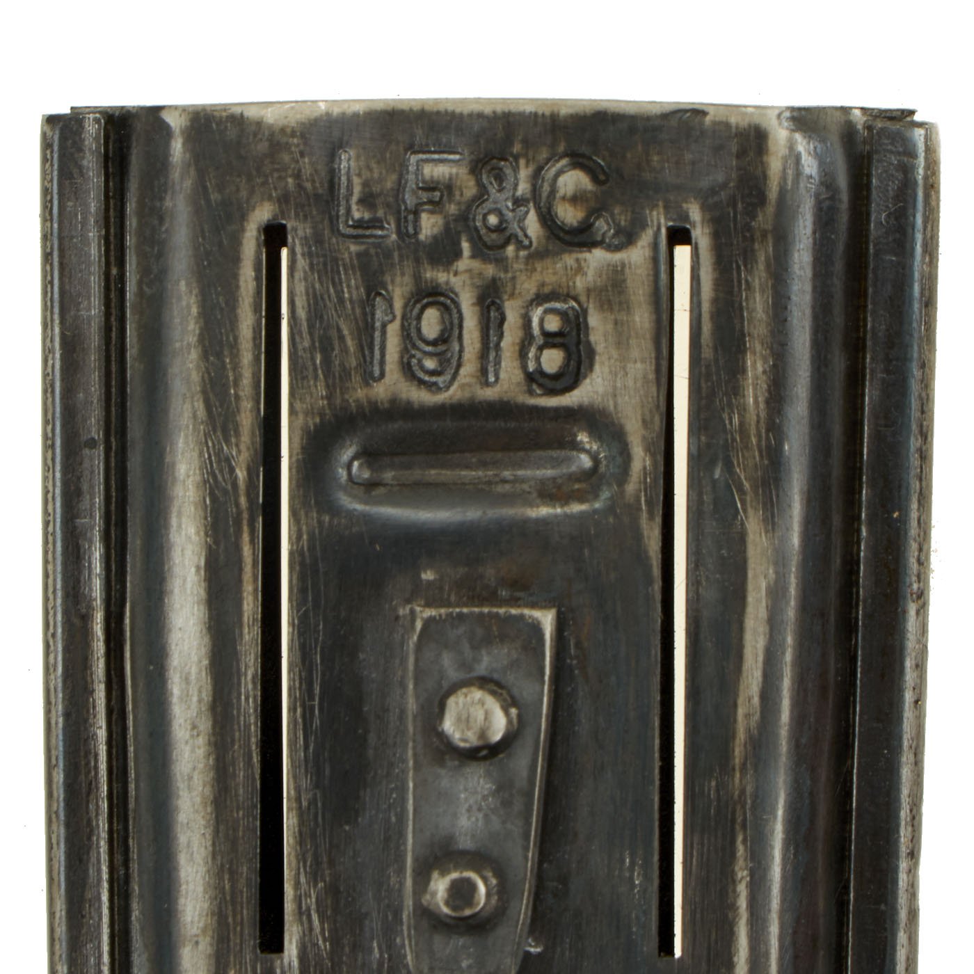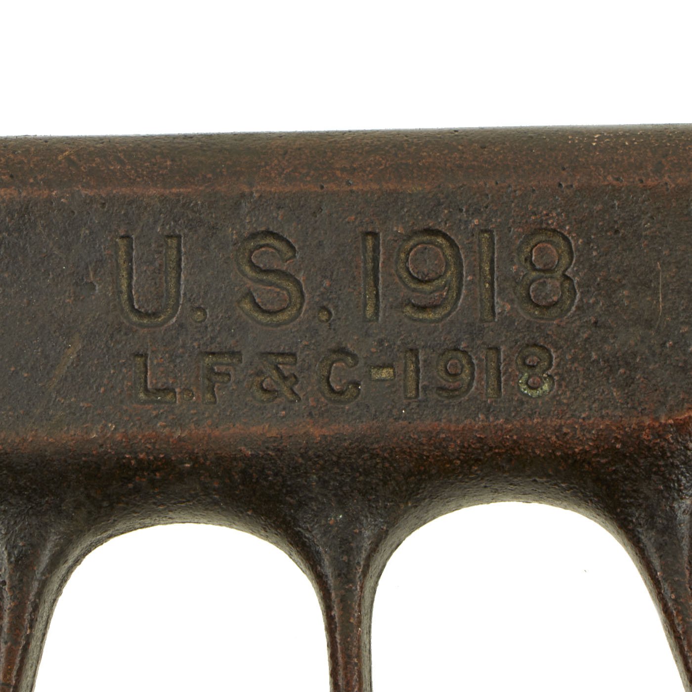 Original Item: Only One Available. This example of the U.S. Model 1918 MkI Trench Knife is offered in very good condition. The knife was produced by the Landers, Frary & Clark company of New Britain, CT. L.F. & C. was established in 1865 and produced a wide variety of housewares, cutlery and event appliances. Many of their products were marketed under the trade name "Universal". The products of L.F. & C. included everything from scales, mousetraps and ice skates to electric ranges and toasters. L.F. & C. also produced the triangular blade US M-1917 Trench Knife as well. The assets of the L.F. & C. company were purchased by General Electric in 1965. This Mark I Trench Knife is clearly marked in two lines in the brass grip: