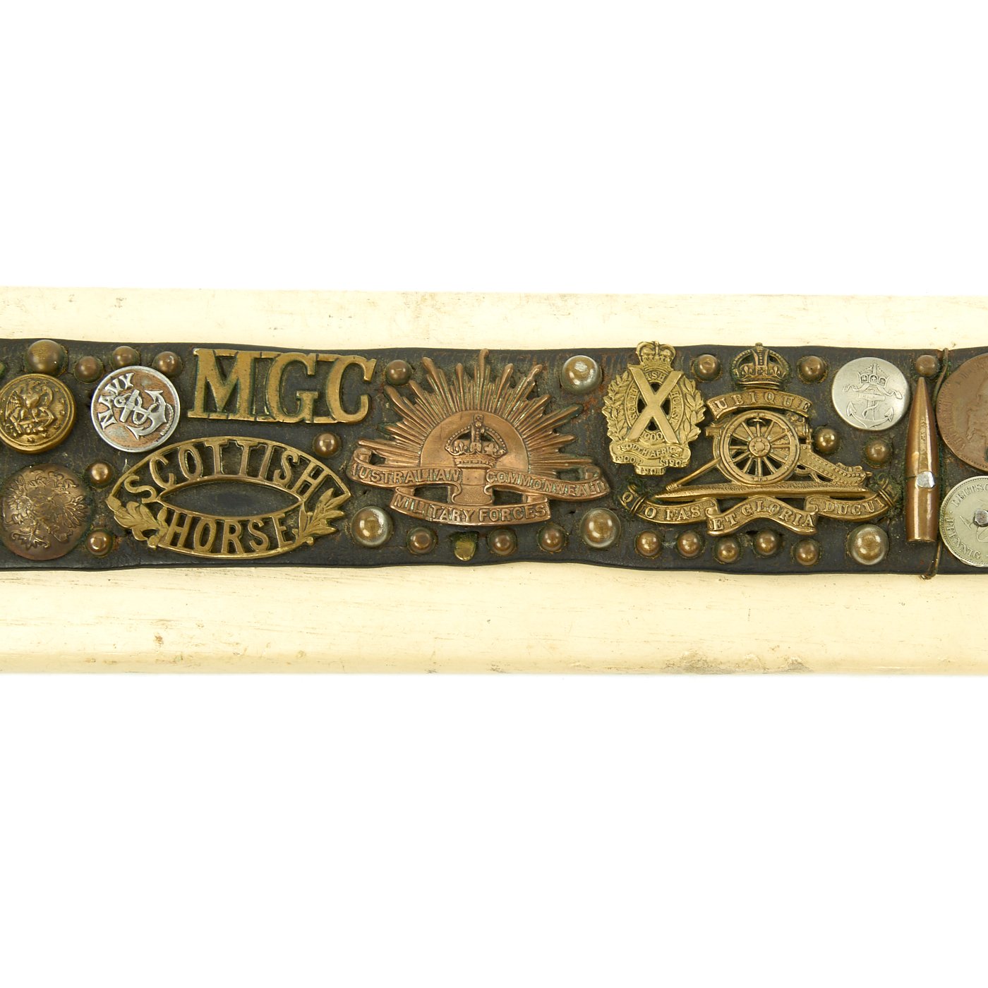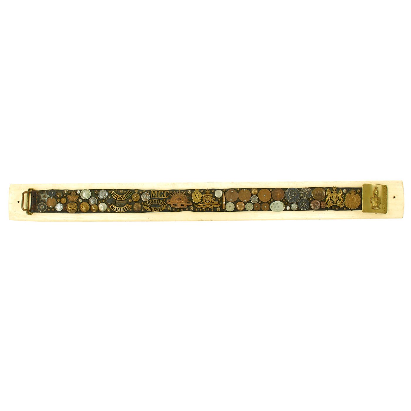 "Souvenir Belt": this description is apt for many of the belts that are in circulation today. The souvenir belt would involve a German infantryman's belt being decorated with buttons and tabs from troops BOTH Allied and CENTRAL Powers and kept as a remembrance of The War.