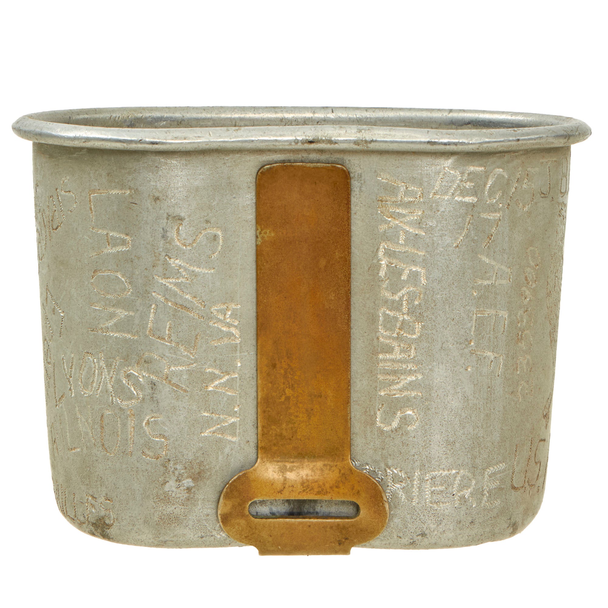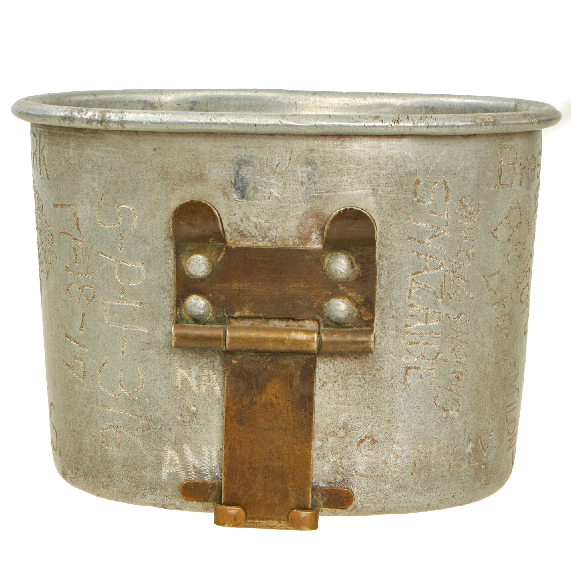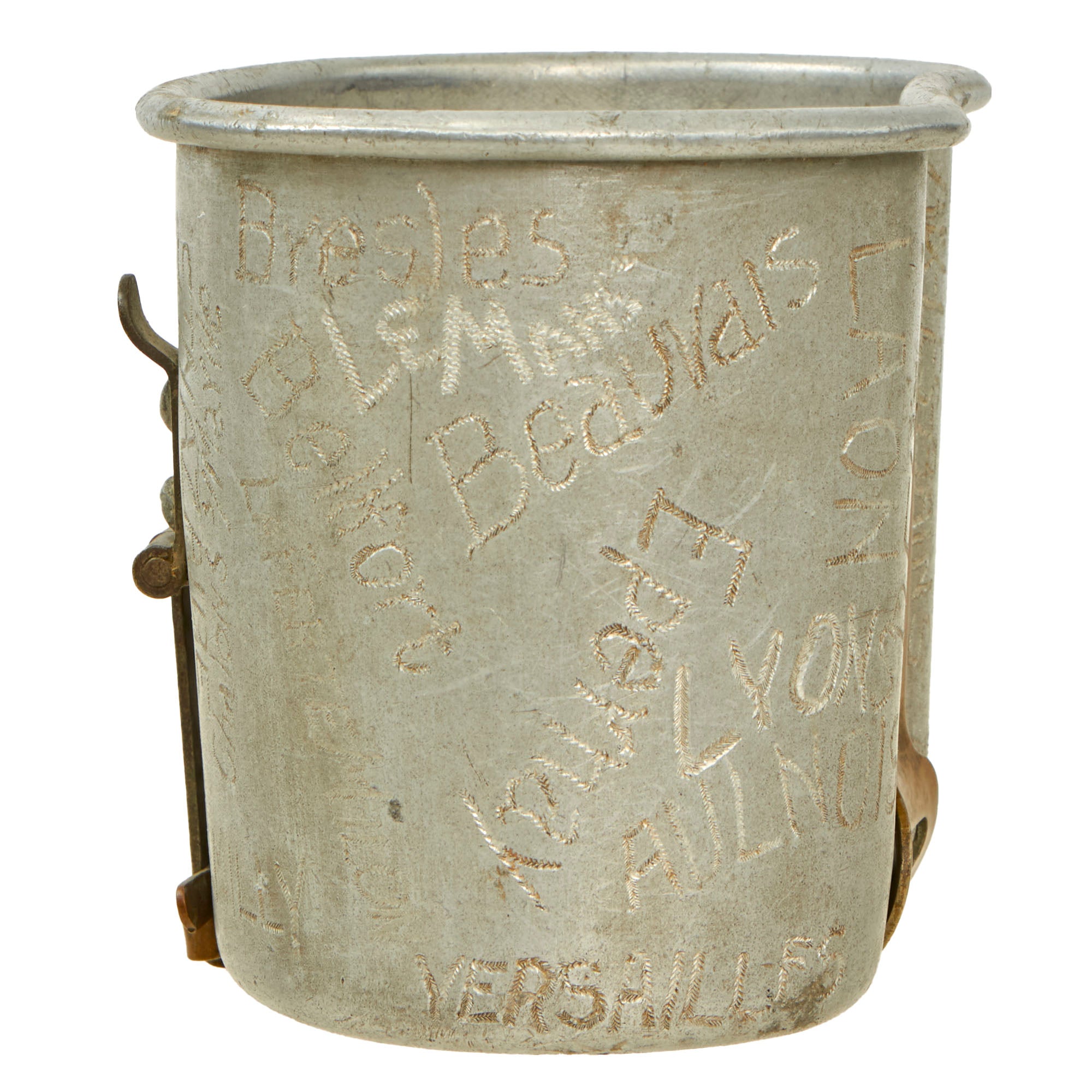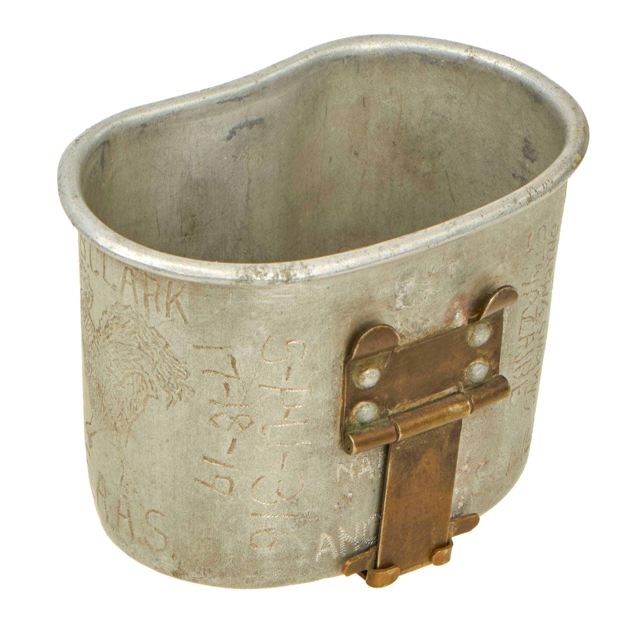 This is a tremendous canteen cup that requires a great deal more research. Clark’s entire travel history during WWI is engraved onto this cup, a fantastic piece with a great amount of character. Comes ready for further research and display!