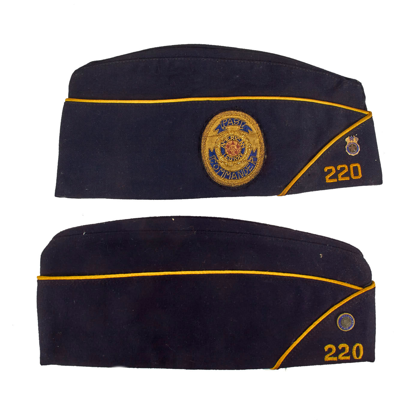 - x3 “Overseas Caps”: The caps are (2) New York American Legion caps one being for a Past Commander, both are for Post 220. The 3rd cap appears to be a French Army Horizon Blue garrison cap.