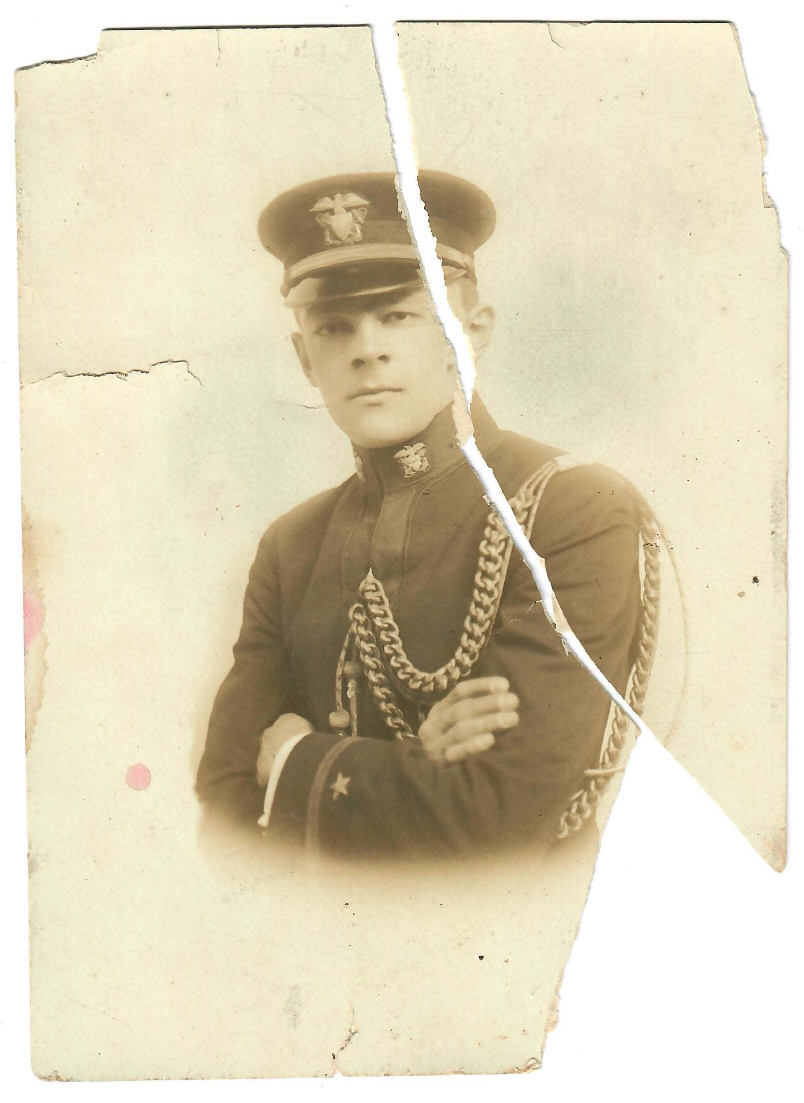 The included photograph is of a WWI era US Naval Aviator and without any markings on it, we can only assume that it is of Mr. Bergman. The picture is clear and full of detail, but unfortunately it is torn into 2 pieces and does have minor tearing on the left side. Once in a frame it would be hard to notice these defects.