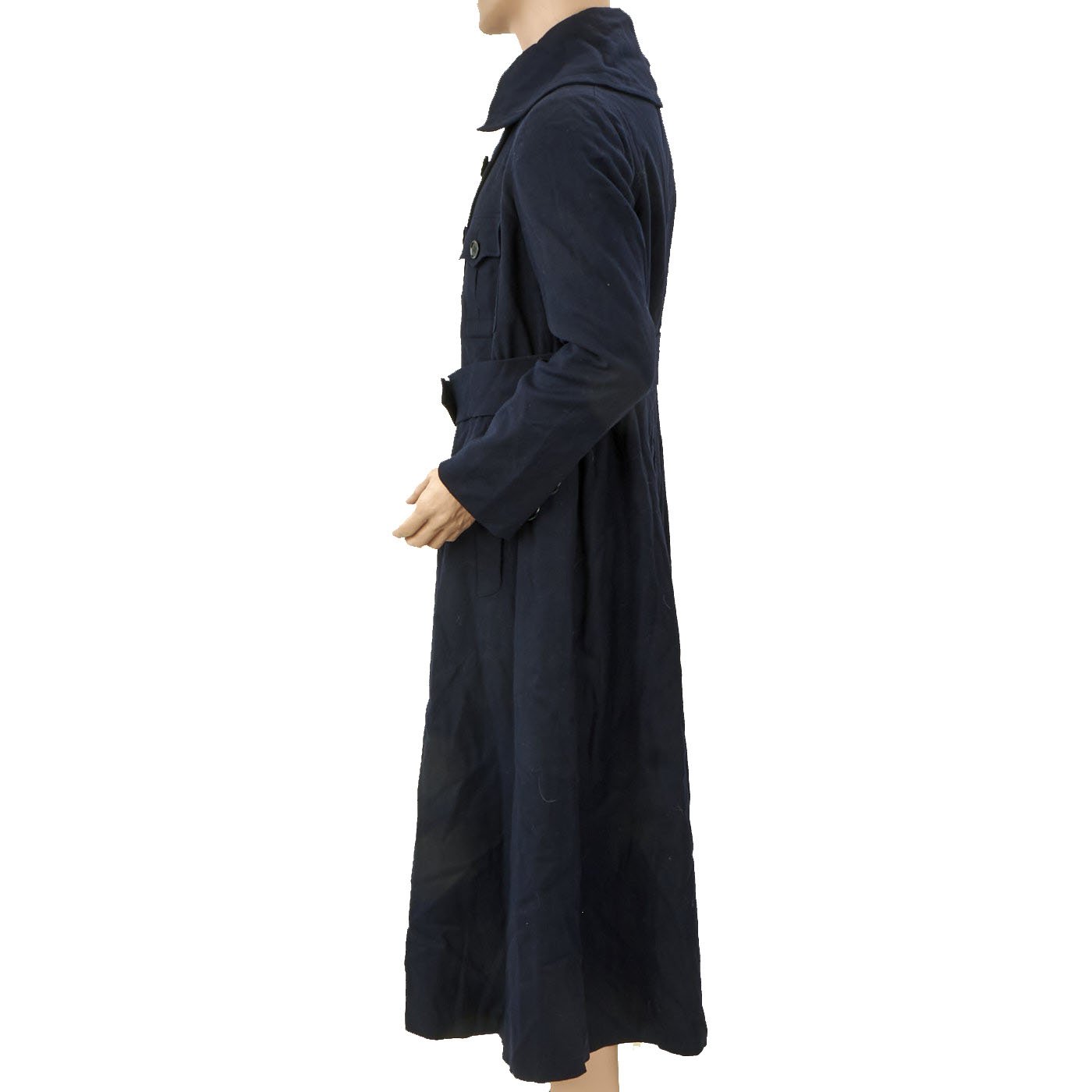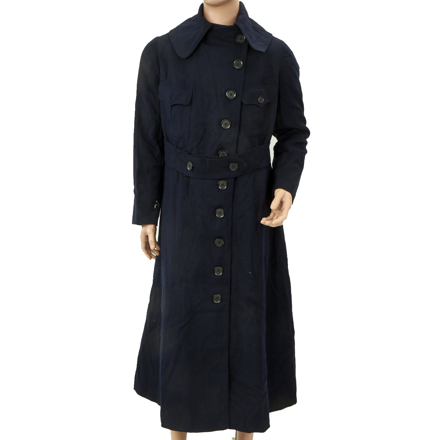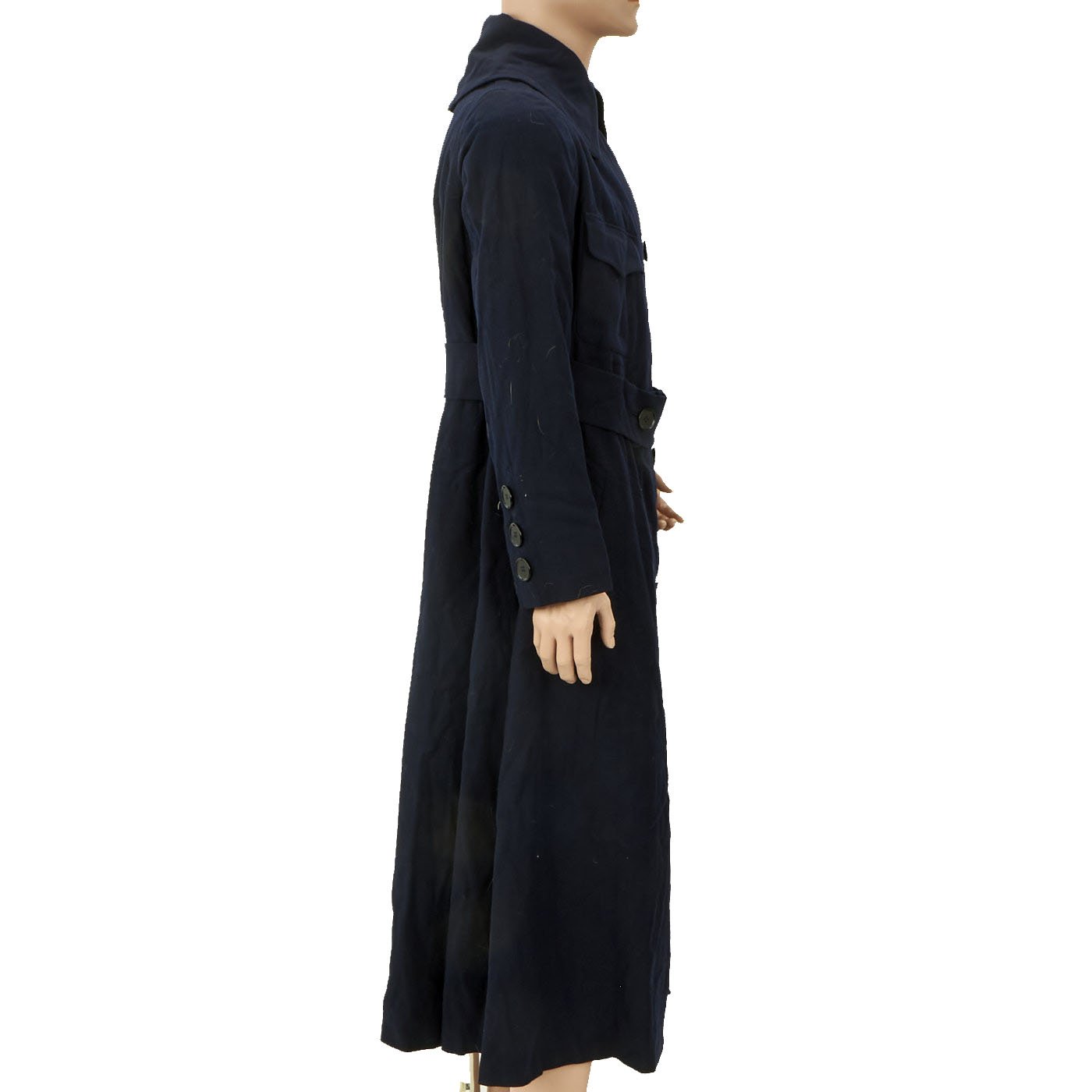 - Long blue wool overcoat, offered in excellent condition with tailor's label. (Size 36)