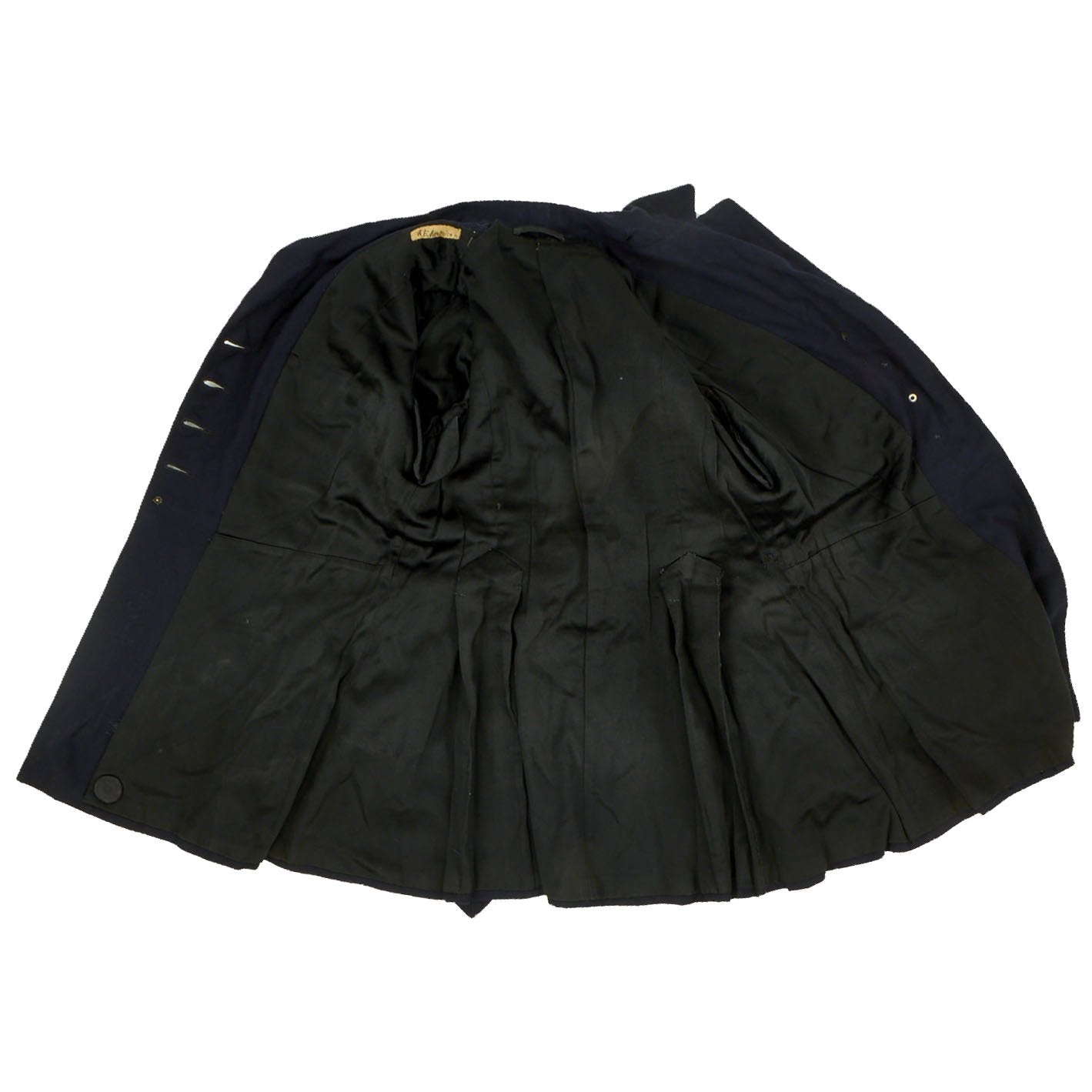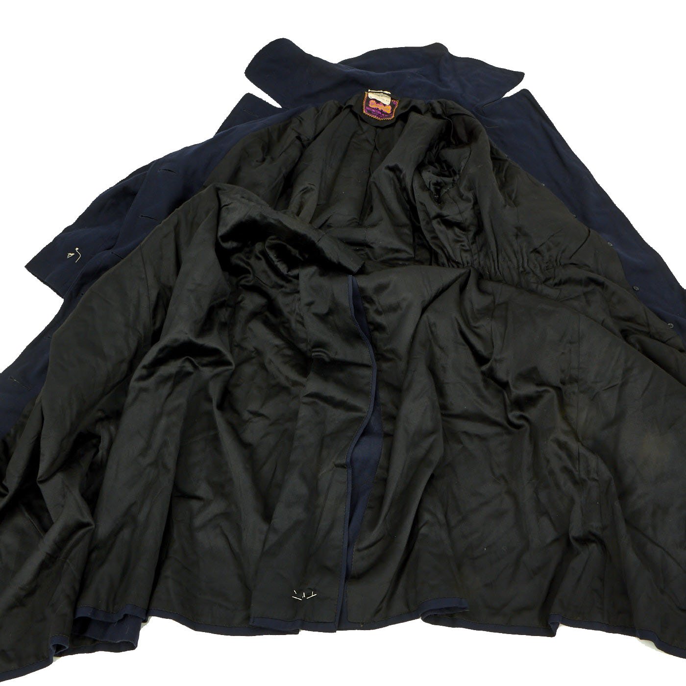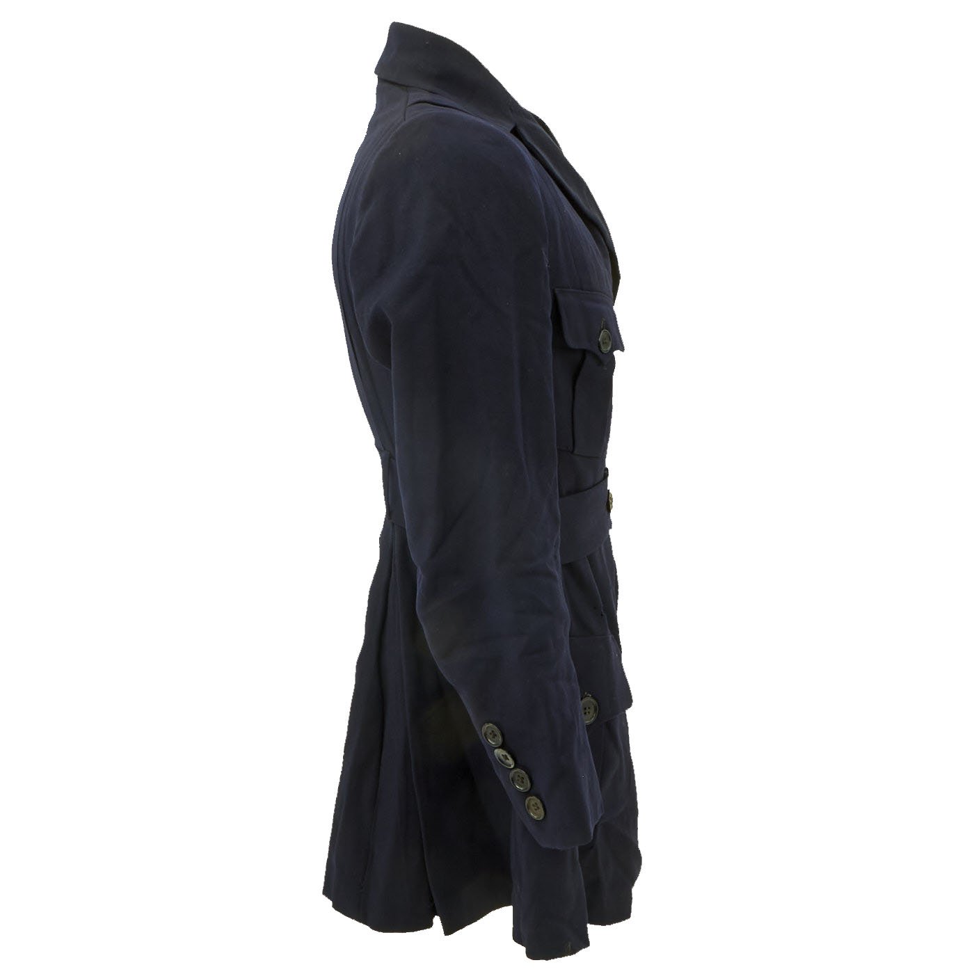 - Long blue wool overcoat, offered in excellent condition with tailor's label. (Size 36)
