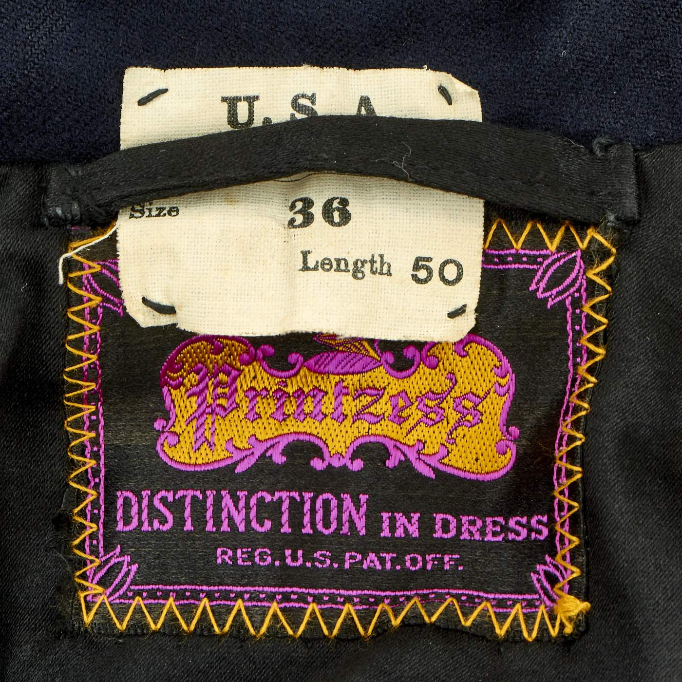 - Short blue wool jacket, offered in excellent condition wit name tag in collar. (Size 36)