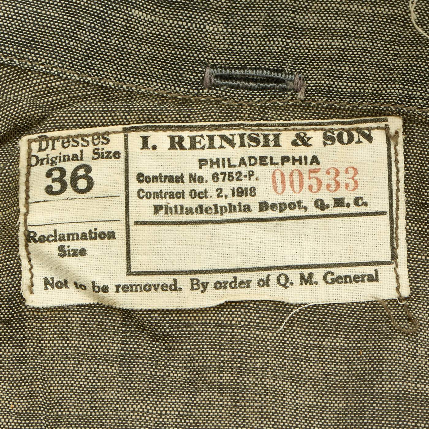 - Grey cotton Nurse's dress with Philadelphia depot label, offered in very good condition with areas of soiling. (Size 36)