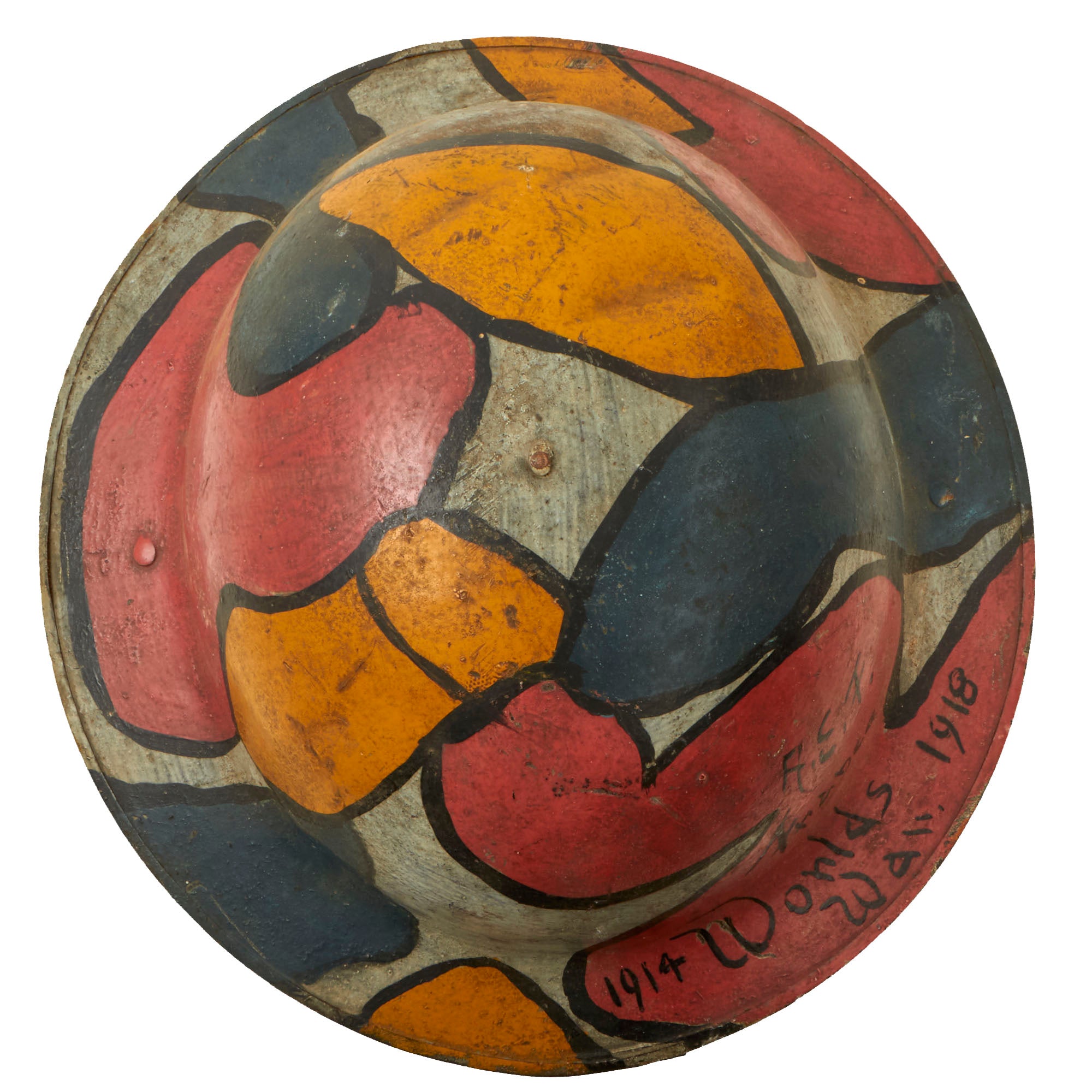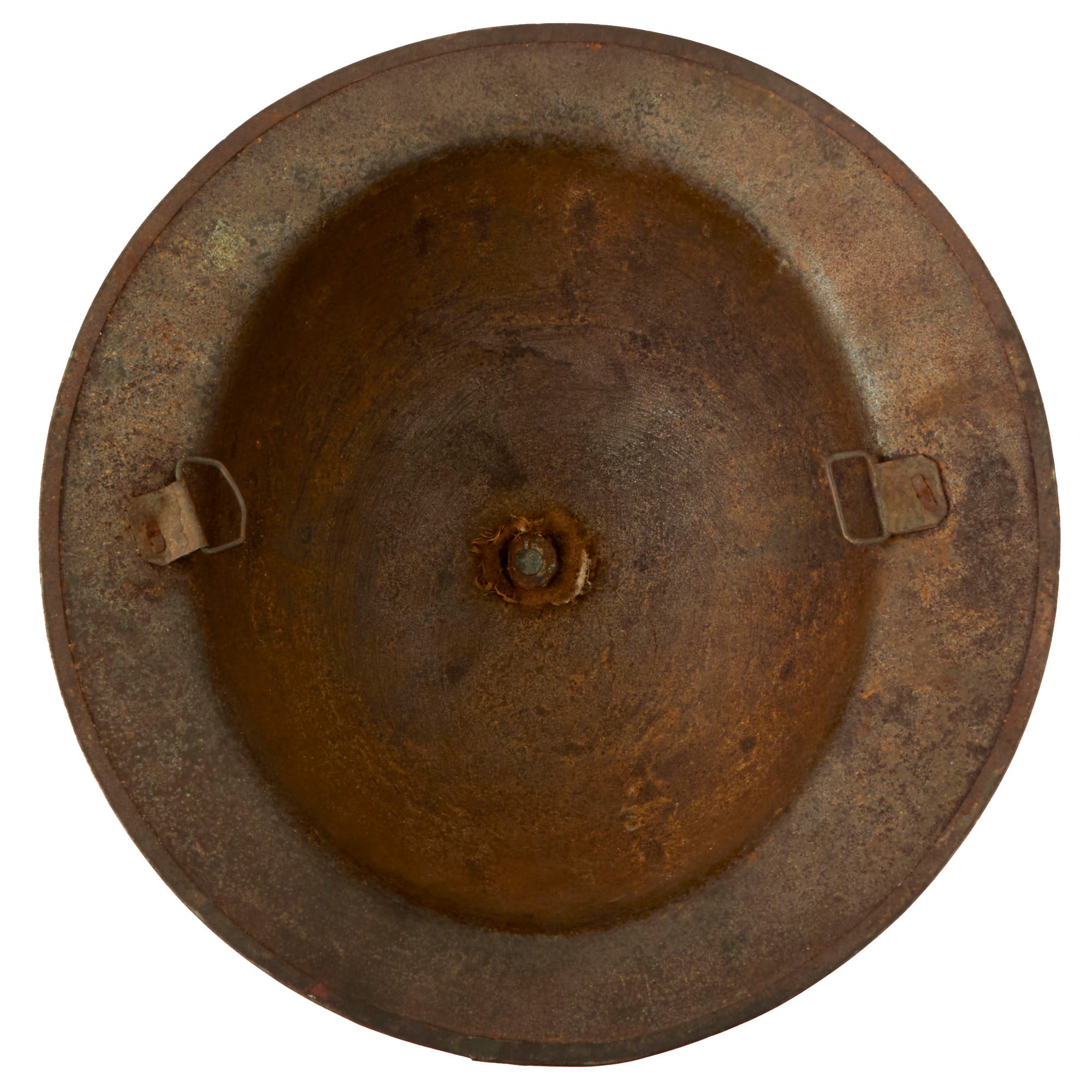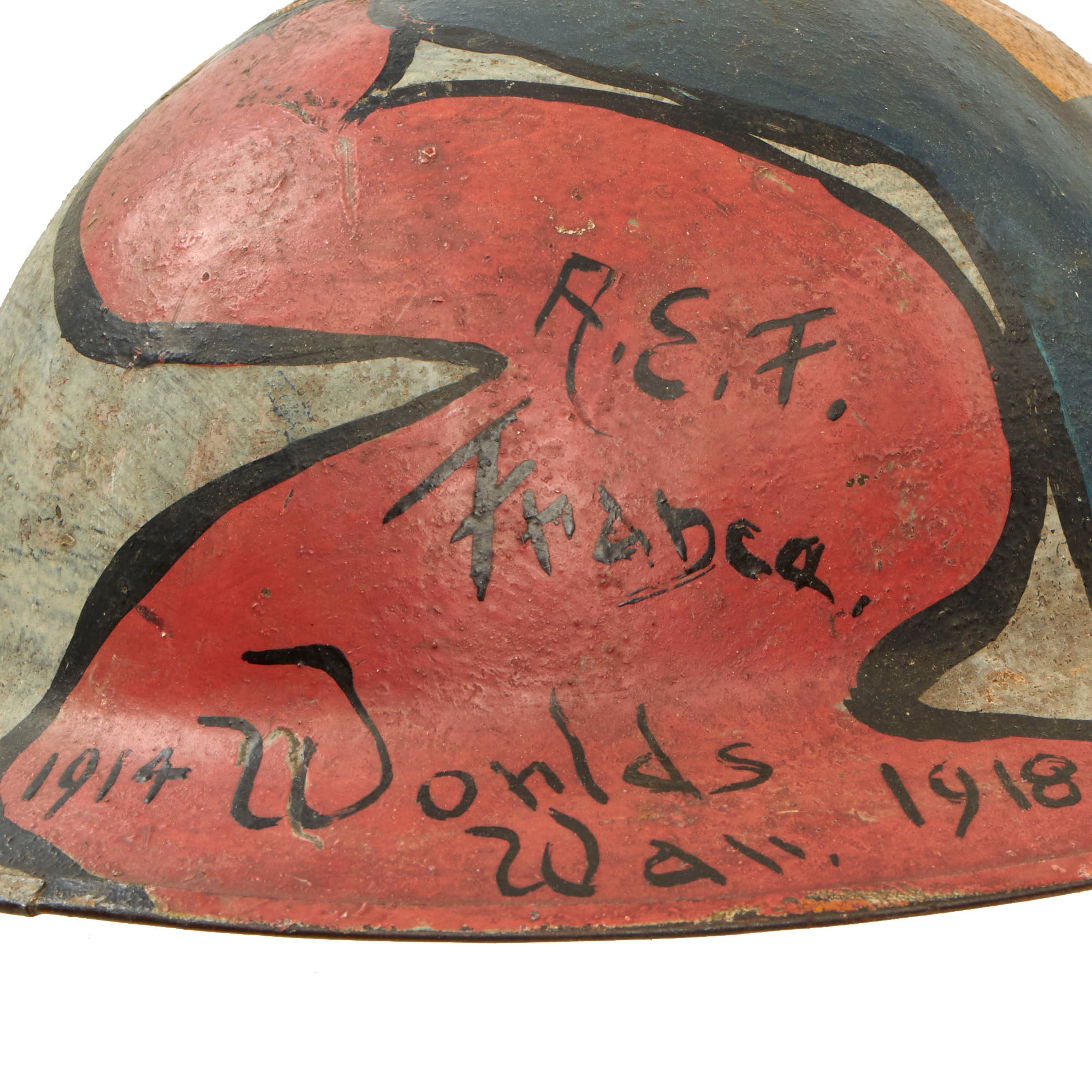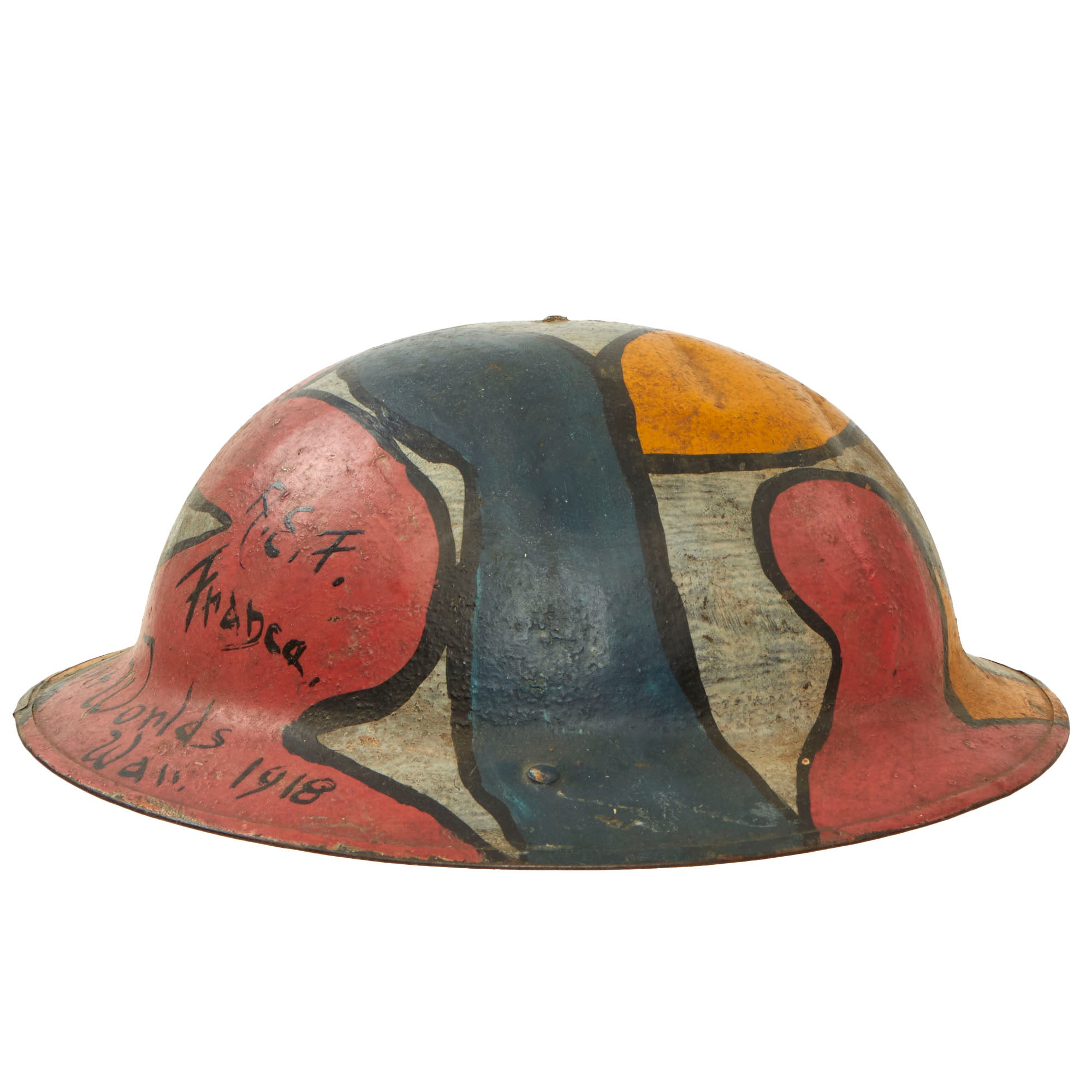 Original Item: Only One Available. This is a lovely example of the scarce WWI British MkI Brodie helmet, which was also the same type that was issued to American forces in the beginning of the US involvement during The Great War. The shell features vibrant panel camouflage paint that was a very popular paint scheme used by all armies that fought during WWI.