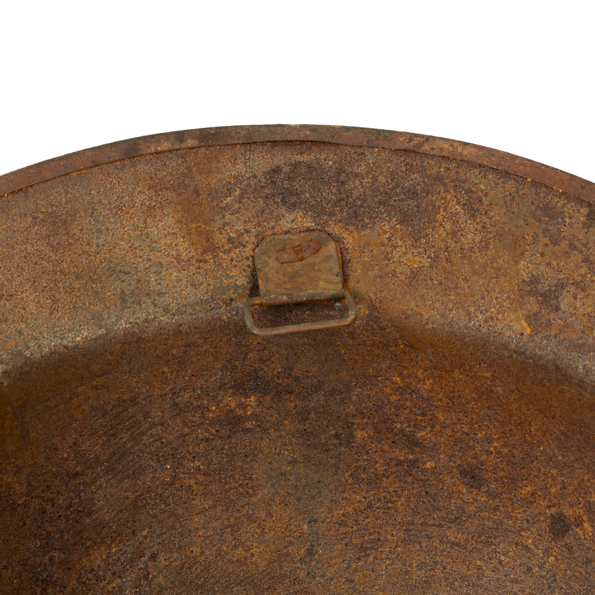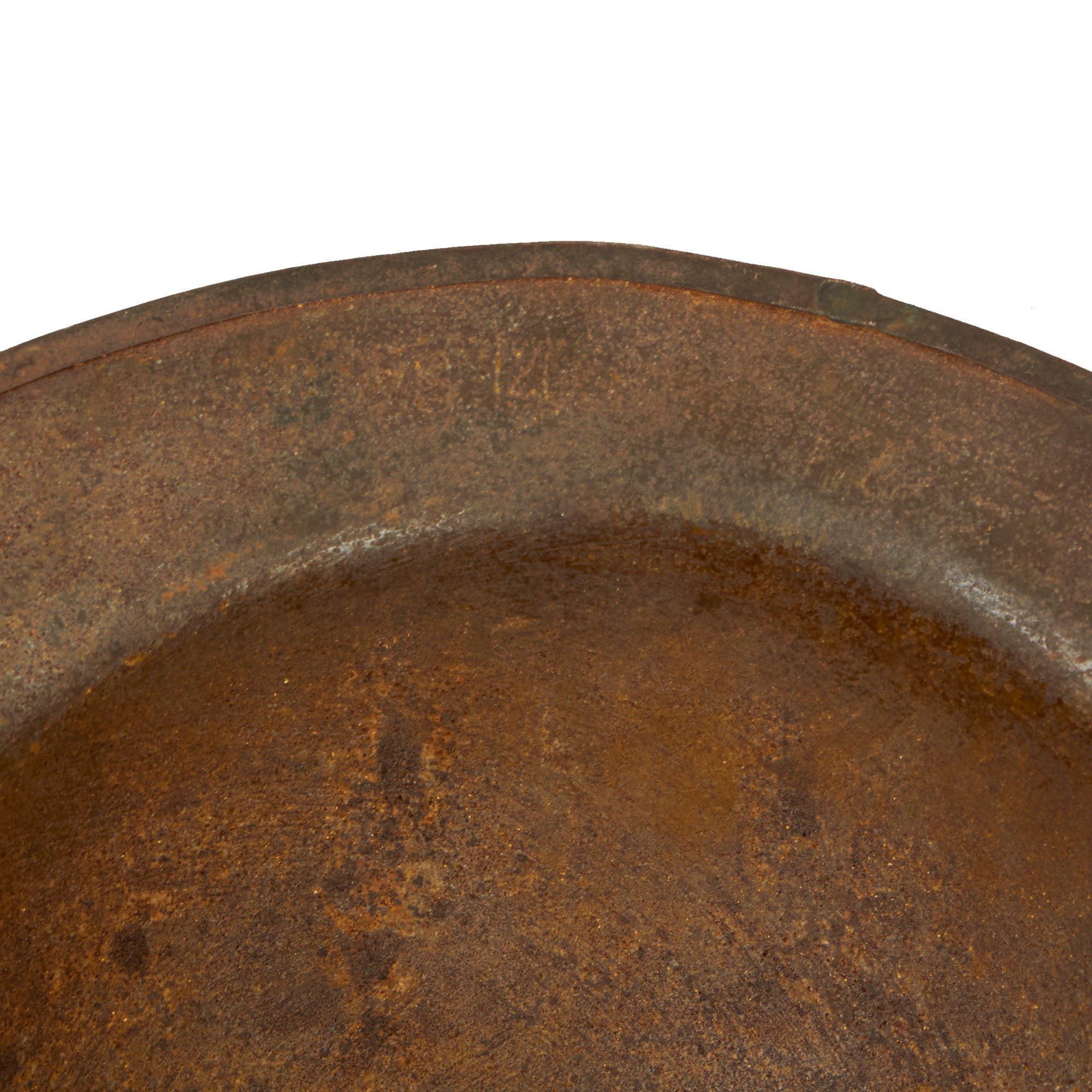 M1917 helmet liners typically show a paper label at the crown and the dome rivet head. The liner is set up as on the British versions, with an oilcloth band and net configuration, attached to a leather strap, riveted to the shell. The chinstrap is leather with steel buckle.
