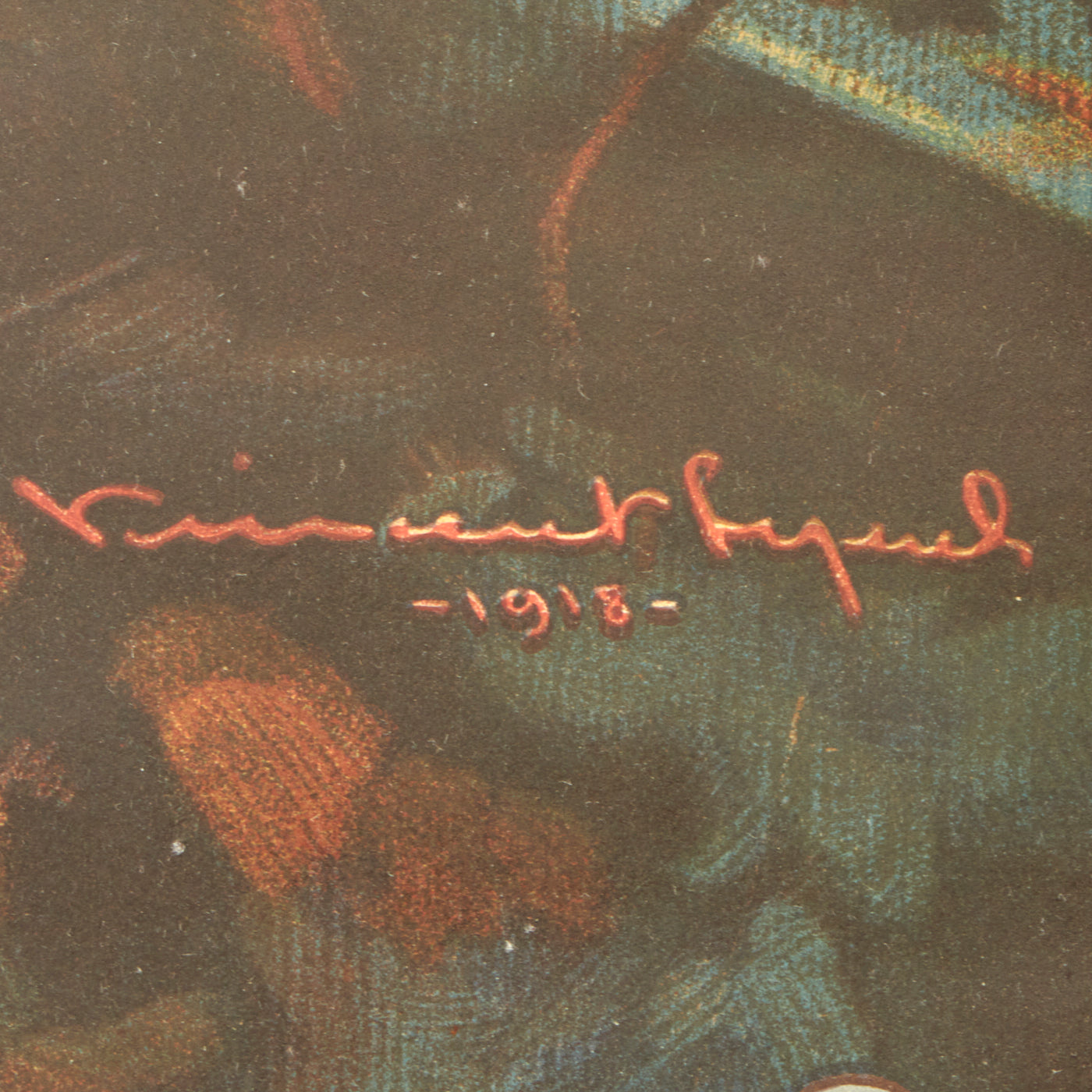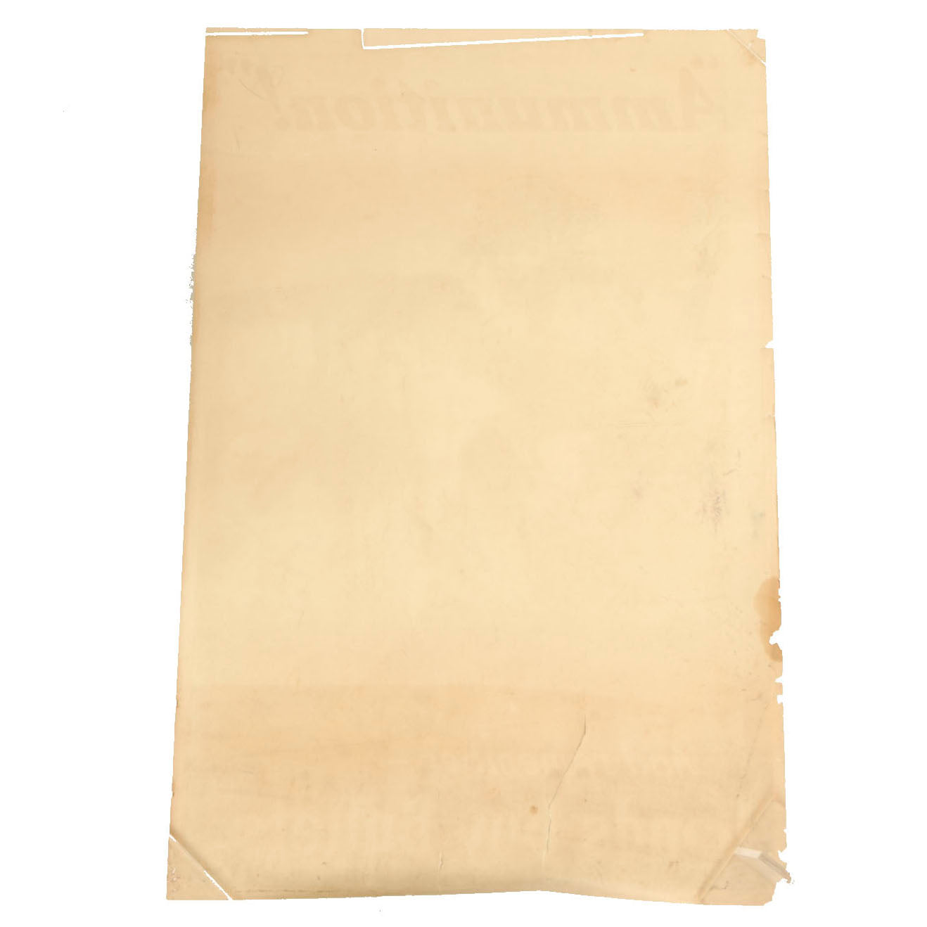 Original Item: Only One Available. Now this is an absolutely beautiful WWI poster! The poster features the text "Ammunition!" And Remember - Bonds Buy Bullets! Ande was designed by artist Vincent Lynel in 1918. This color lithograph measures 30” x 20”. The poster shows an American “Doughboy” soldier surrounded by empty ammunition crates manning a machine gun in the heat of battle, reaching out asking for more ammunition. Beans, bullets and bandaids were and still are the most important items on the battlefield. Without food you would have no strength to fight the enemy, without ammunition you would be unable to engage the enemy at a distance and without medical supplies wounds would go untreated. It was important during the Great War to send images such as this one all across the homefront. Tools like this were needed to remind the American people the importance of making personal self sacrifices for the fighting men overseas.