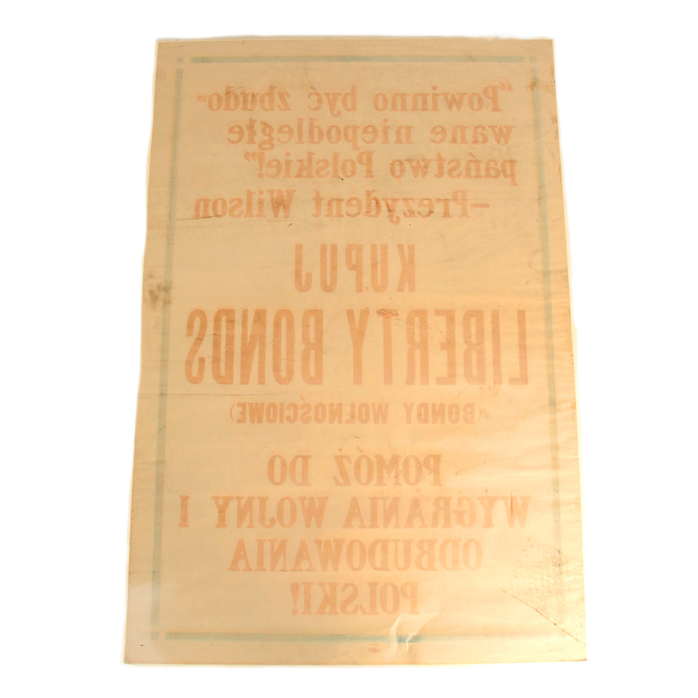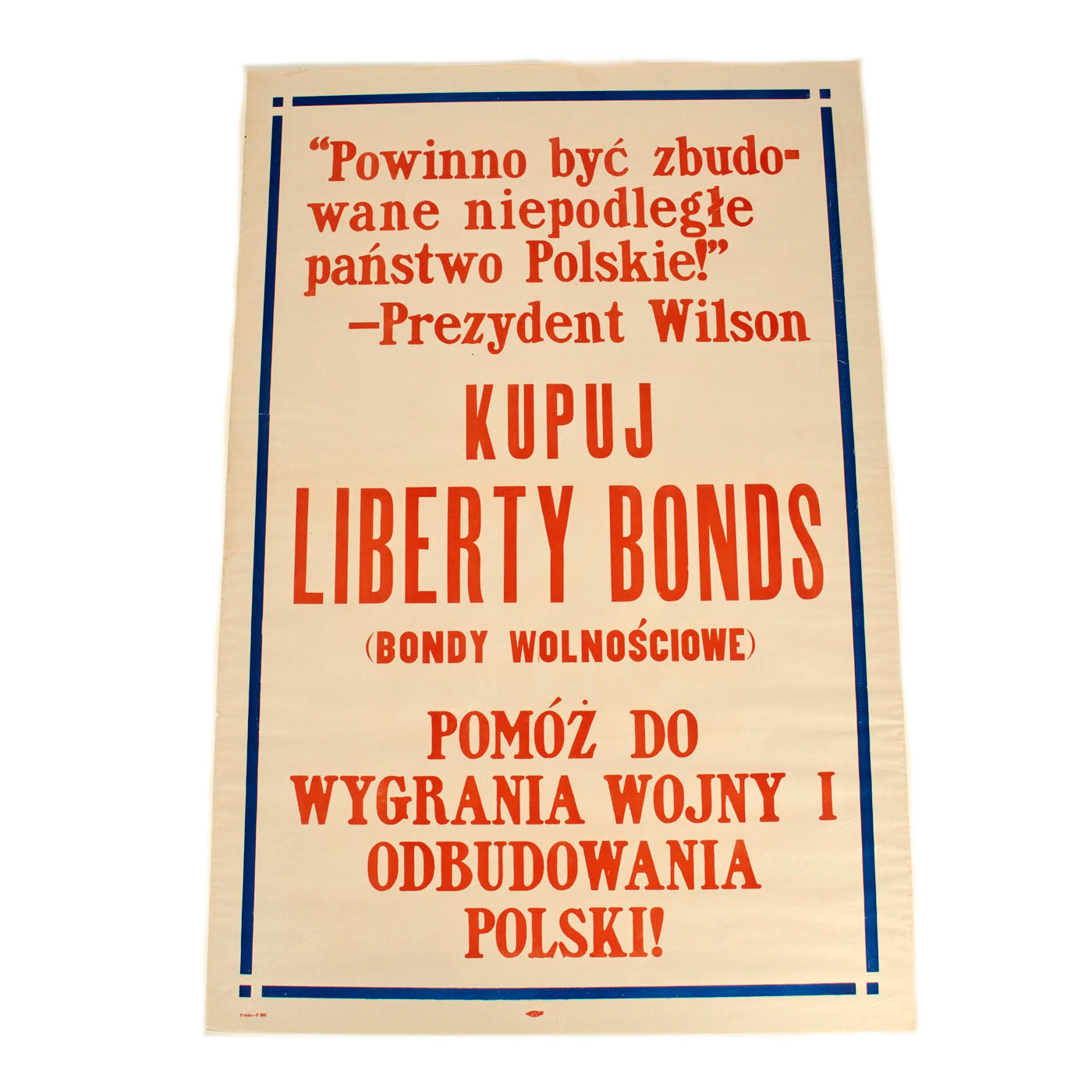 This poster, which is entirely printed in Polish, was directed to Polish-Americans to help encourage the purchase of Liberty Bonds to help the reconstruction of Poland.