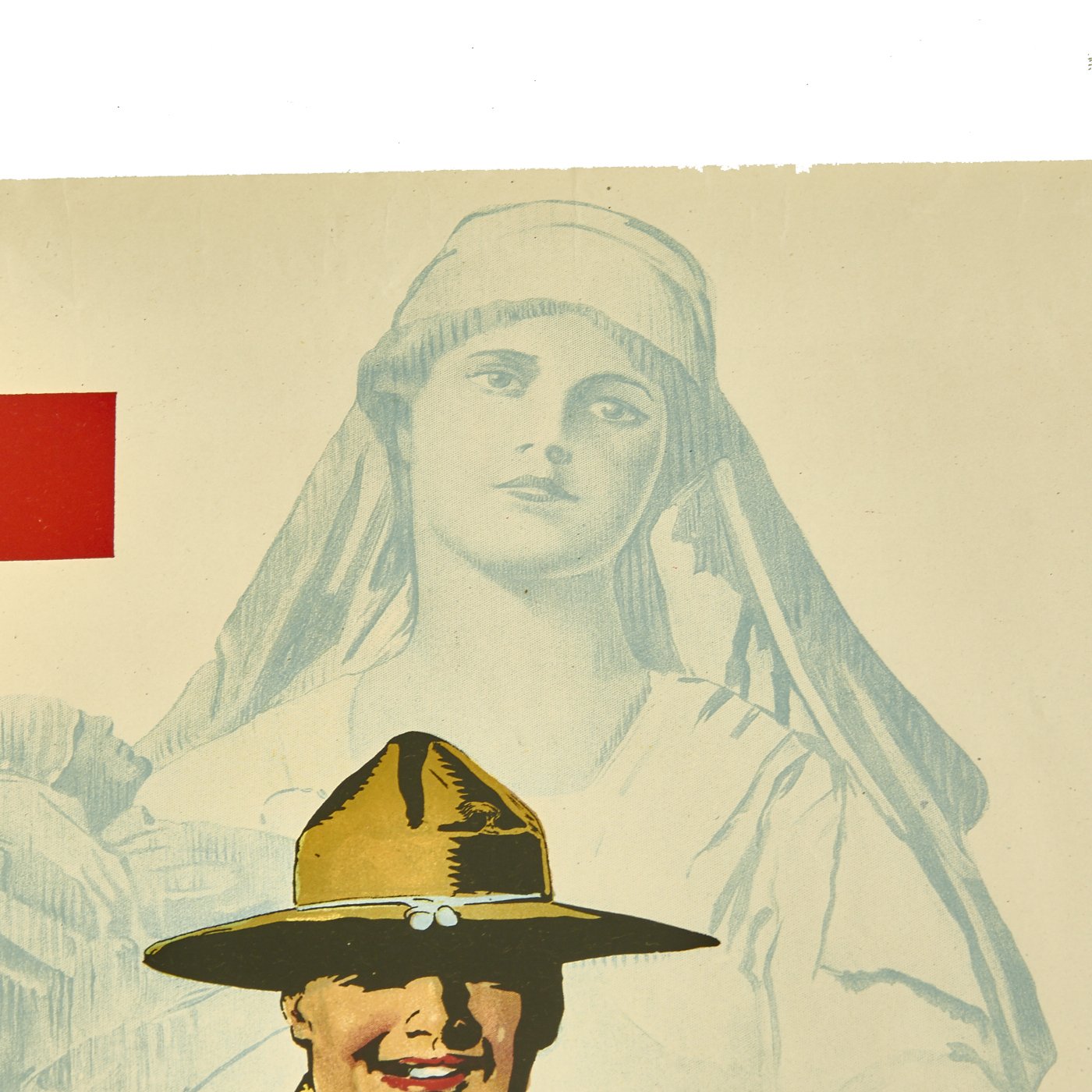 Original Item: Only One Available. Measuring 30" x 20" this is a fantastic vibrant World War One veteran poster produced for the Fifth Red Cross Roll Call, Nov. 11-24, 1921. It reads;