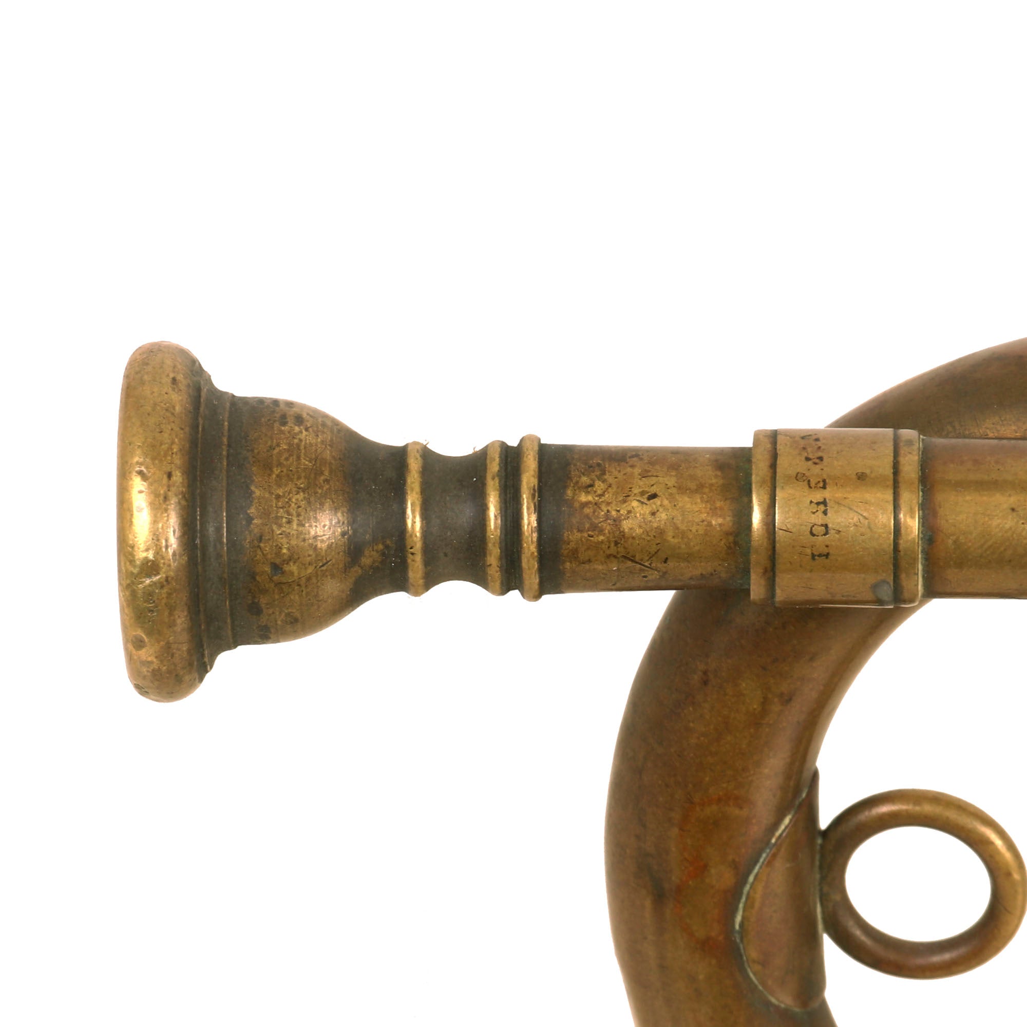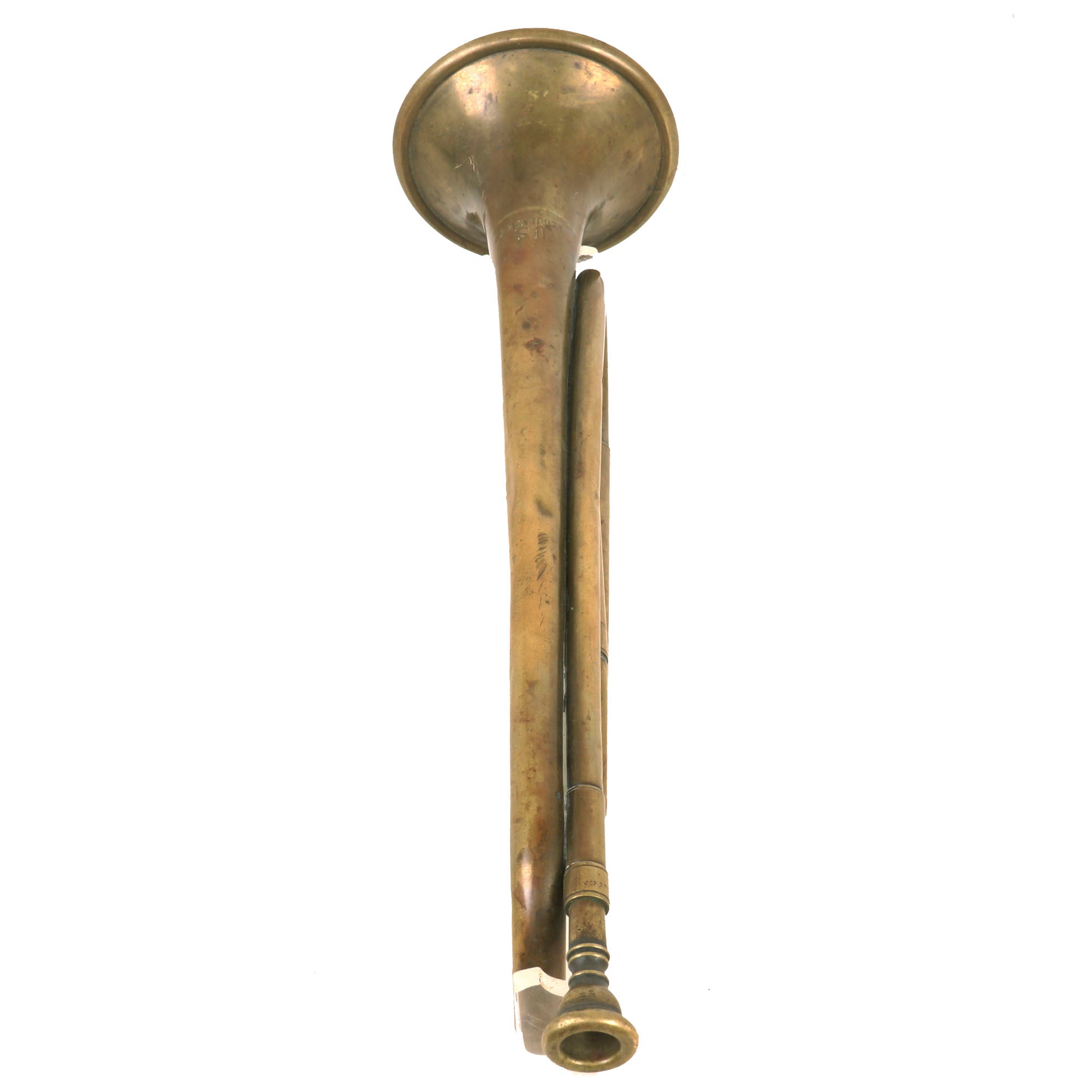 Original Item: Only One Available. The word bugle in the United States is often used as a generic term for many types of horns including the instruments used by the armed services, drum and bugle corps and by various other organizations such as the Boy Scouts. Nevertheless, bugles have always been specified correctly by the armed services and the suppliers and manufacturers of these instruments as either bugles (a conical bore natural horn) or as a field trumpet (a cylindrical bore natural horn over 2/3rds of its length). A case in point is the standard so-called U.S. Regulation “G” bugle commonly used by the Boy Scouts and by drum and bugle corps before the introduction of valves or other key changing devices.